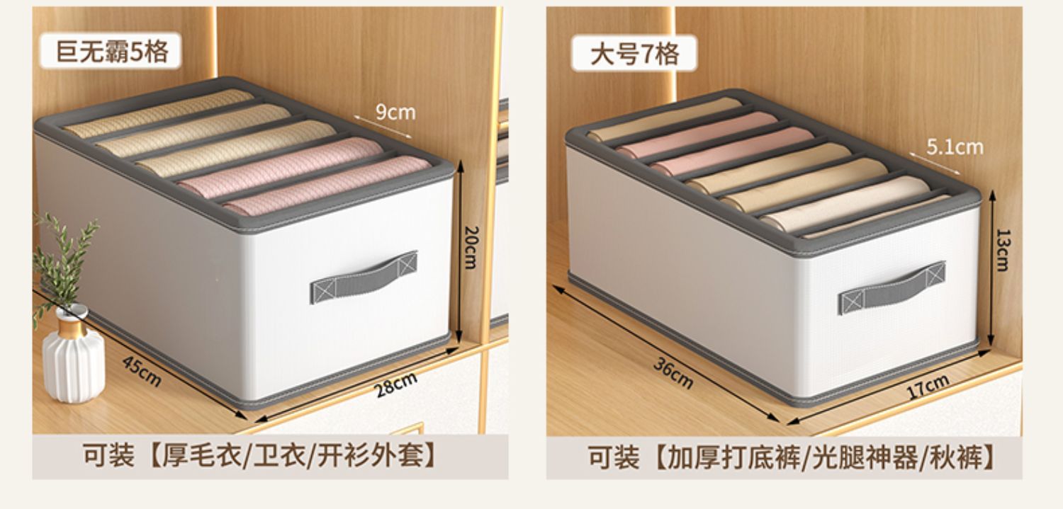 바지 의류 보관 아티팩트 가정용 옷장 계층화 된 구획 상자 옷 배열 구획 상자