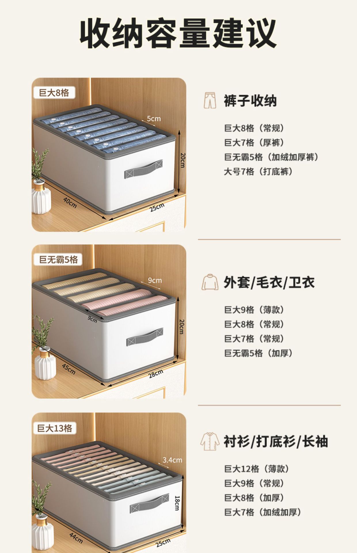 바지 의류 보관 아티팩트 가정용 옷장 계층화 된 구획 상자 옷 배열 구획 상자스토어 가기