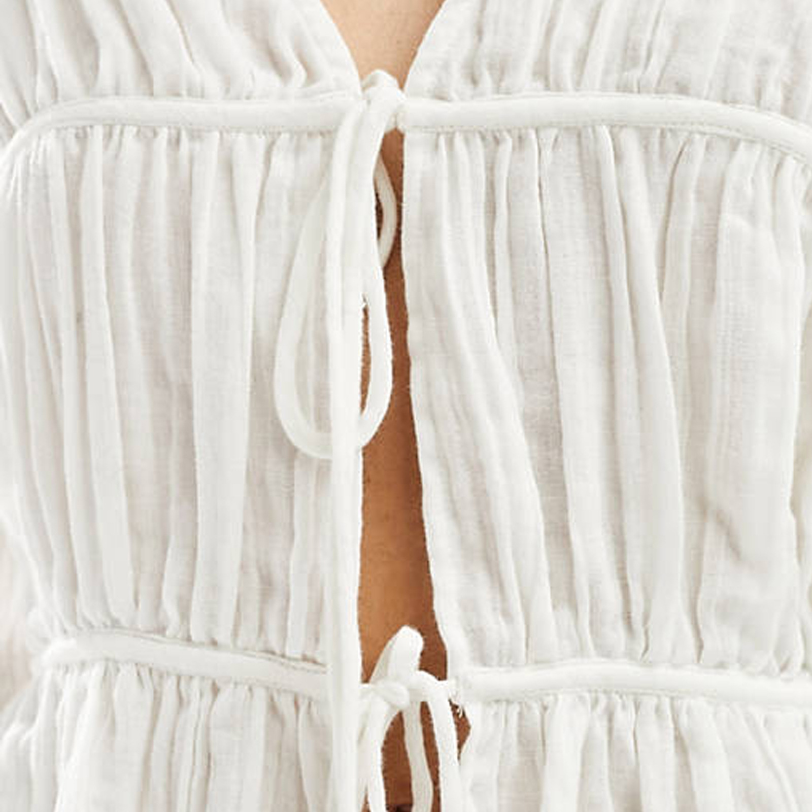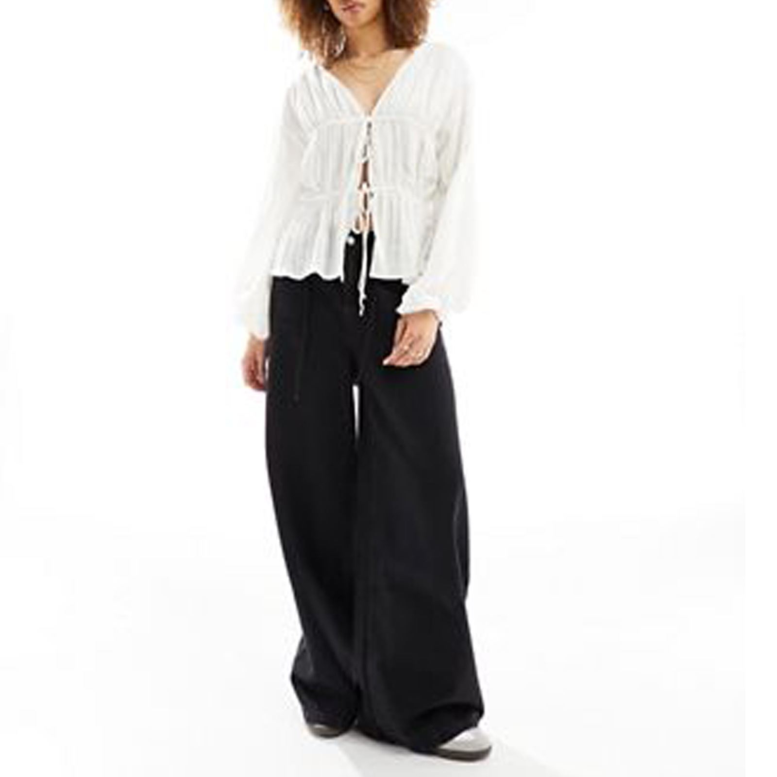 2024 여름 여성 패션 주름진 오프숄더 긴팔 셔츠