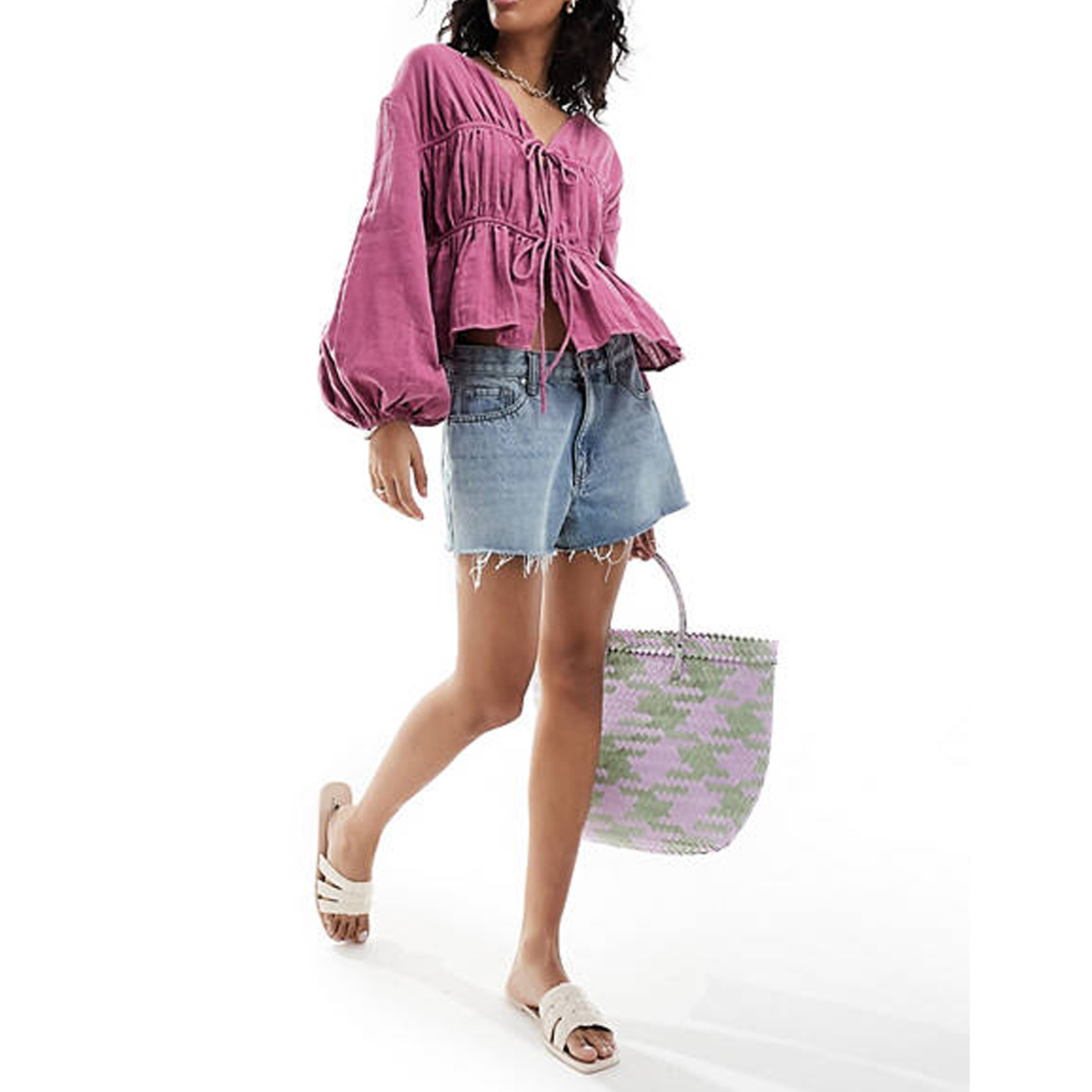 2024 여름 여성 패션 주름진 오프숄더 긴팔 셔츠스토어 가기