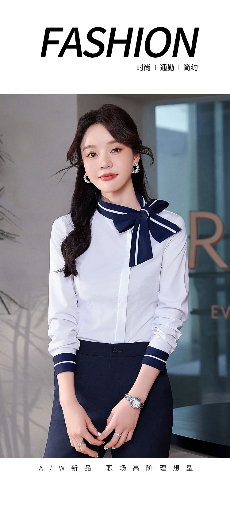 • 흰색 셔츠 + 남색 바지
