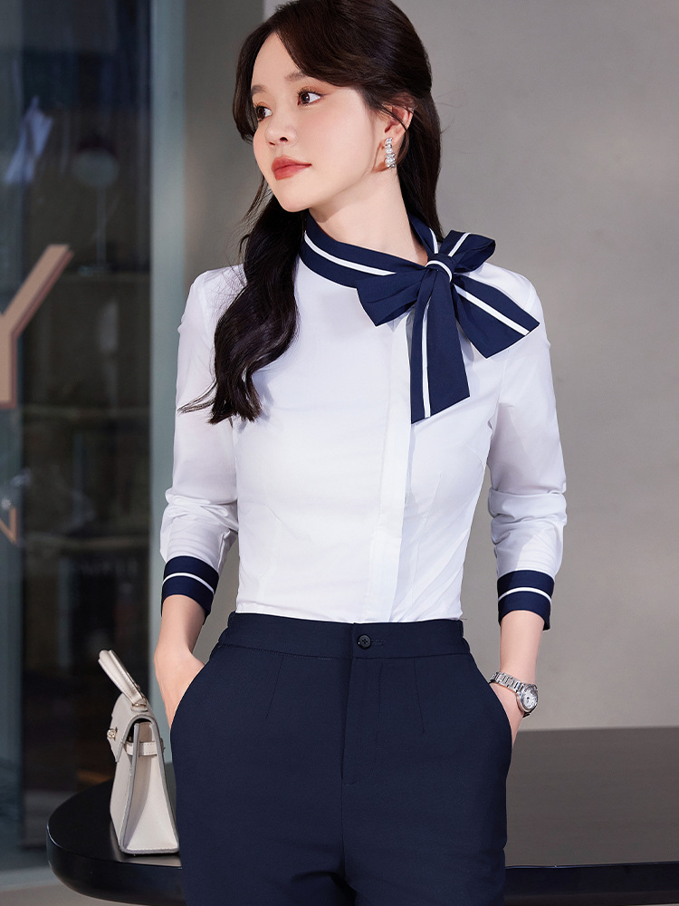 화이트 셔츠 여성용 긴팔 러플 쉬폰 탑 패션 활 한국 스타일 달콤한 셔츠 레이스 업 비즈니스웨어