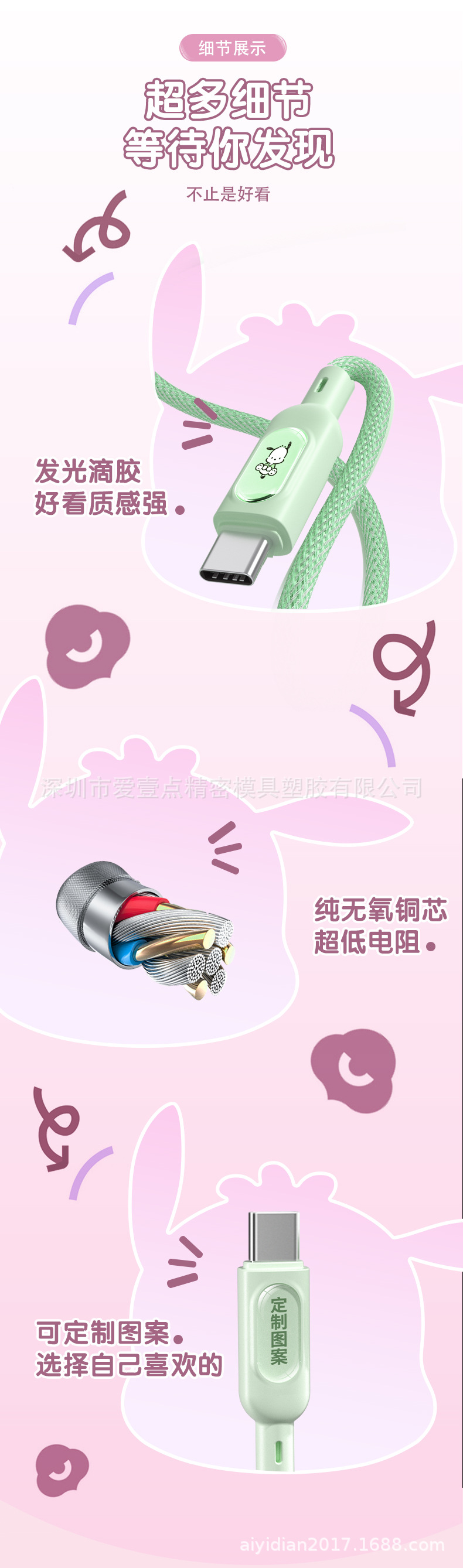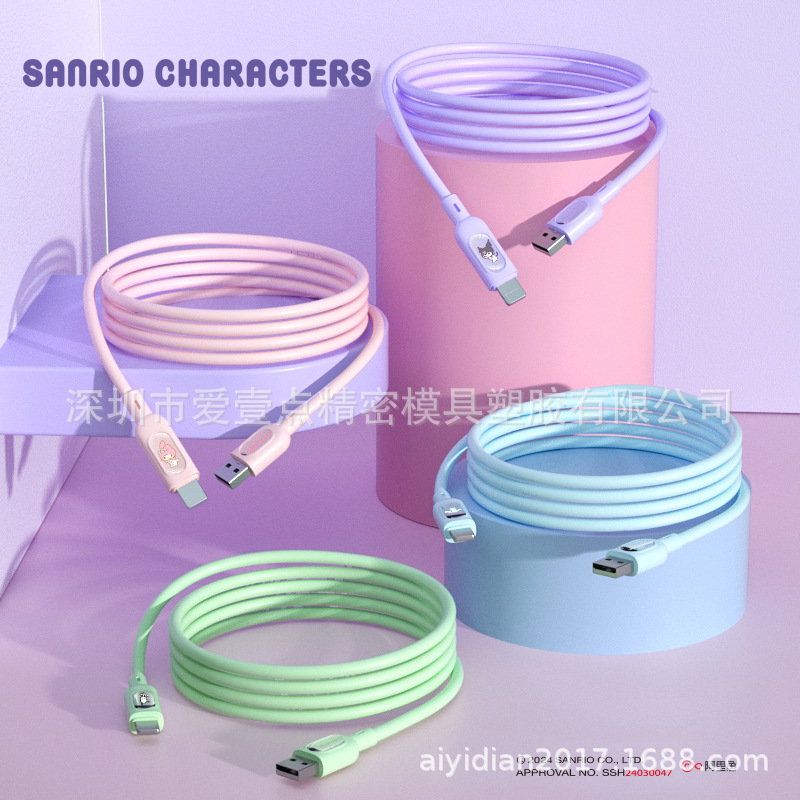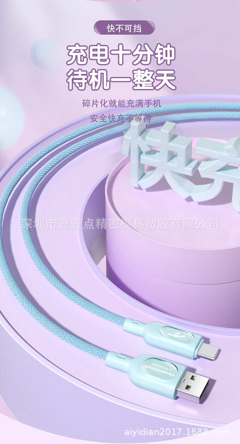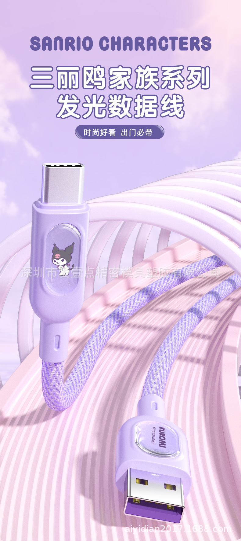 Sanrio 고속 충전 데이터 라인 발광 호흡 조명 플래시 충전 애플 15 화웨이 타입-c 꼰 충전 라인스토어 가기