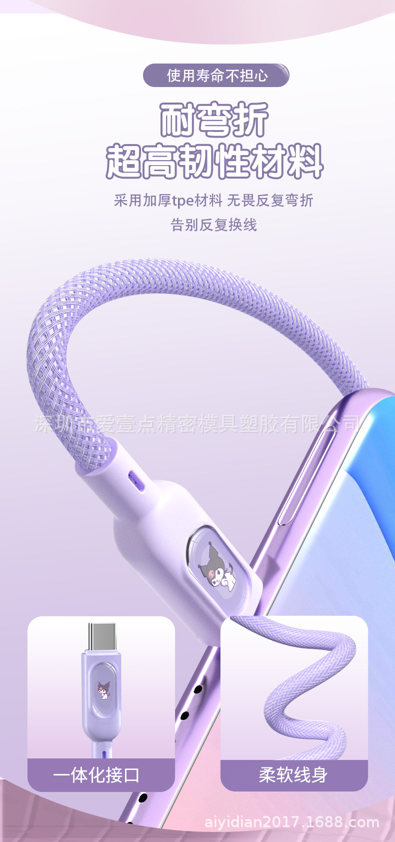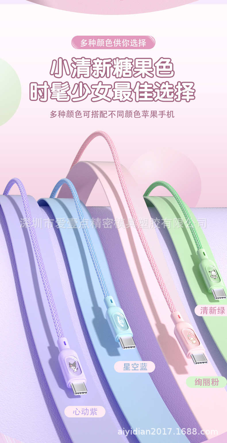 Sanrio 고속 충전 데이터 라인 발광 호흡 조명 플래시 충전 애플 15 화웨이 타입-c 꼰 충전 라인