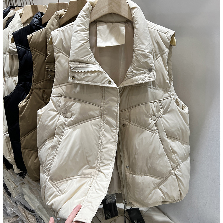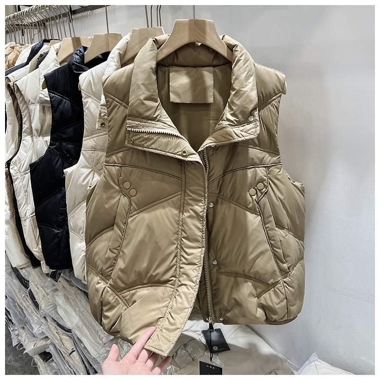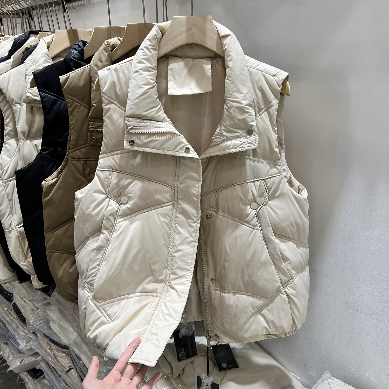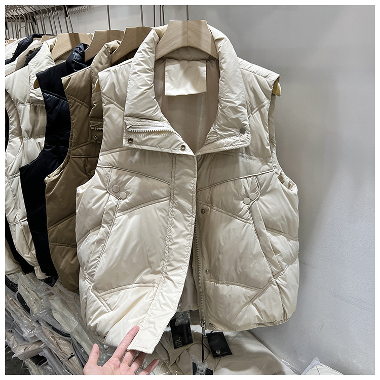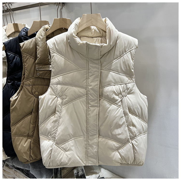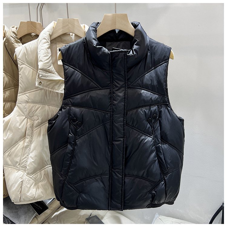 2025 뉴 다운 코튼 조끼 여성 짧은 다목적 겉옷 서양식 조끼 양복 조끼 스탠드 칼라 코튼 조끼 자켓스토어 가기