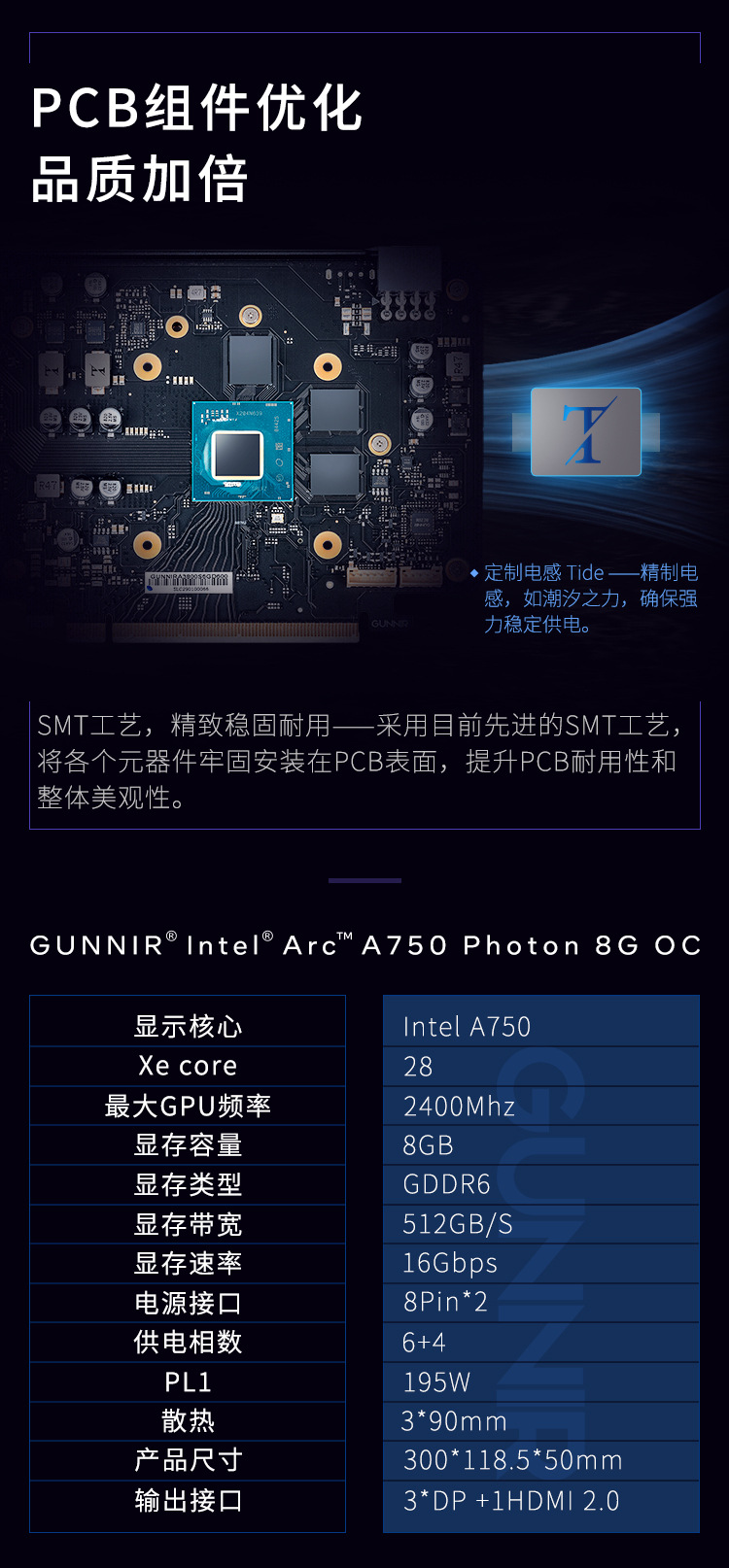 블루 halberd 인텔 아크 A750 광자 OC 데스크탑 하이 엔드 게임 디자인 그래픽 카드