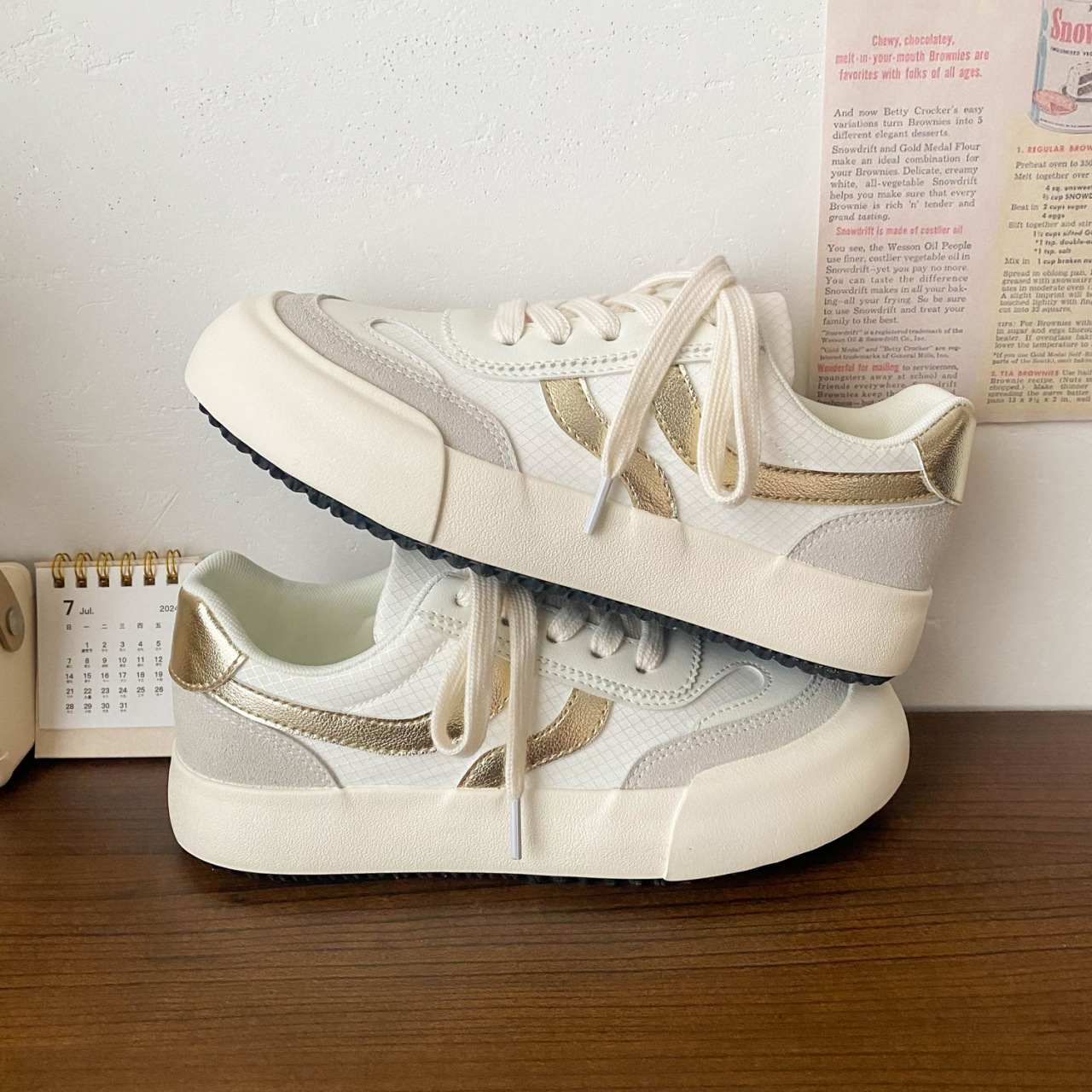 홍콩 스타일 두꺼운 밑창 흰색 운동화 여성용 2025 신상 학생용 다용도 오리지널 틈새 시장 운동화 시크 레트로 데훈 신발스토어 가기