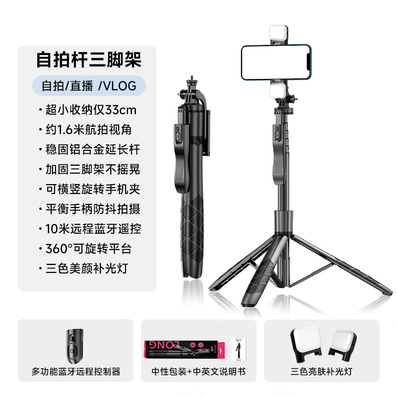 다기능 블루투스 원격 제어 라이브 L16 셀카 스틱 삼각대 휴대 전화 스탠드 셀카 스틱 흔들림 방지 개폐식