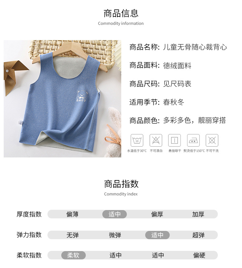 가을과 겨울 어린이 벨벳 뼈없는 조끼 원활한 따뜻한 아기베이스 속옷 소년 소녀 조끼 조끼 도매