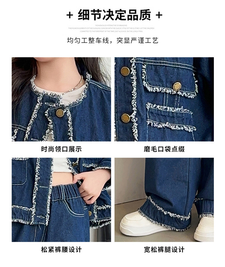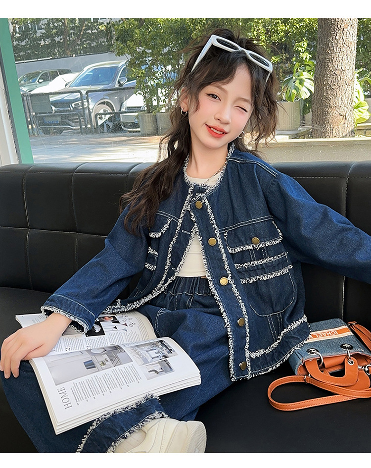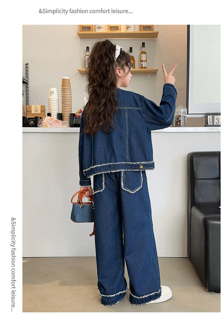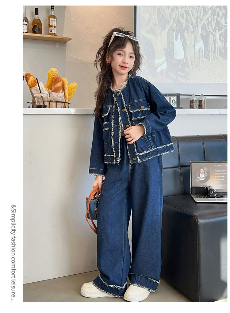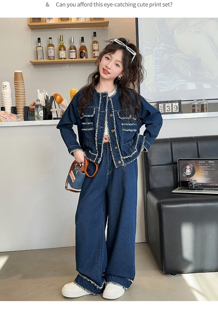 소녀 가을 2024 새로운 어린이 가을 사이버 축하 러프 데님 세트 소녀 서양식 유행 봄과 가을 스타일스토어 가기