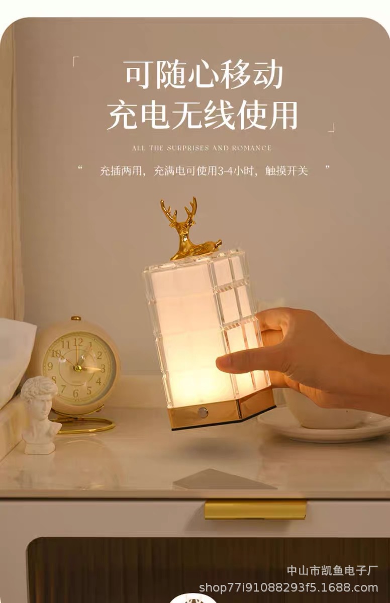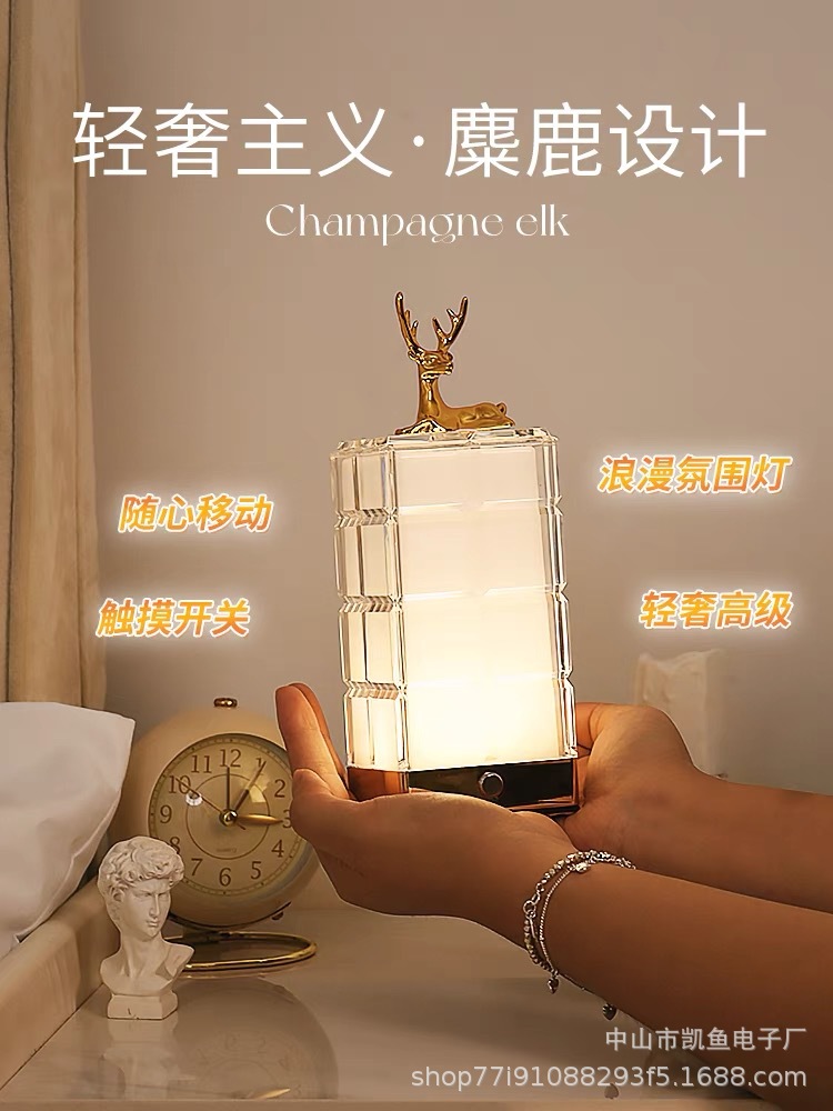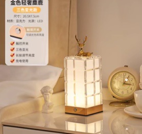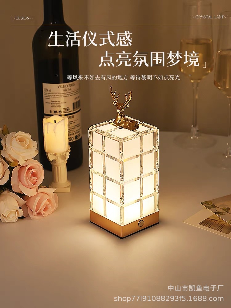 크리스탈 램프 침실 침대 옆 테이블 램프 분위기 램프 아기 먹이 눈 보호 충전 터치 곰 야간 조명 빌딩 블록 램프스토어 가기