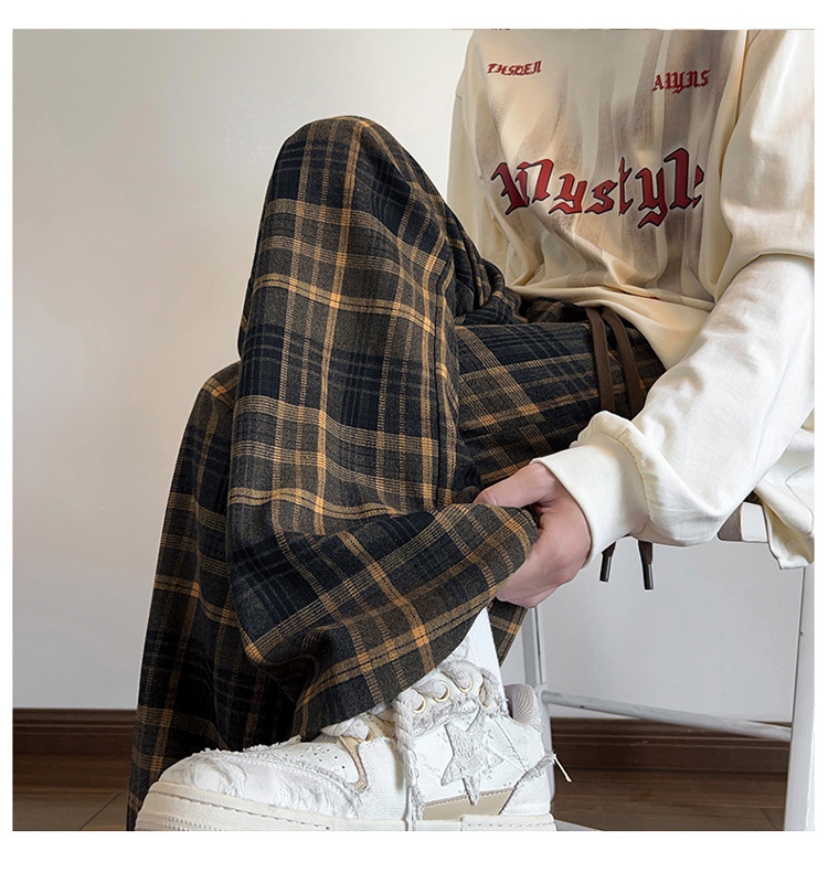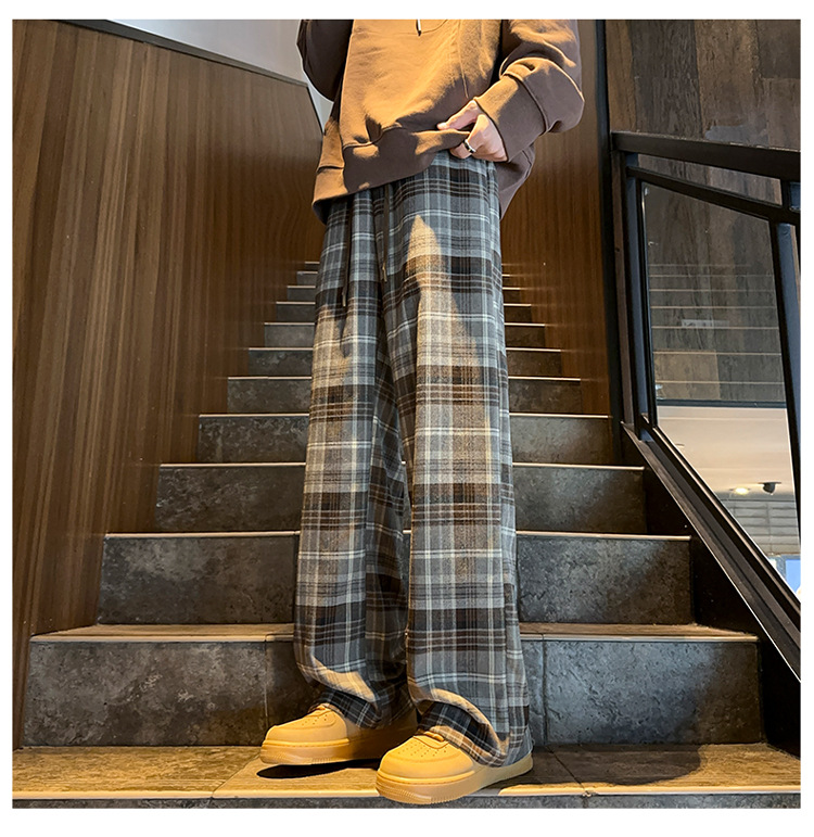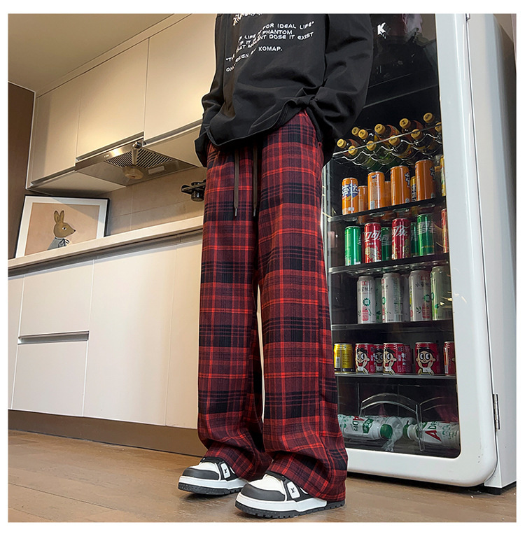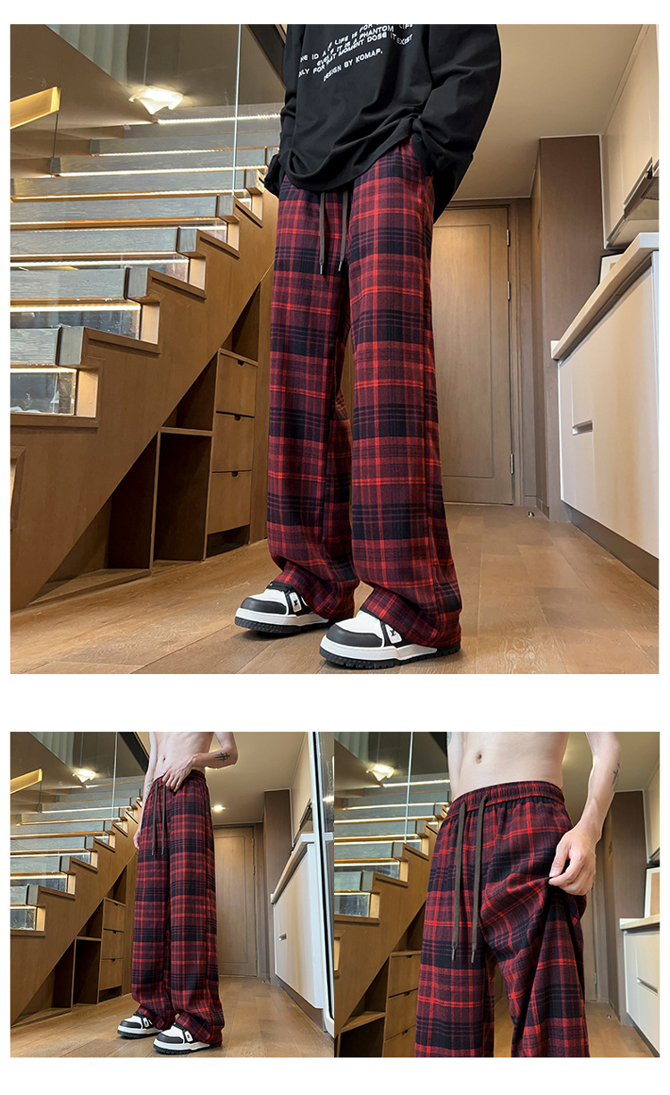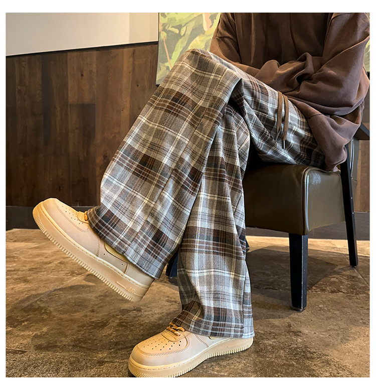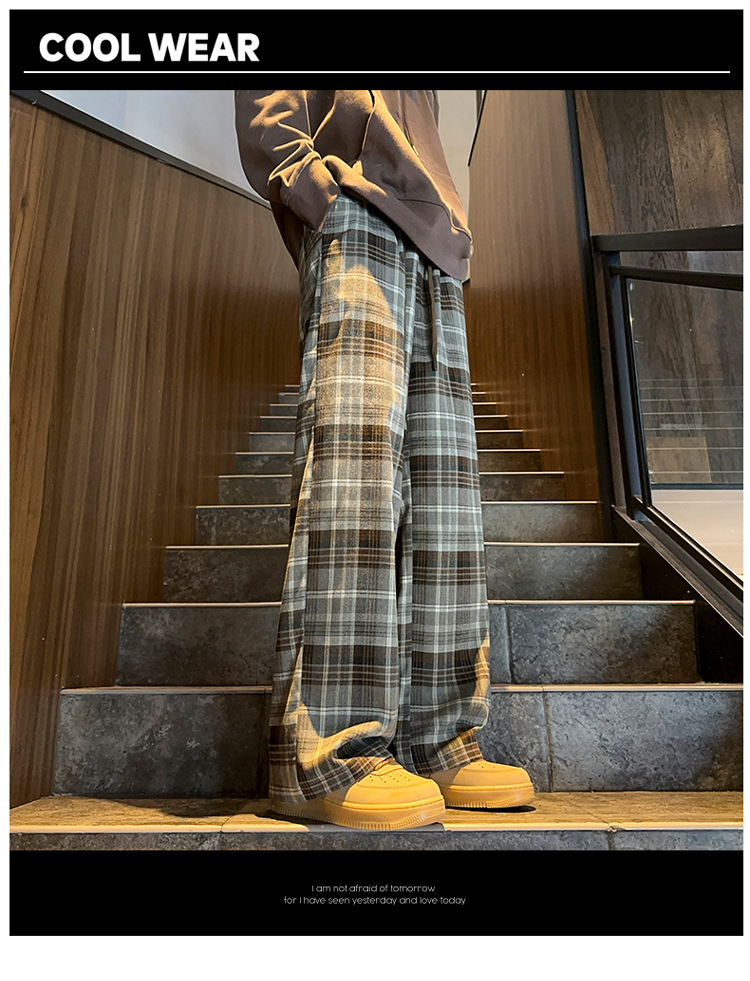NASA 미국 격자 무늬 캐주얼 바지 남자 여름과 봄 가을 느슨한 스트레이트 바지 새로운 유행 올 매치 레트로 와이드 레그 트렌디스토어 가기