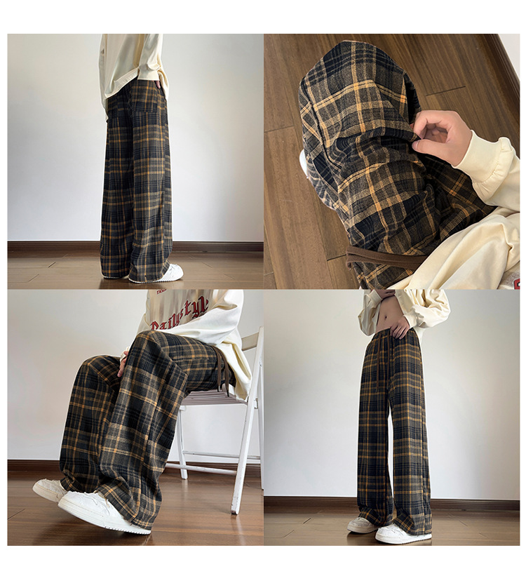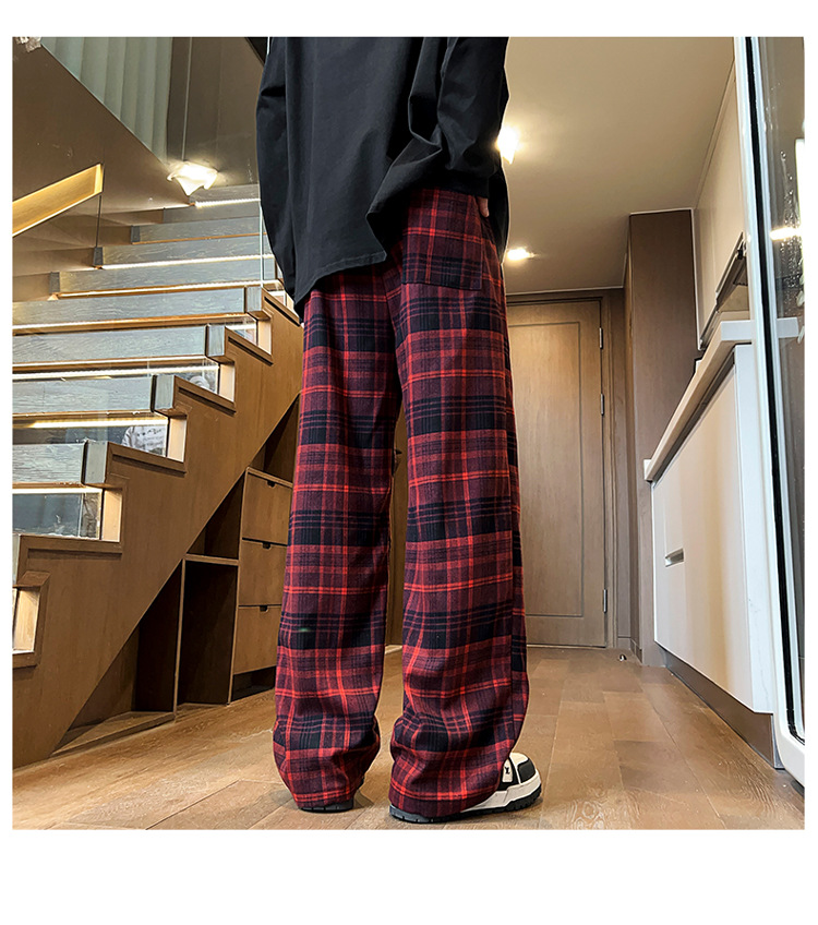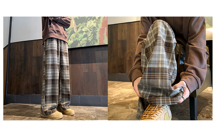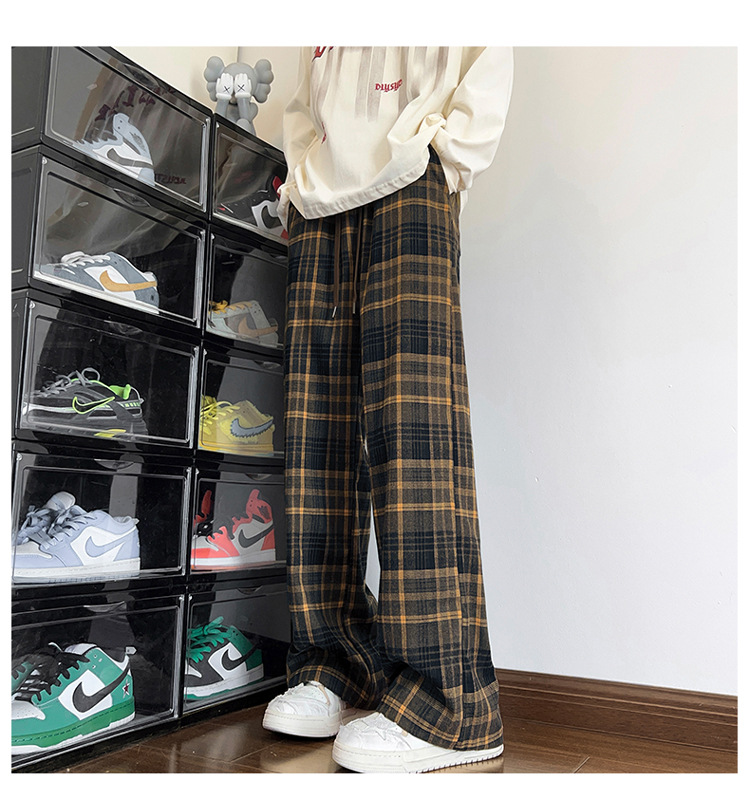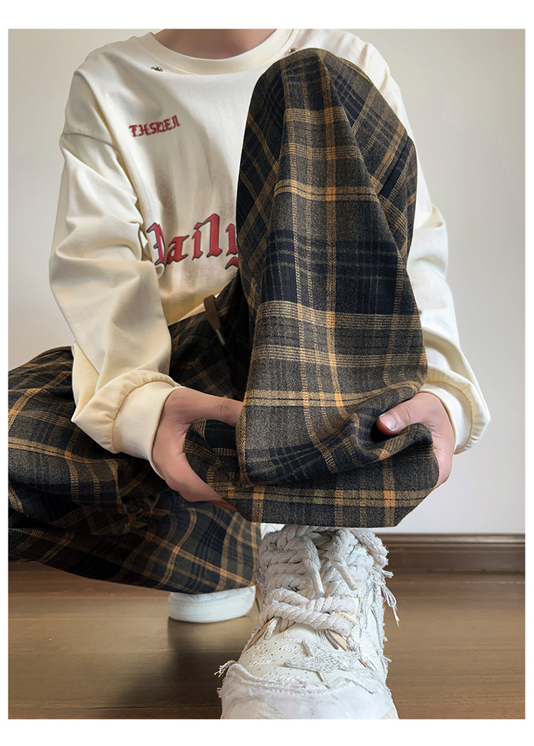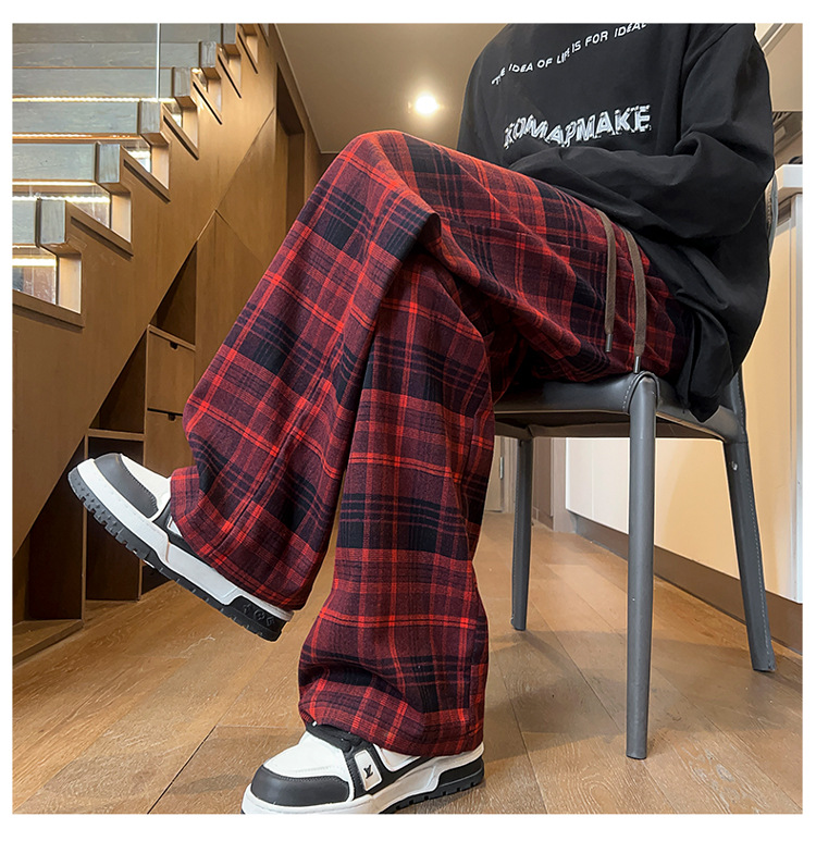 NASA 미국 격자 무늬 캐주얼 바지 남자 여름과 봄 가을 느슨한 스트레이트 바지 새로운 유행 올 매치 레트로 와이드 레그 트렌디스토어 가기