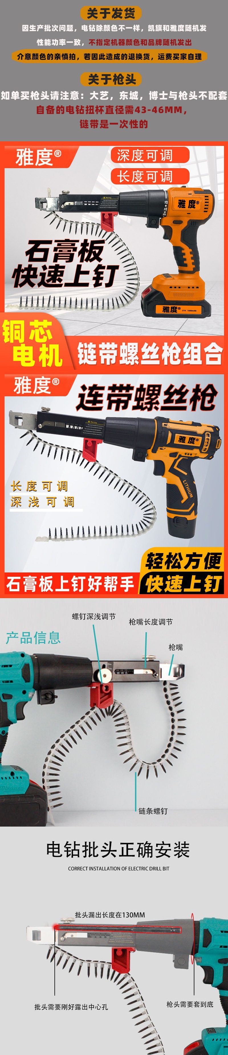 Yadu 석고 보드 나사 도구 전기 드릴 체인 네일 건 변환기 목공 천장 장식 체인 나사 건