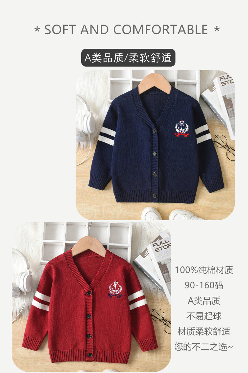 소년 소녀 면 카디건 가을과 겨울 어린이 대학 스타일 줄무늬 스웨터 큰 어린이 학교 유니폼 니트 재킷스토어 가기