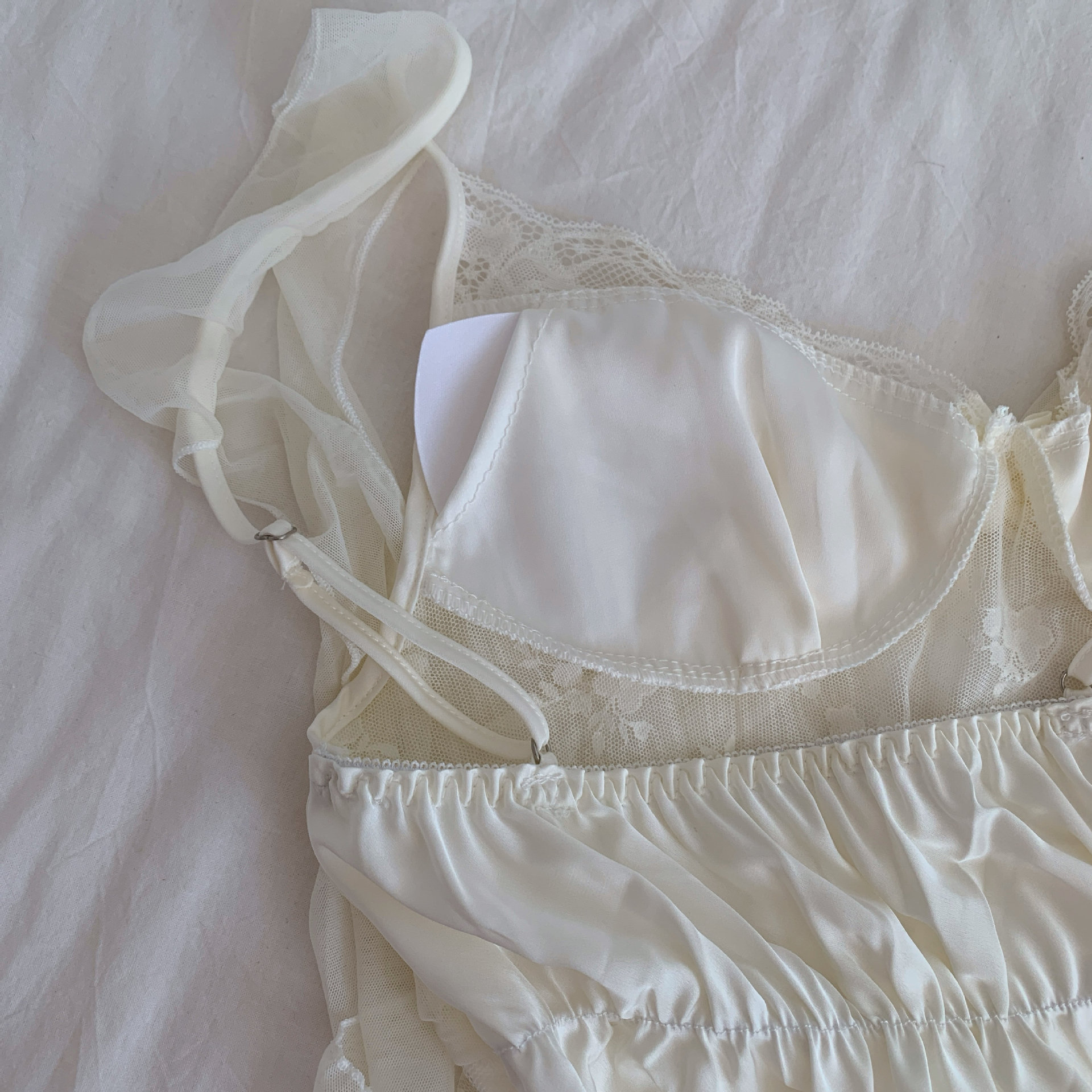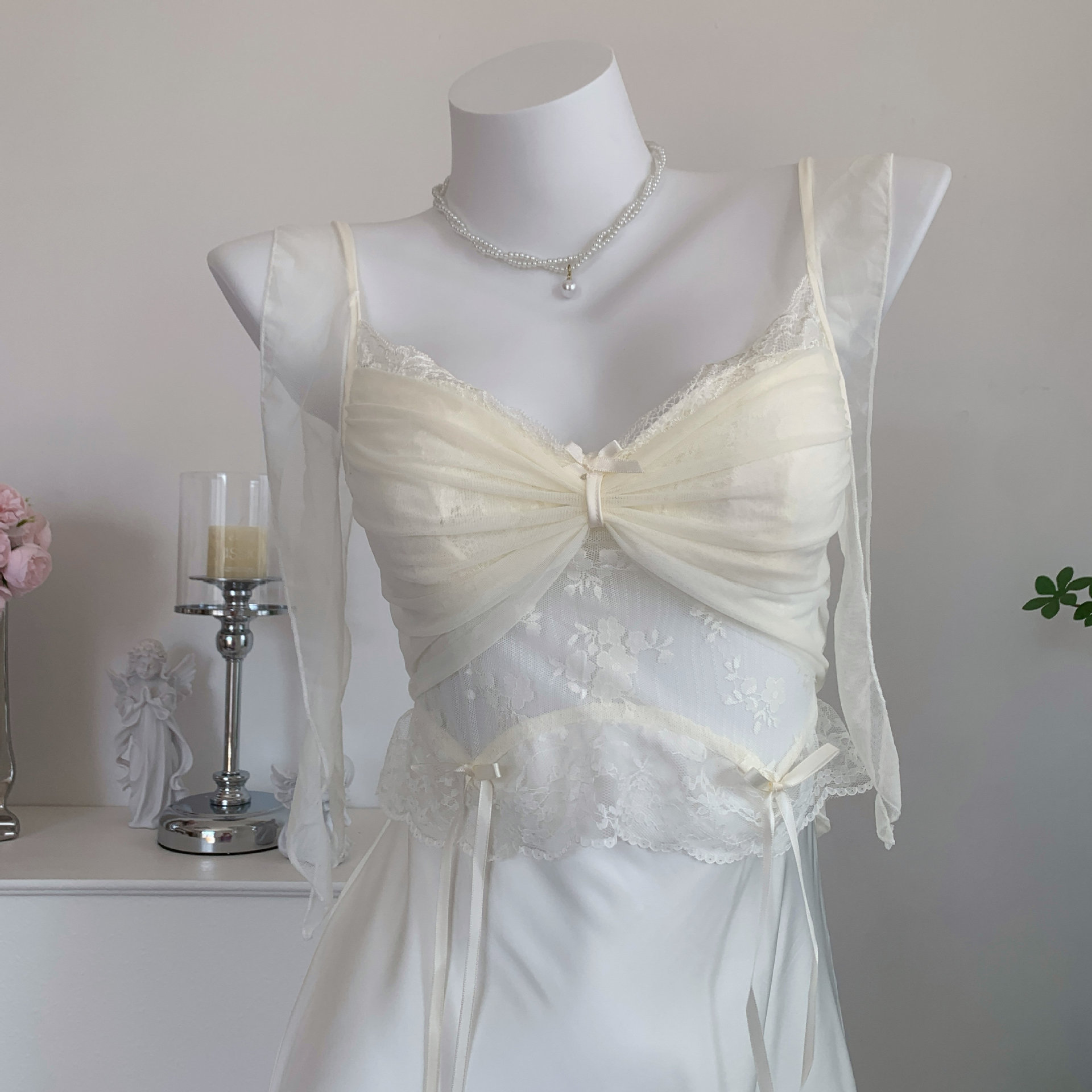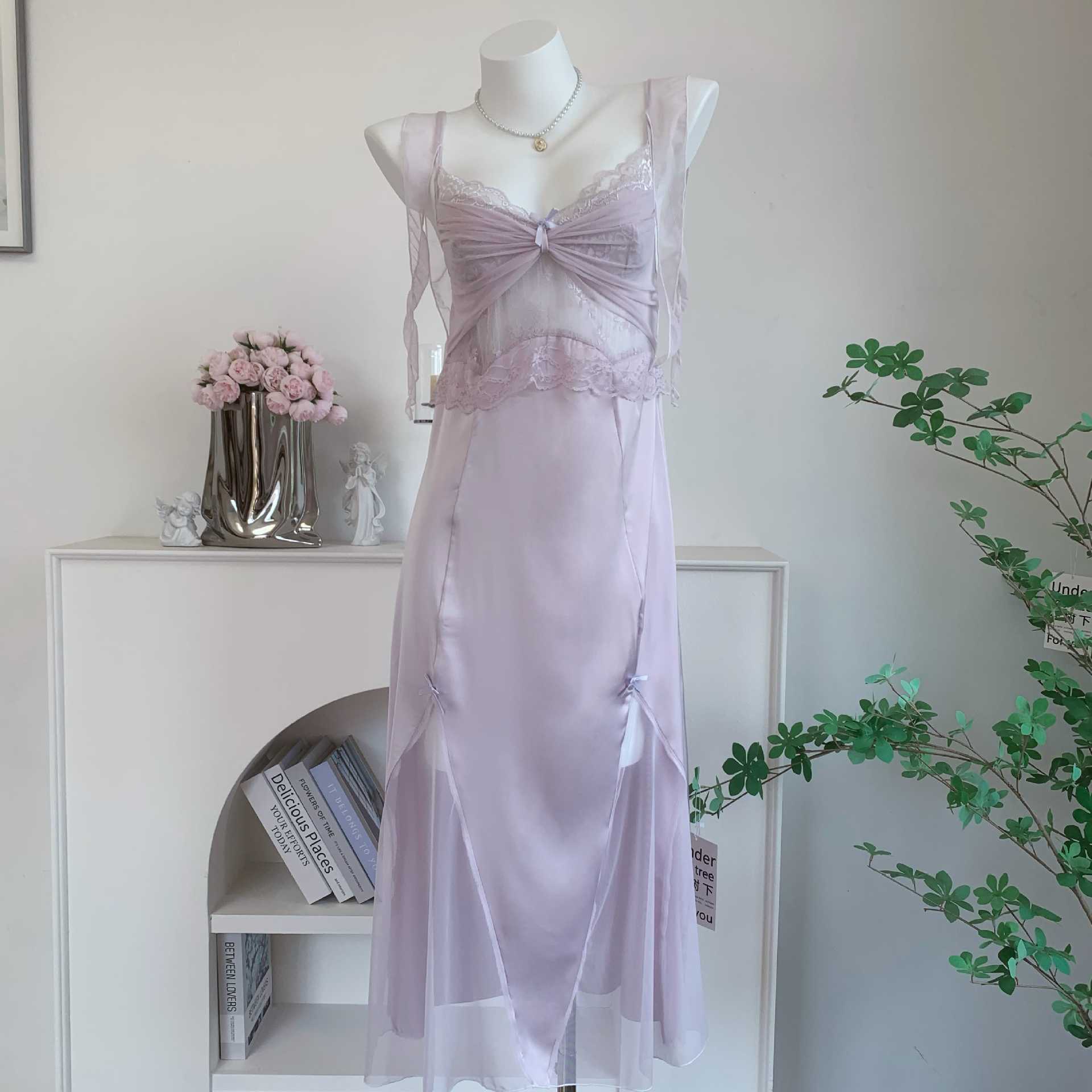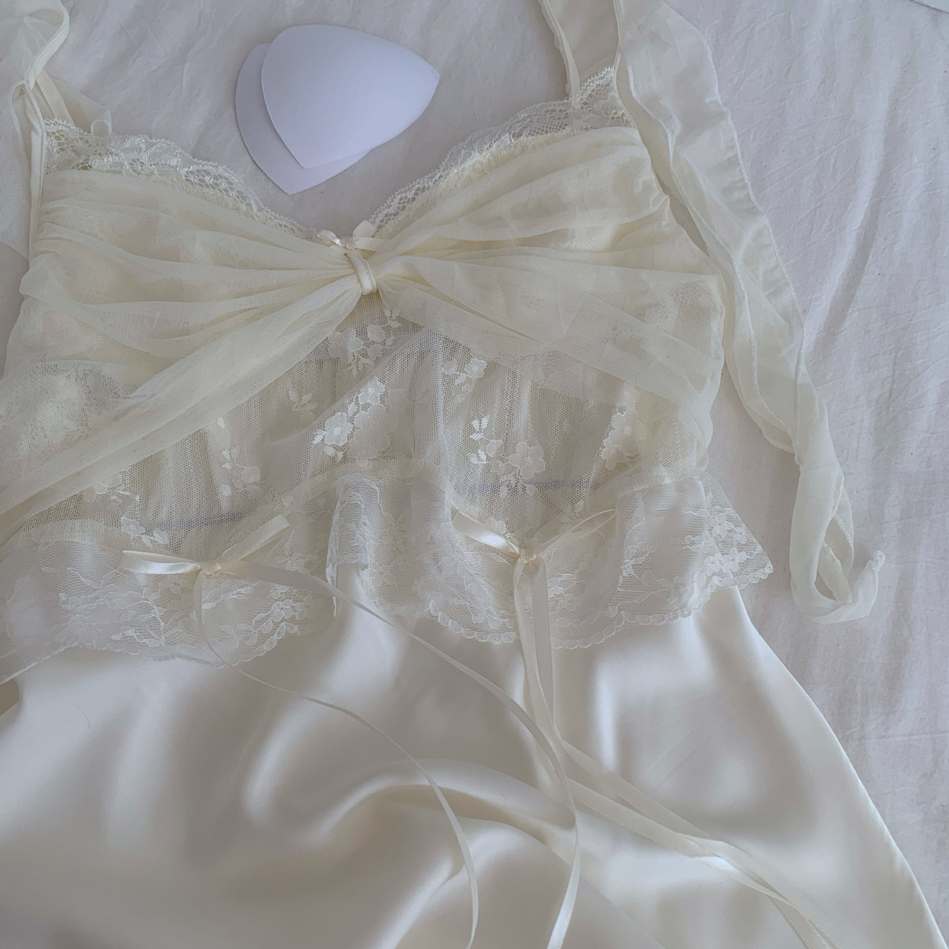 [일몰 꽃 신] 여름 슬링 레이스 세트 요정 메시 투피스 홈 옷 여성 섹시한 아이스 실크