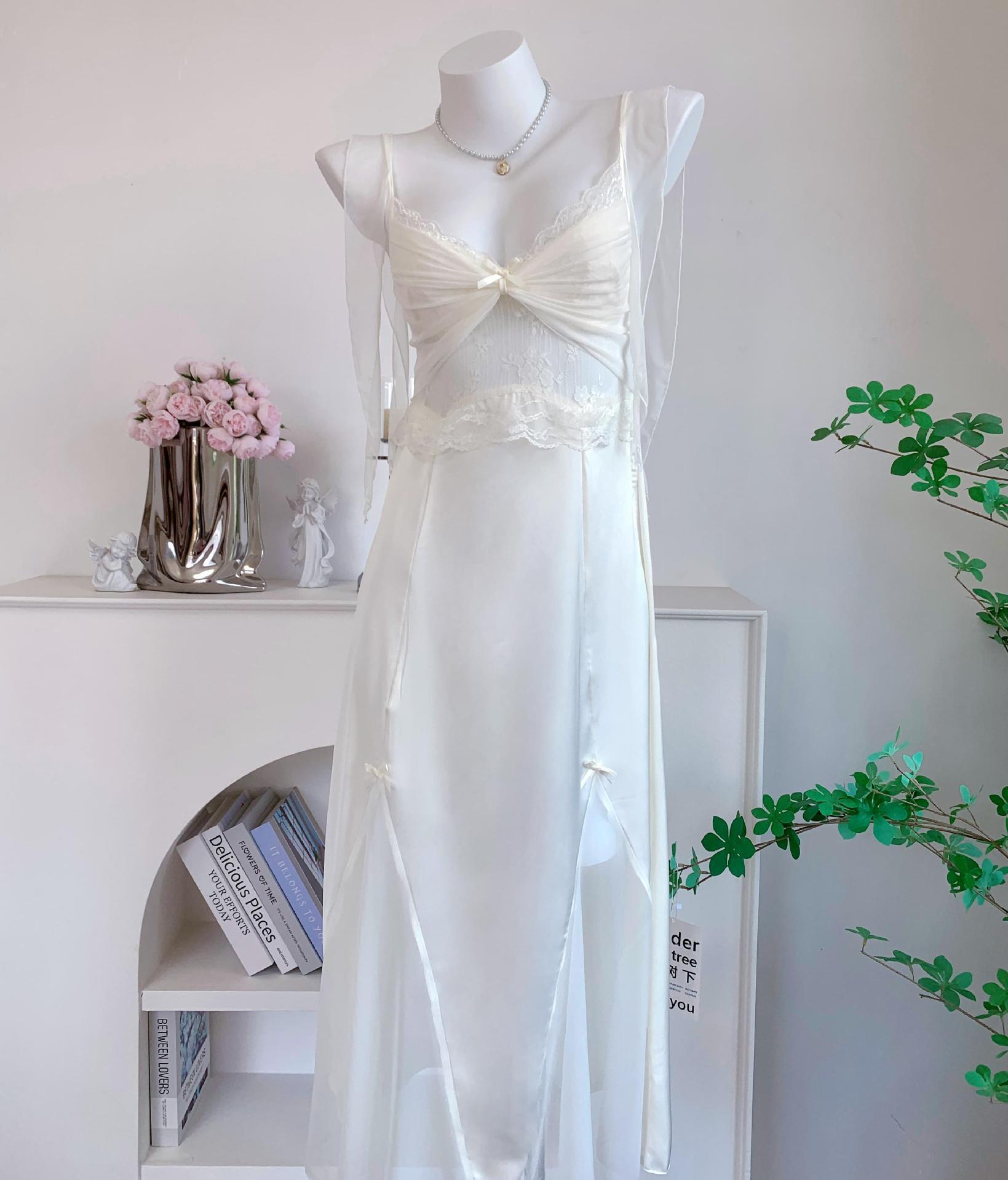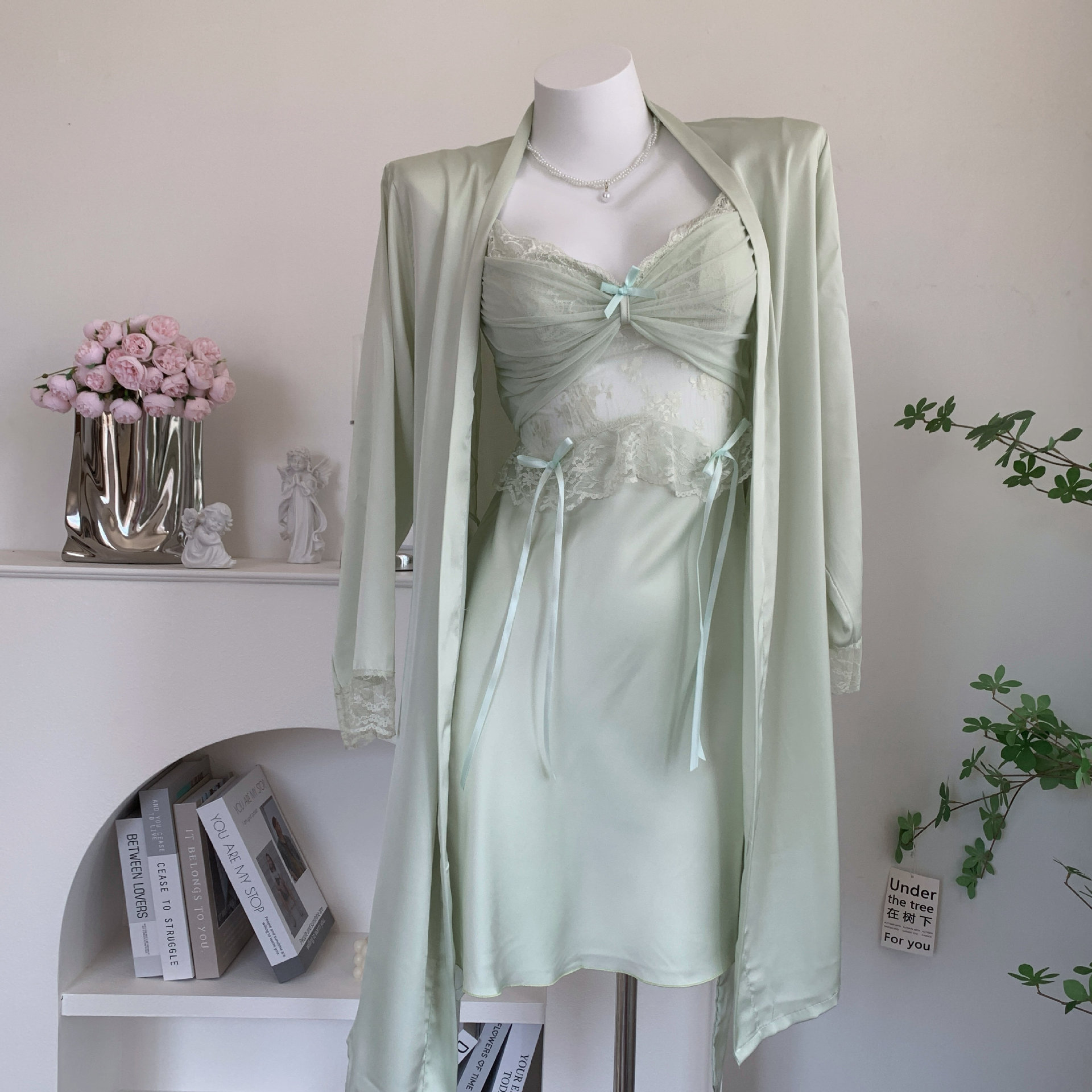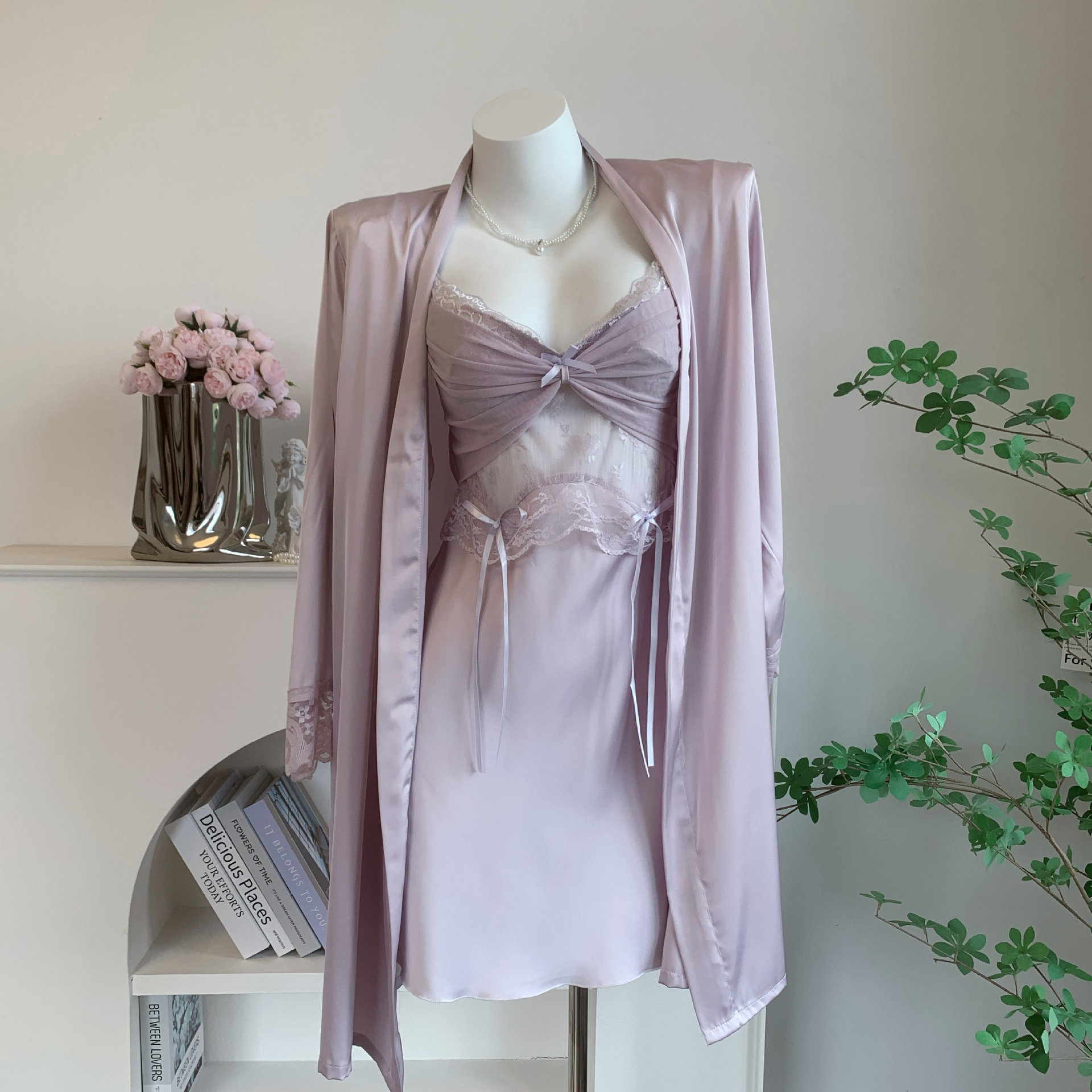 [일몰 꽃 신] 여름 슬링 레이스 세트 요정 메시 투피스 홈 옷 여성 섹시한 아이스 실크스토어 가기