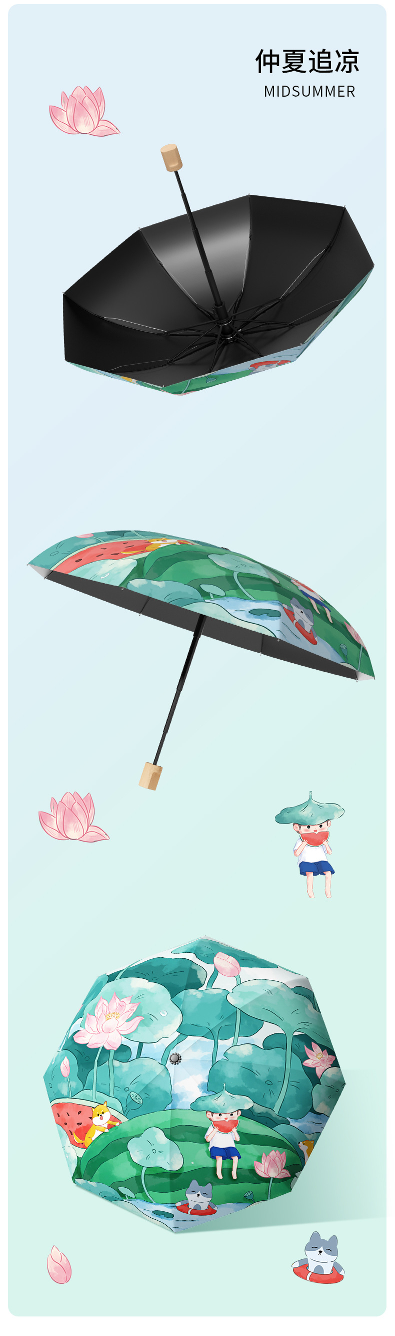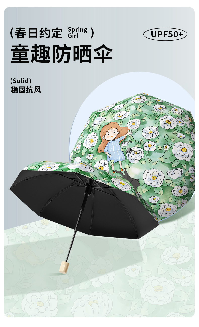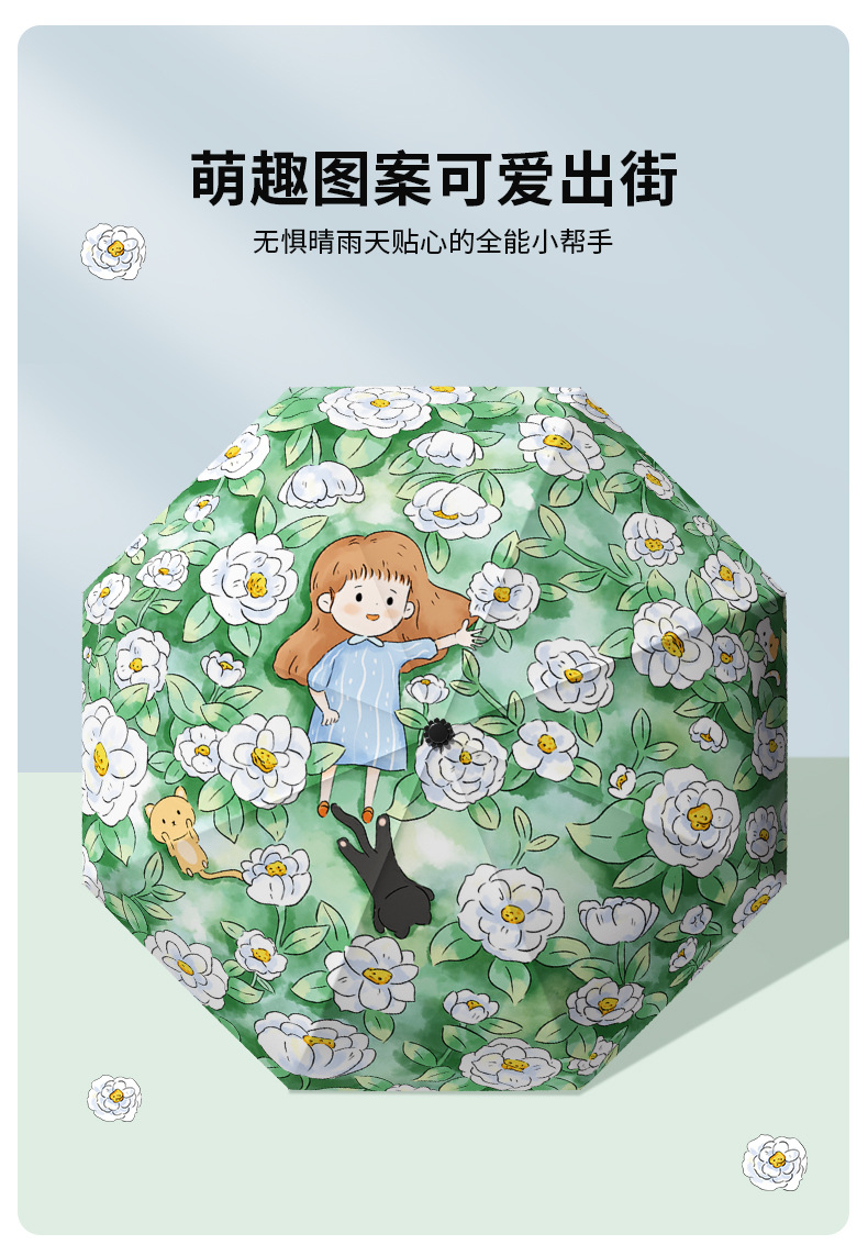 초등학교 학생을위한 어린이 우산 6-12 세 귀여운 수동 휴대용 접기 고급 감각 검은 색 고무 선 스크린 햇빛스토어 가기
