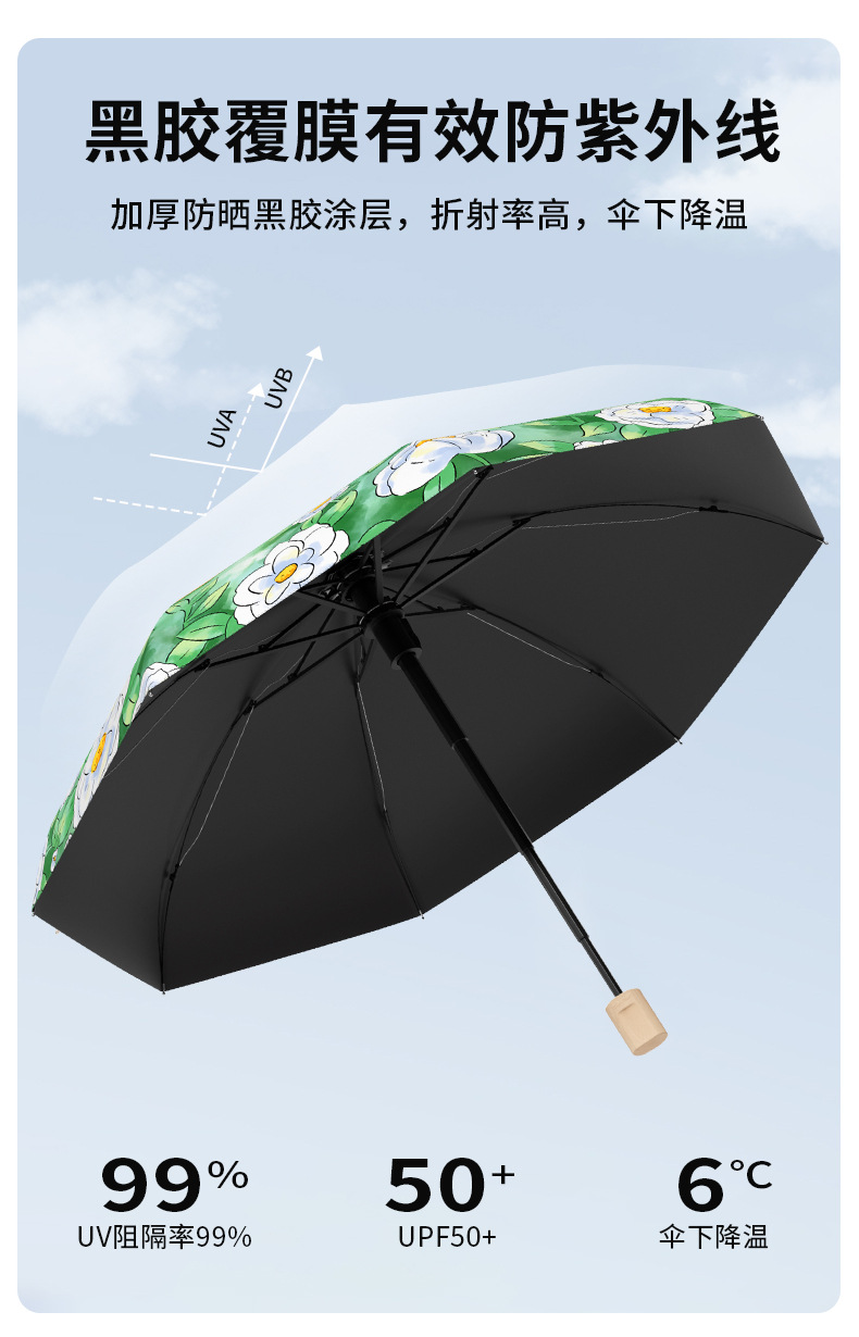 초등학교 학생을위한 어린이 우산 6-12 세 귀여운 수동 휴대용 접기 고급 감각 검은 색 고무 선 스크린 햇빛