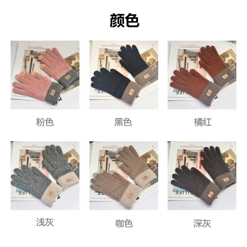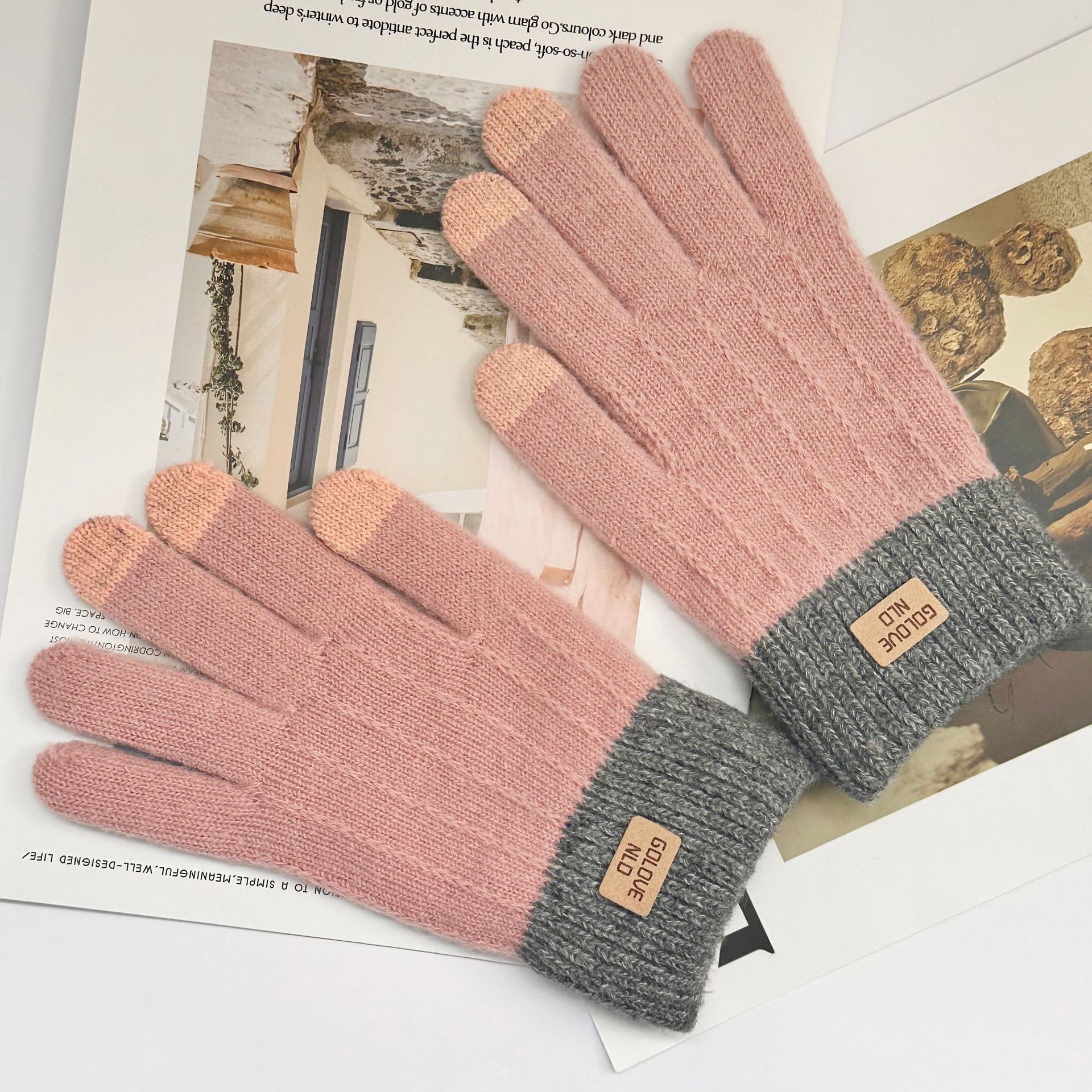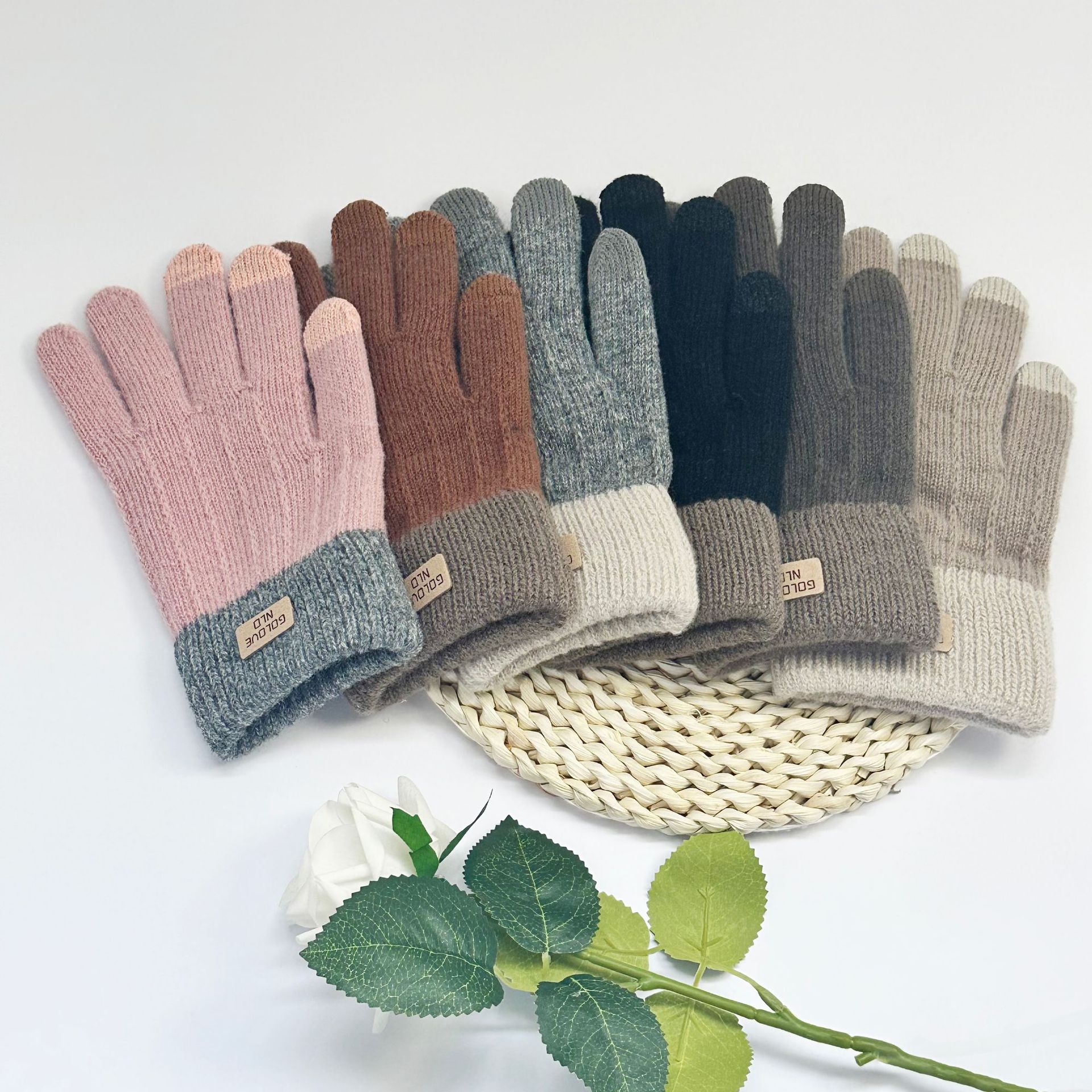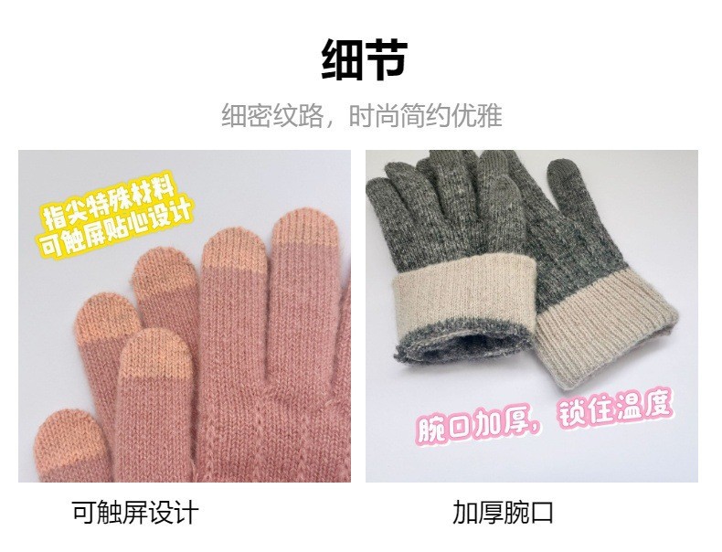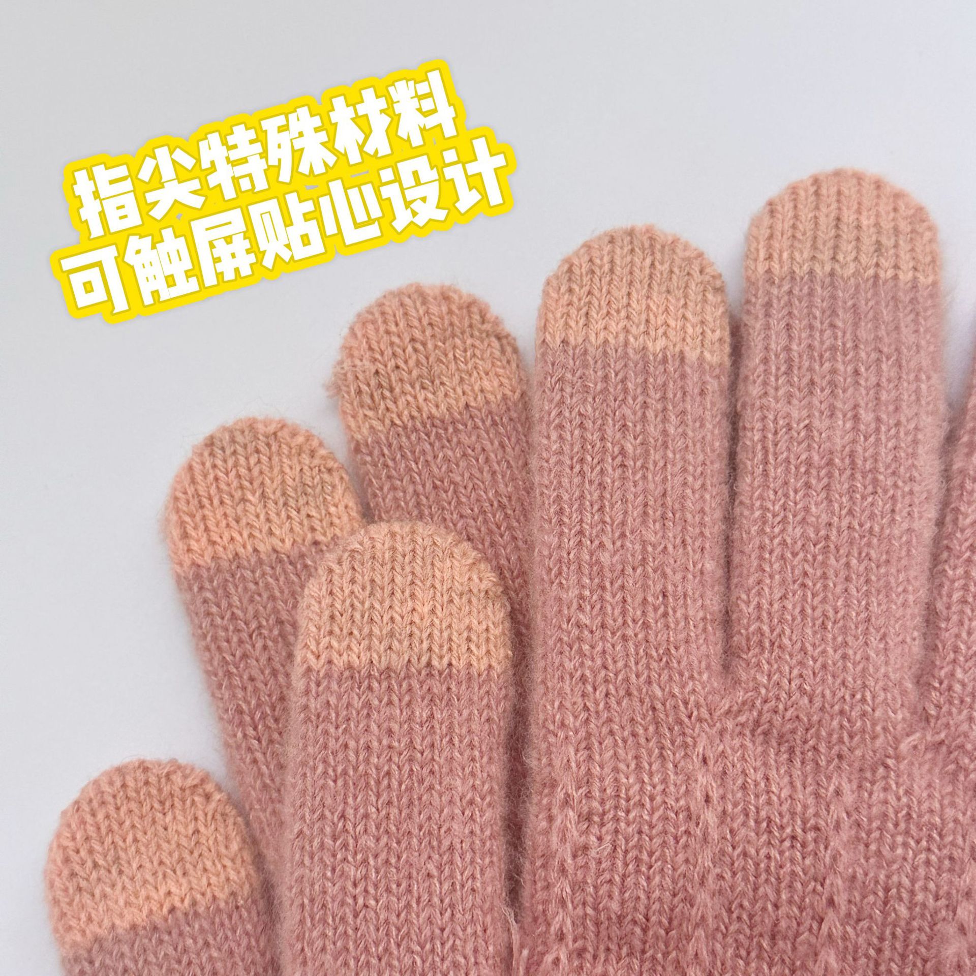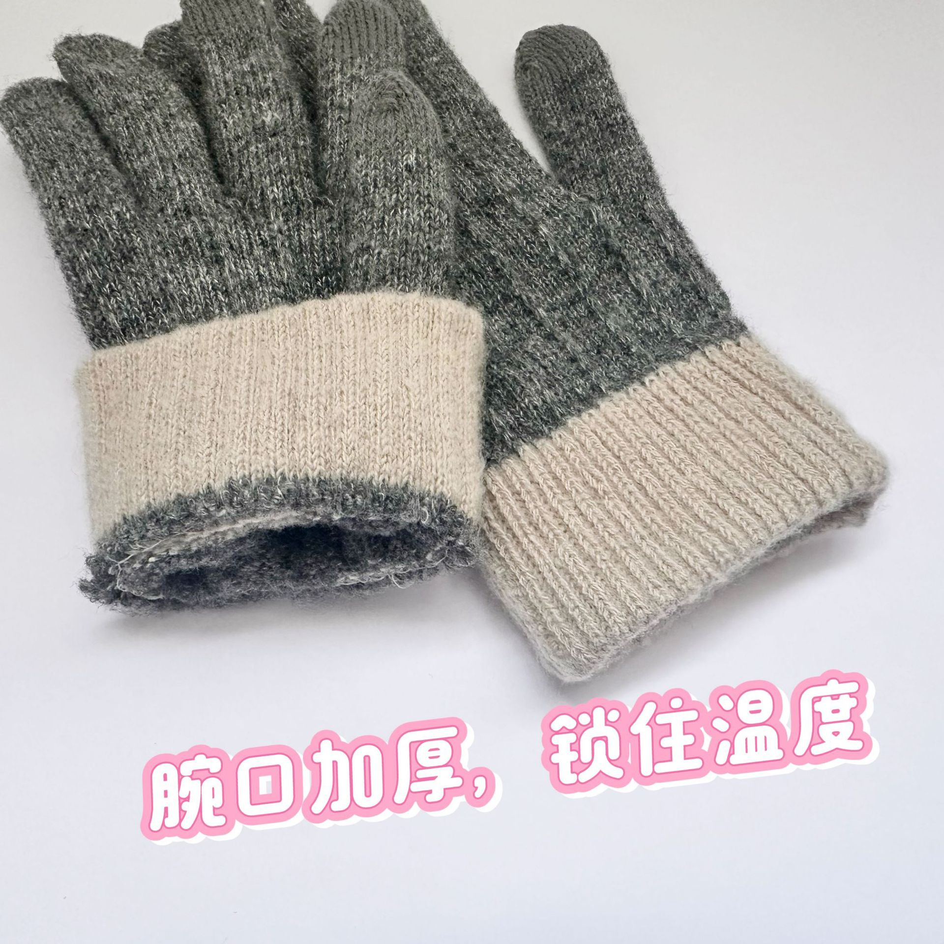 겨울 따뜻한 솔리드 컬러 풀 핑거 자카드 터치 스크린 캐시미어 기모 두꺼운 냉간 니트 겨울 외출 장갑