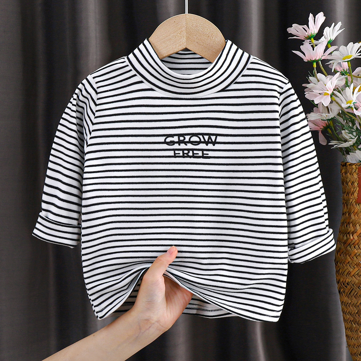 어린이 바닥 셔츠 가을 새 아기 소녀 최고 소년 스트라이프 벨벳 긴 소매 어린이 티셔츠 도매
