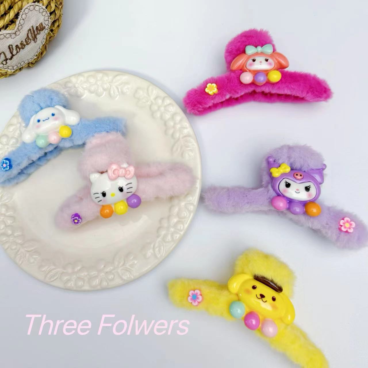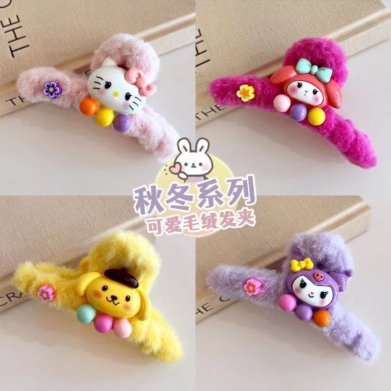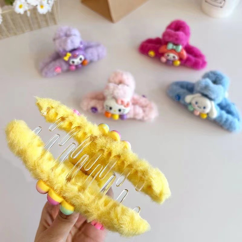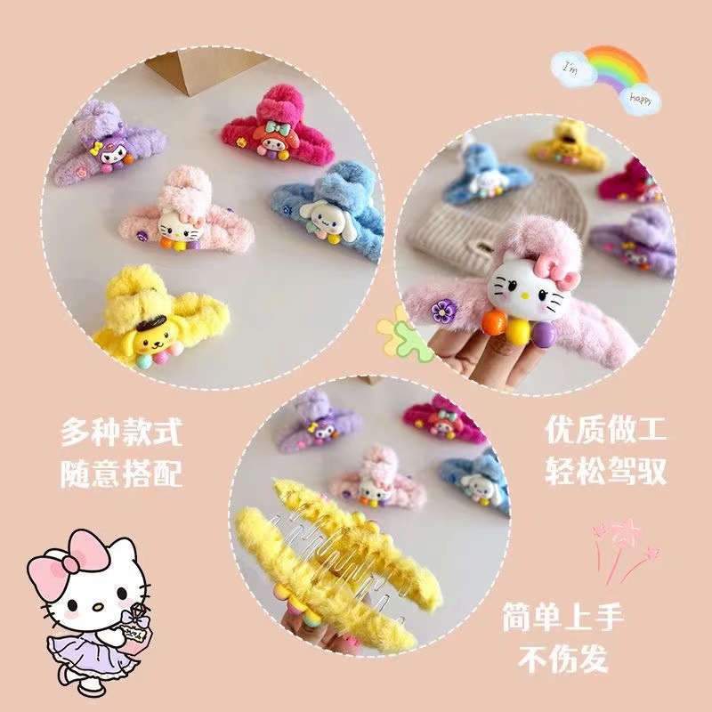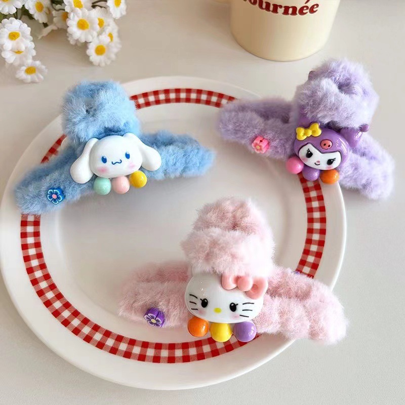 일본과 한국의 달콤한 산리오 그랩 만화 봉제 클립 다시 머리 클립 상어 클립 디스크 머리 머리 소녀 하프 헤어 잡아