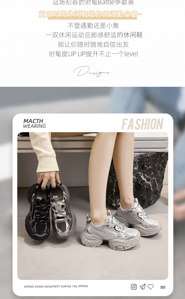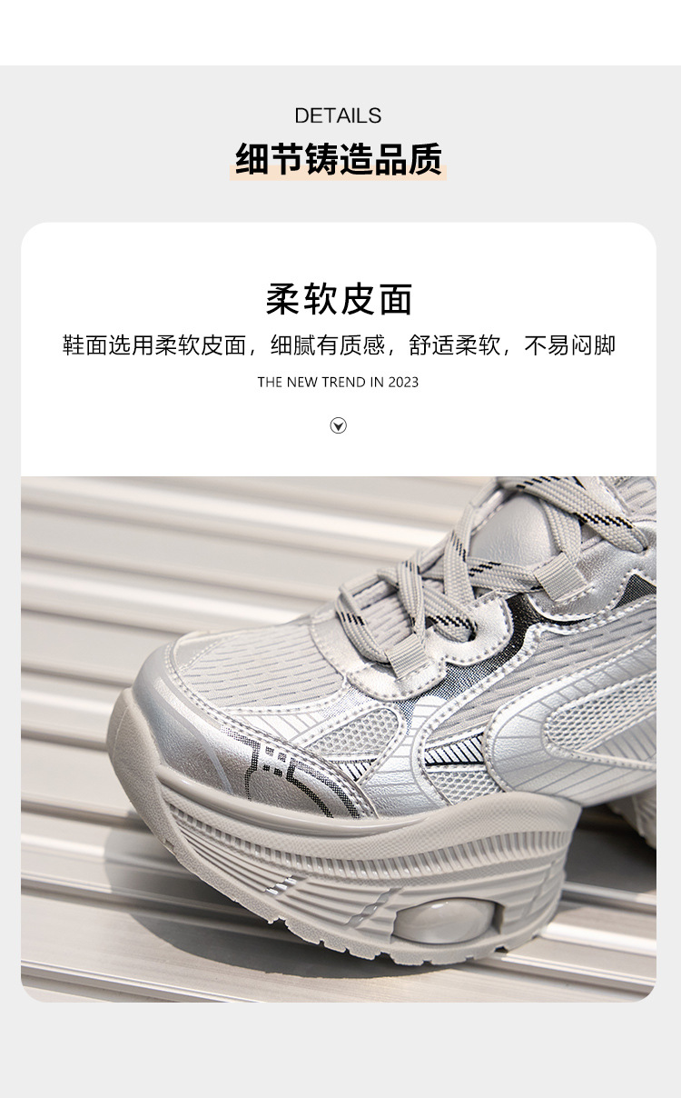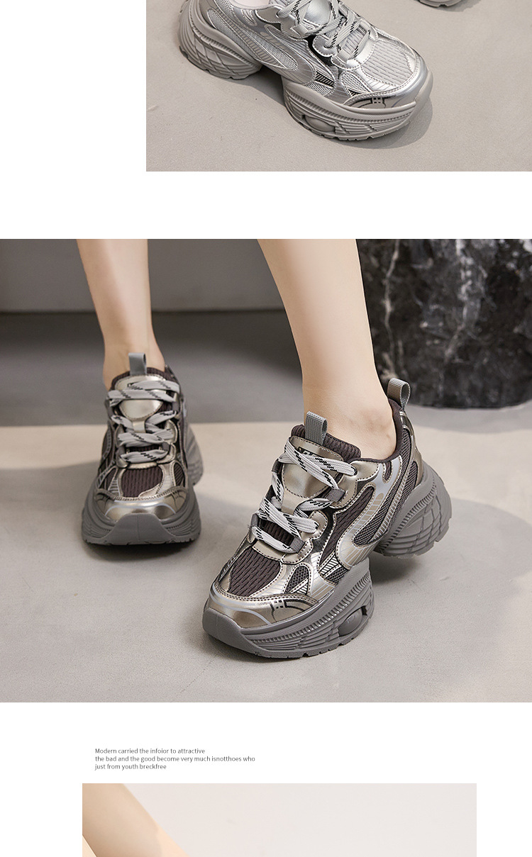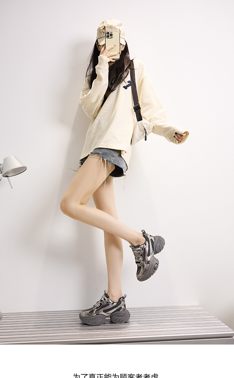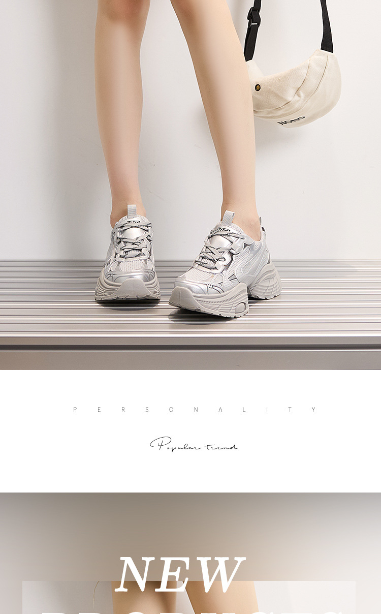 2024 스몰 사이즈 두꺼운 밑창 실버 유행 토르 신발 여성의 새로운 올 매치 캐주얼 신발 높이 증가 경량 운동화 트렌디 신발스토어 가기