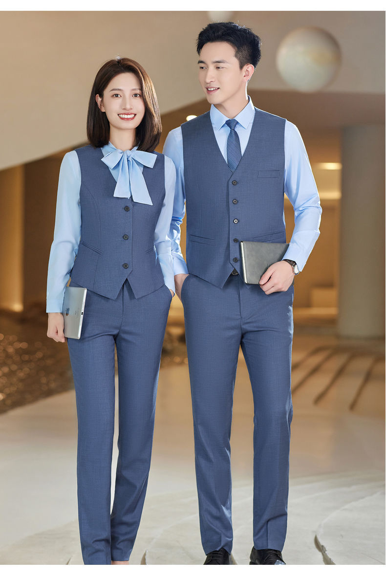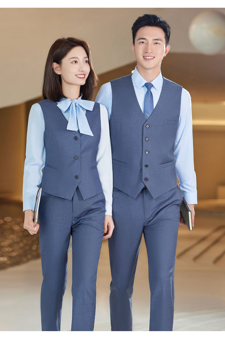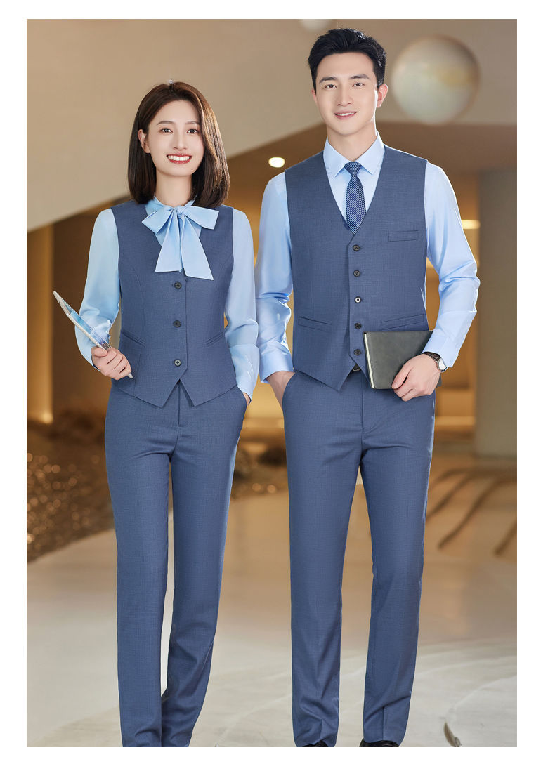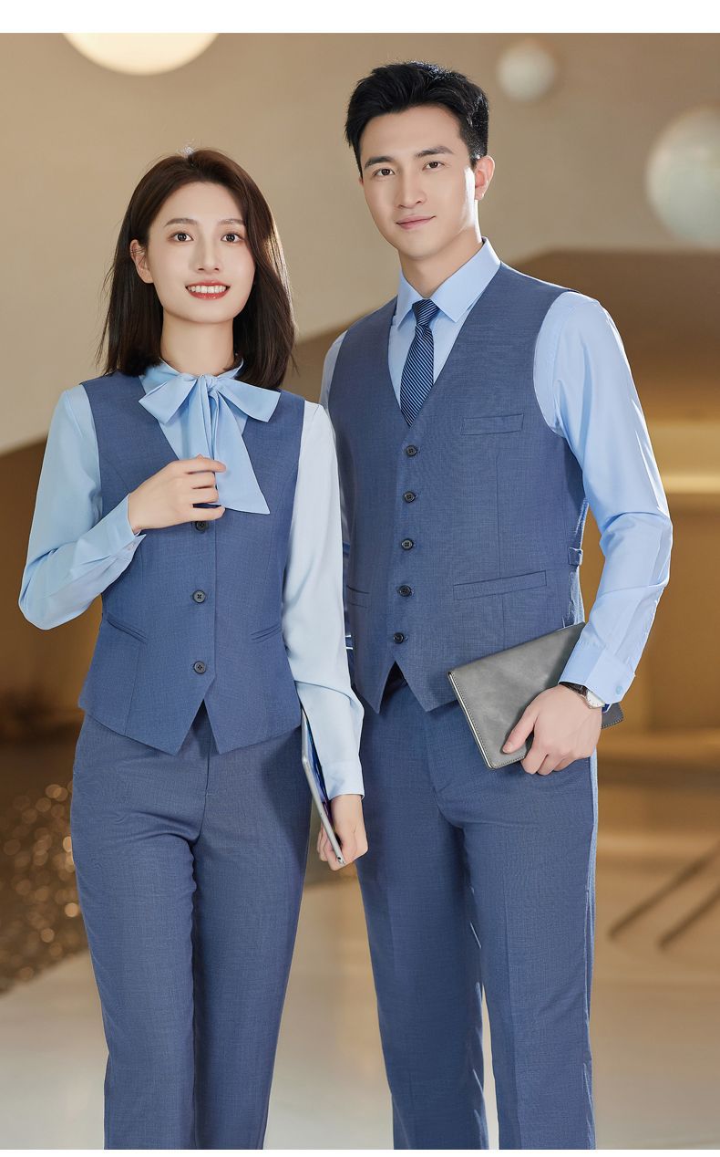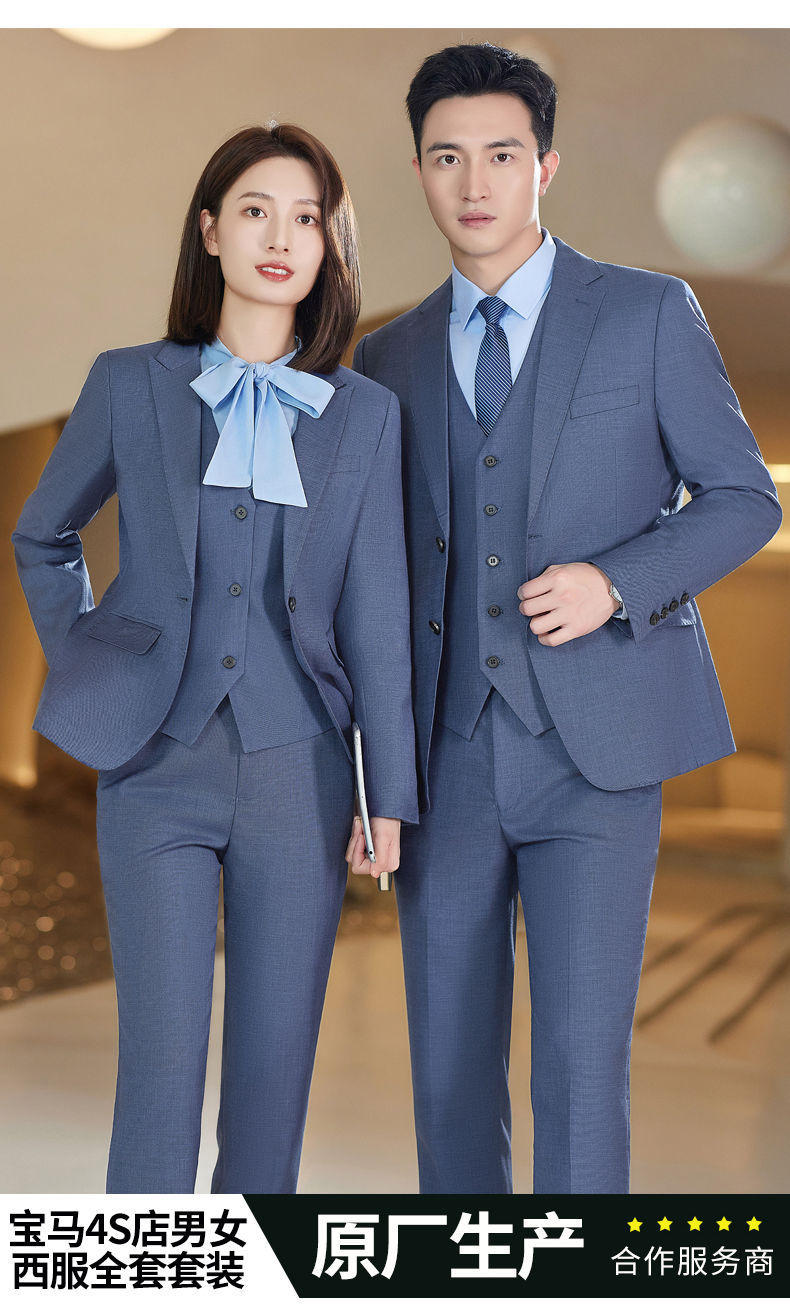 Lingchuang BMW 4S 스토어 남성과 여성을위한 새로운 작업복 블루 조끼 판매 컨설턴트 비즈니스 착용 여성 조끼 슬림 유니폼스토어 가기