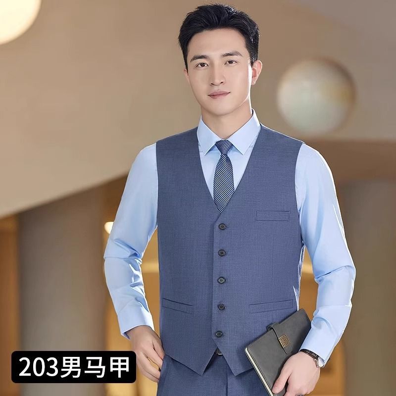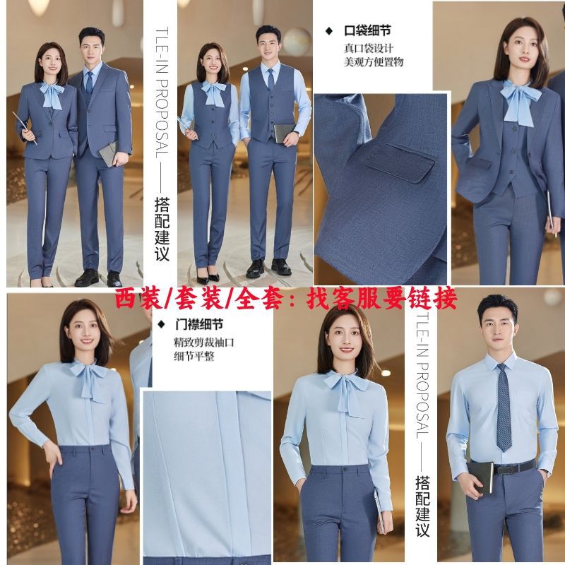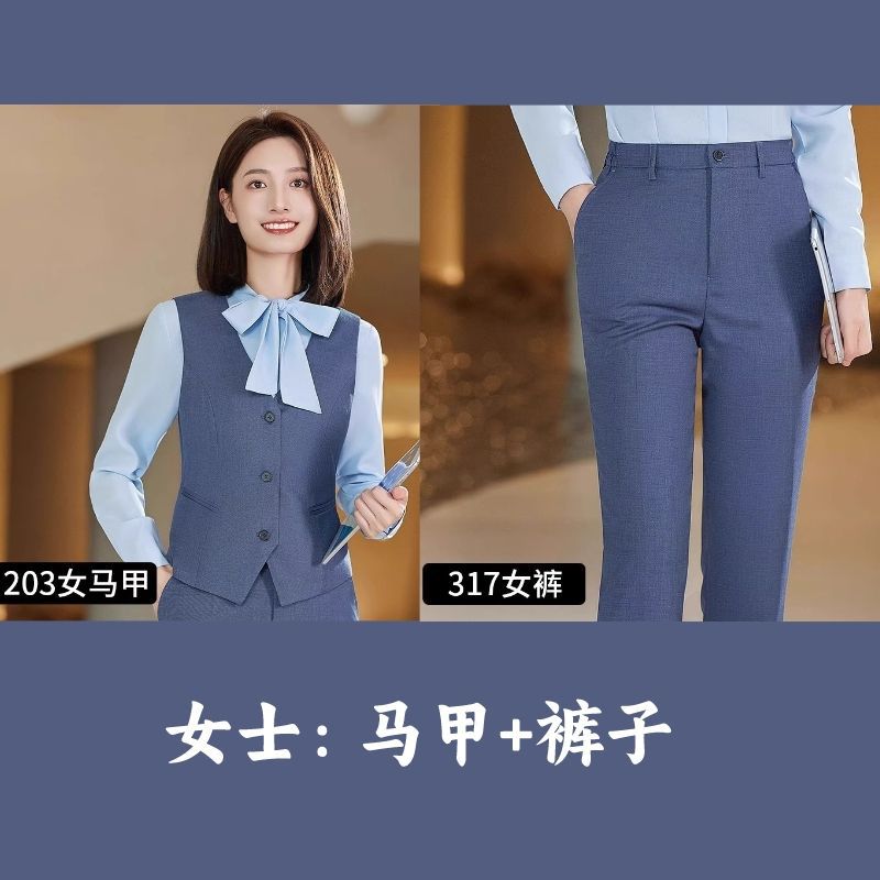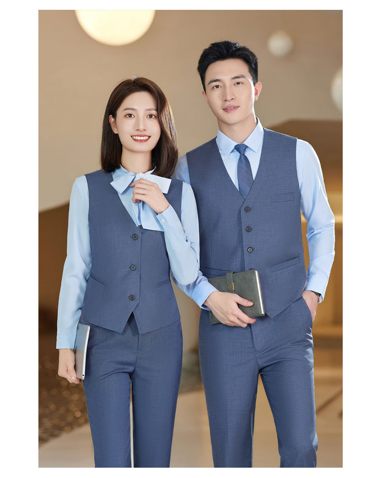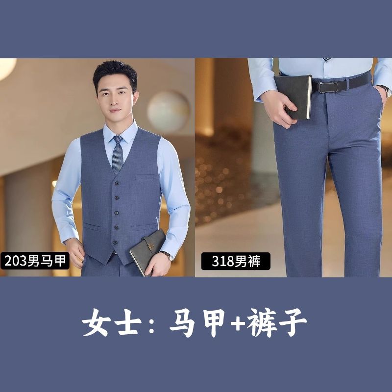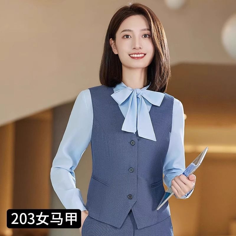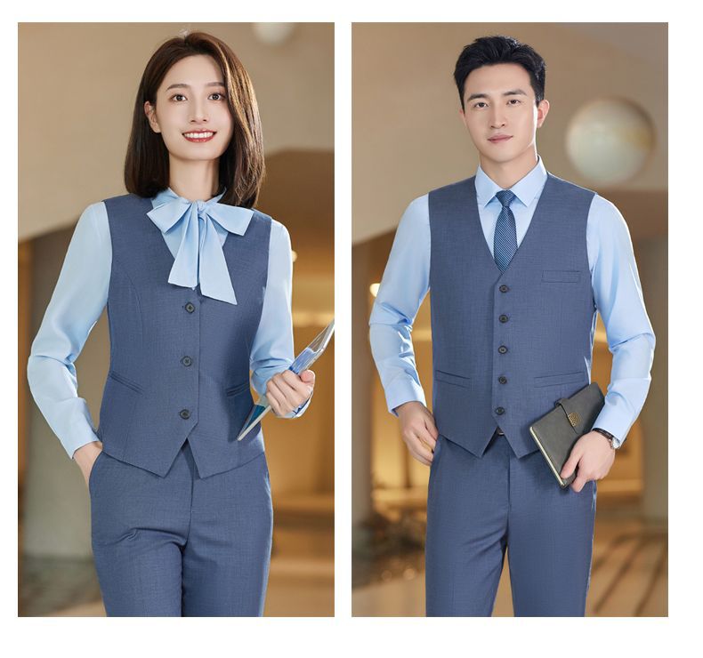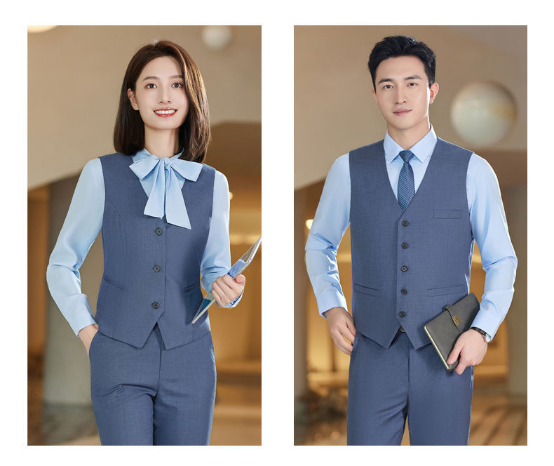 Lingchuang BMW 4S 스토어 남성과 여성을위한 새로운 작업복 블루 조끼 판매 컨설턴트 비즈니스 착용 여성 조끼 슬림 유니폼스토어 가기
