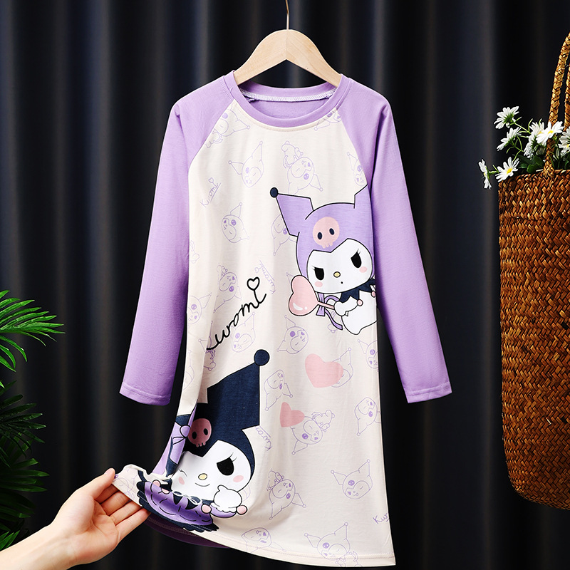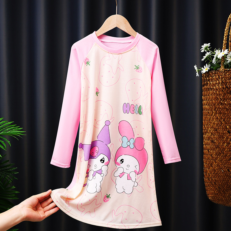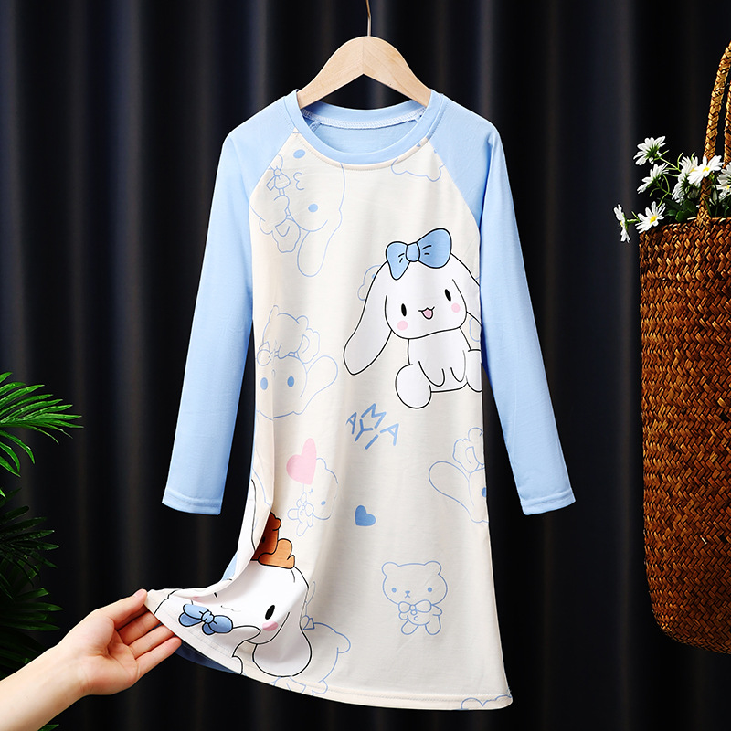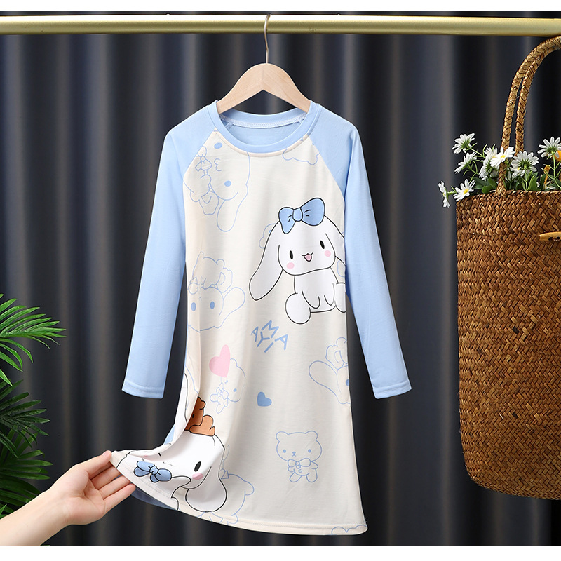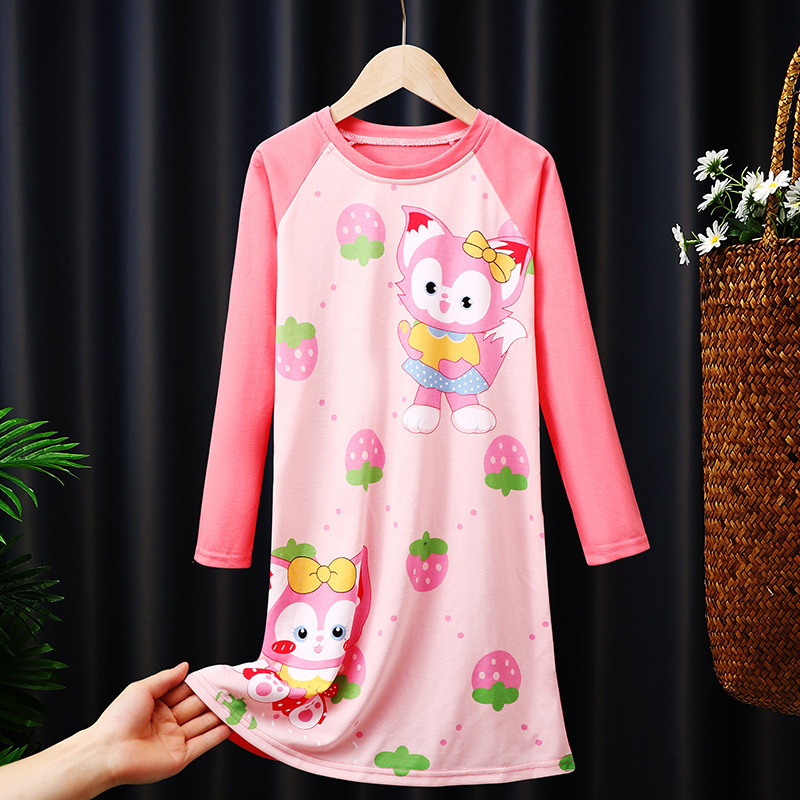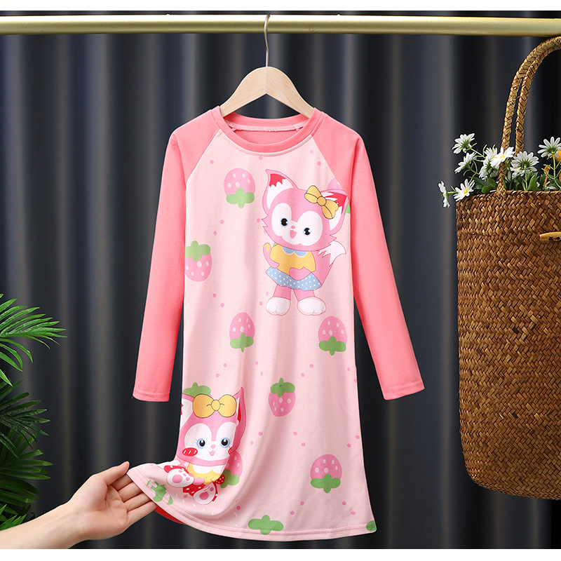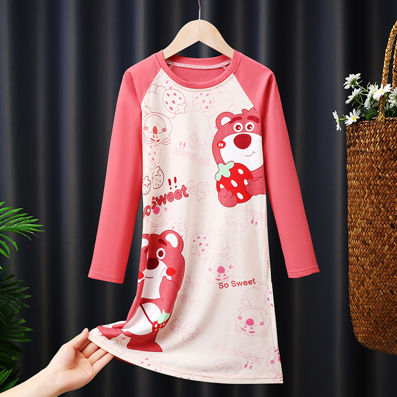 소녀의 잠옷 봄과 가을 긴 소매 코튼 만화 귀여운 어린이 잠옷 소녀의 공주 스타일 홈 의류 원피스