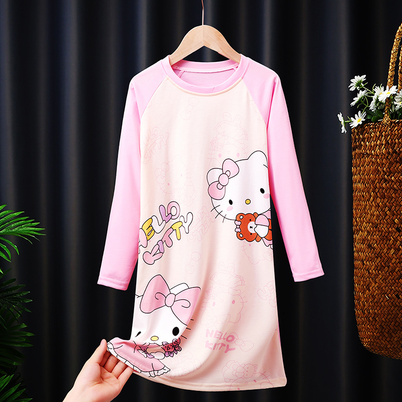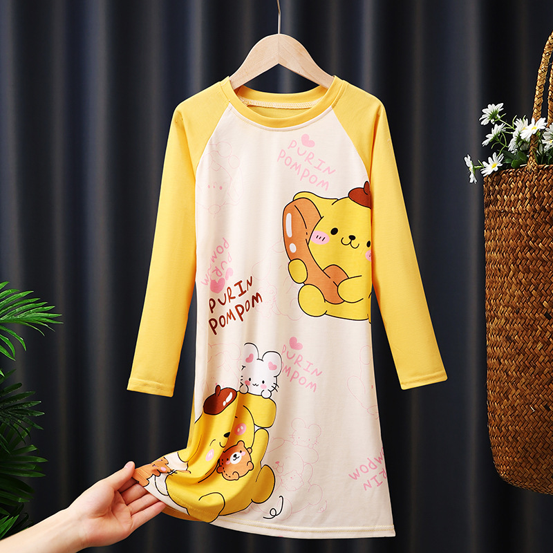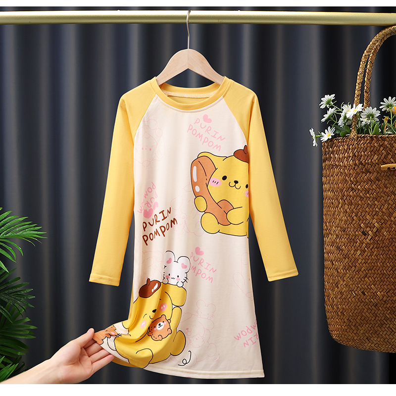 소녀의 잠옷 봄과 가을 긴 소매 코튼 만화 귀여운 어린이 잠옷 소녀의 공주 스타일 홈 의류 원피스스토어 가기