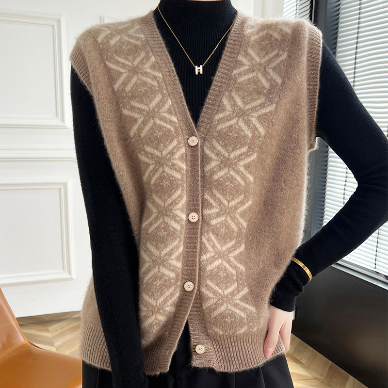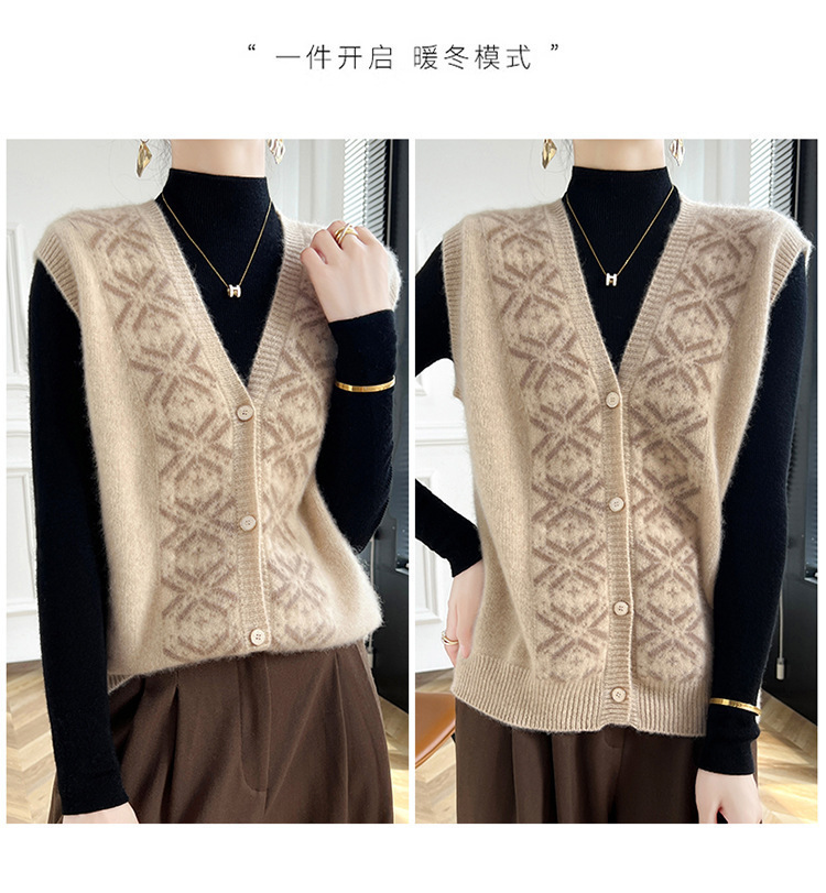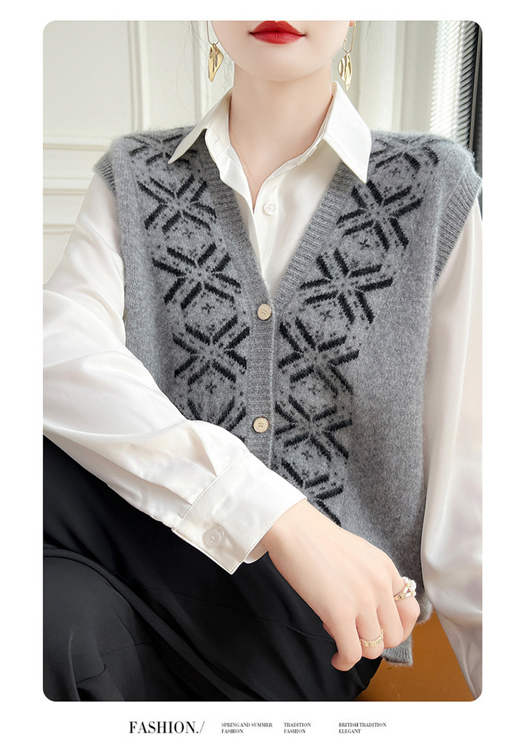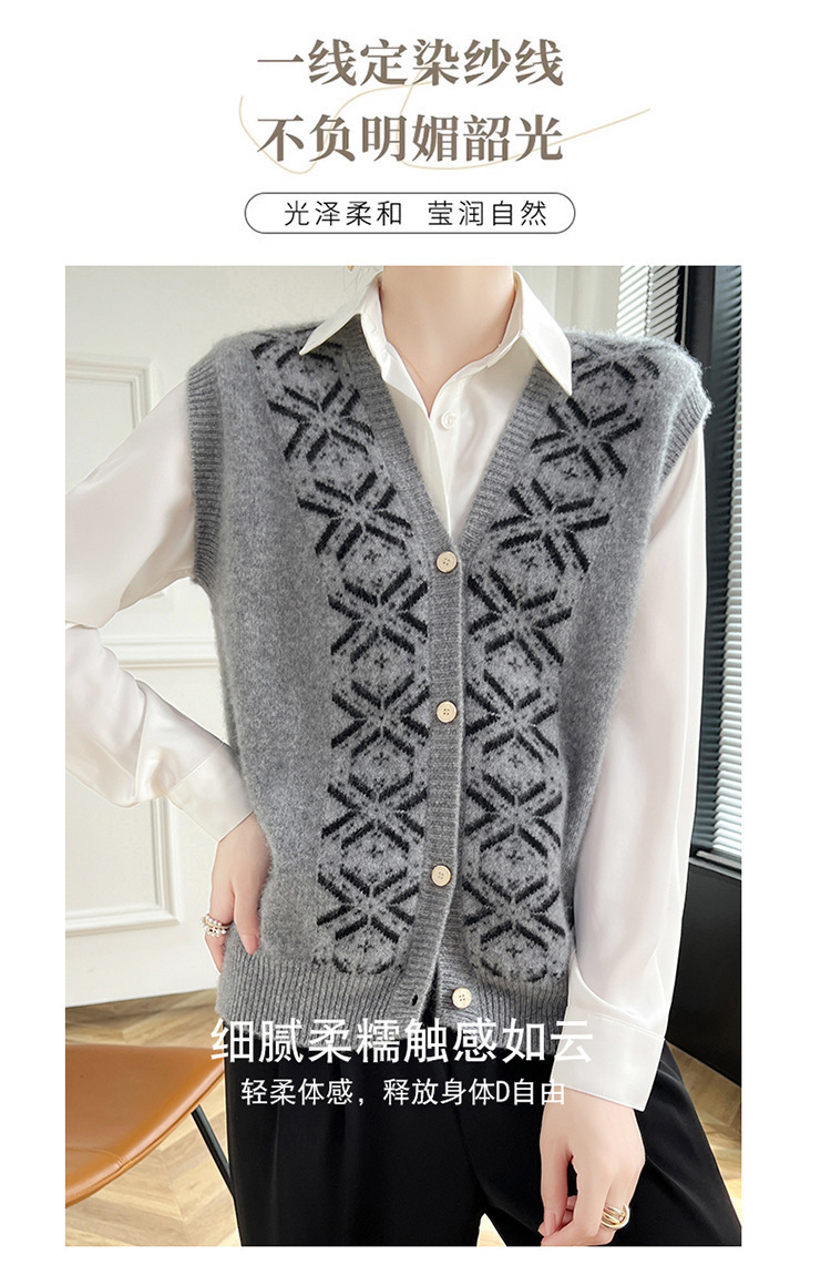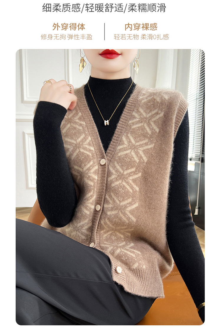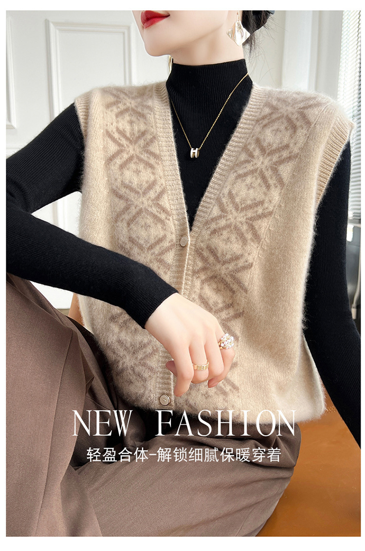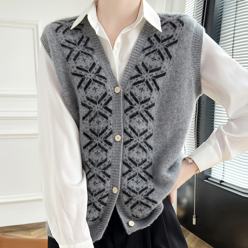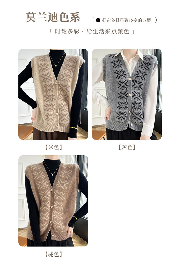 프랑스 레트로 울 조끼 여성 24 가을 겨울 자카드 두꺼운 니트 웨이스트 코트 소프트 왁스 민소매 조끼 탑