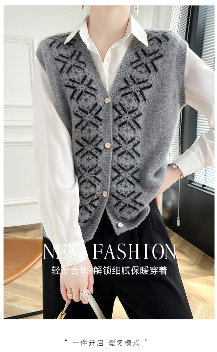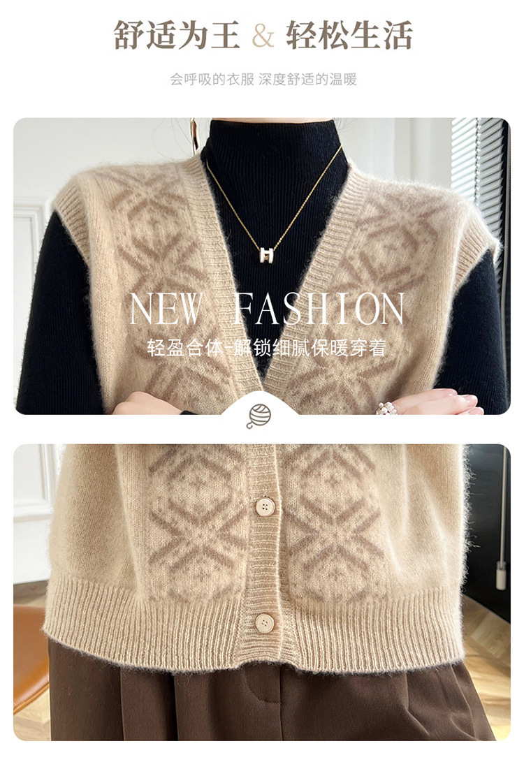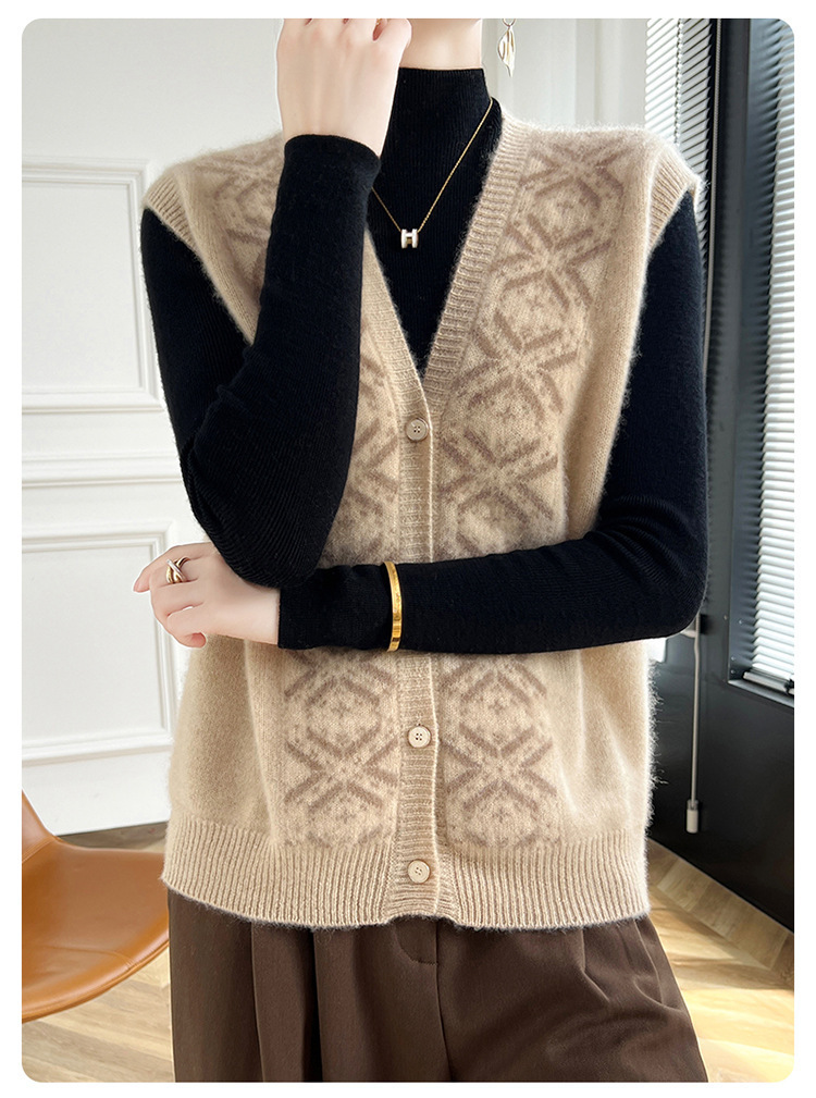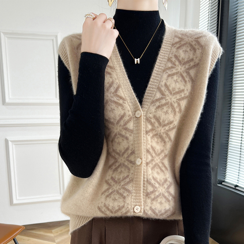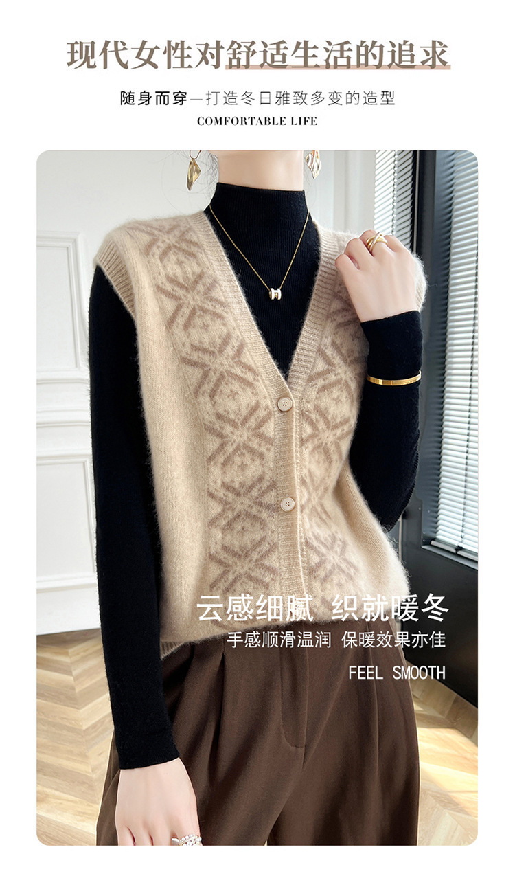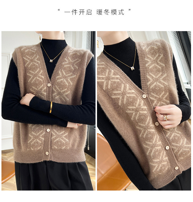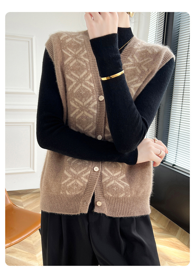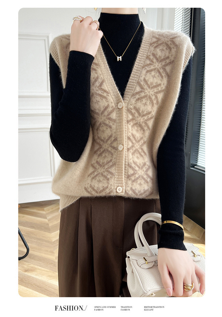 프랑스 레트로 울 조끼 여성 24 가을 겨울 자카드 두꺼운 니트 웨이스트 코트 소프트 왁스 민소매 조끼 탑