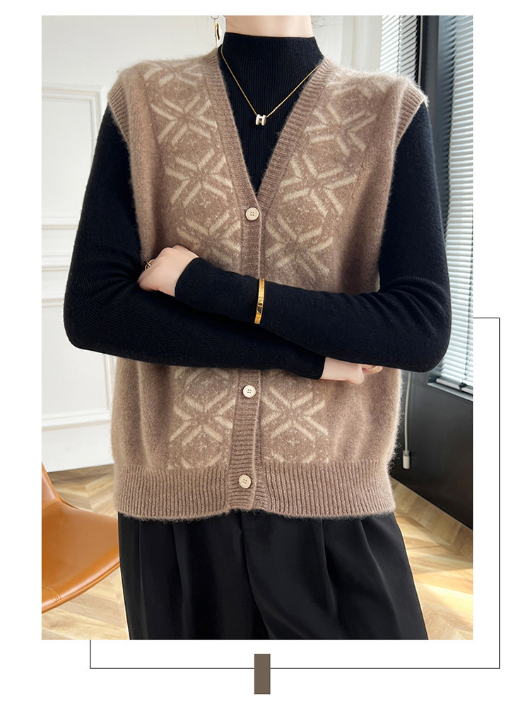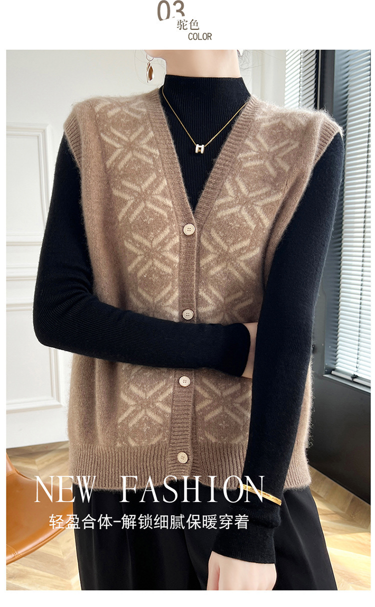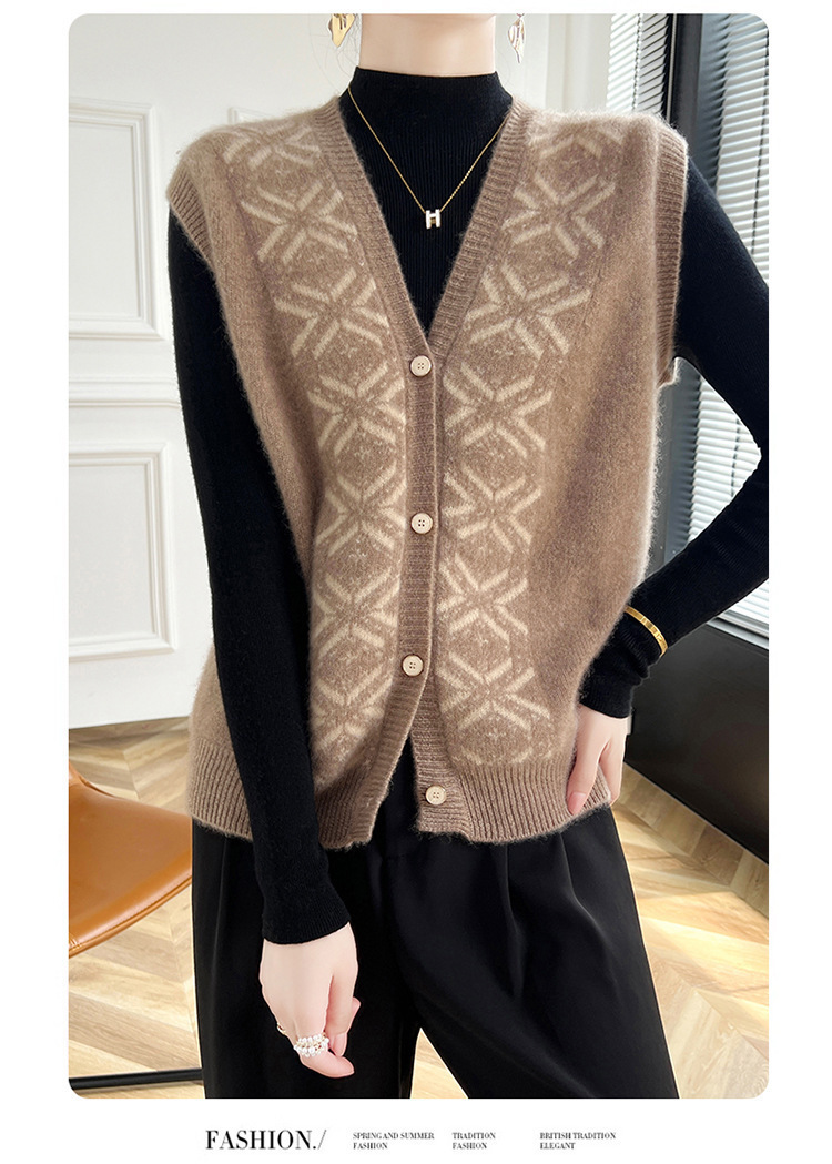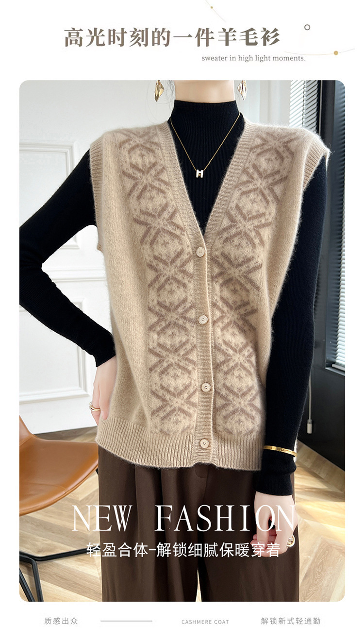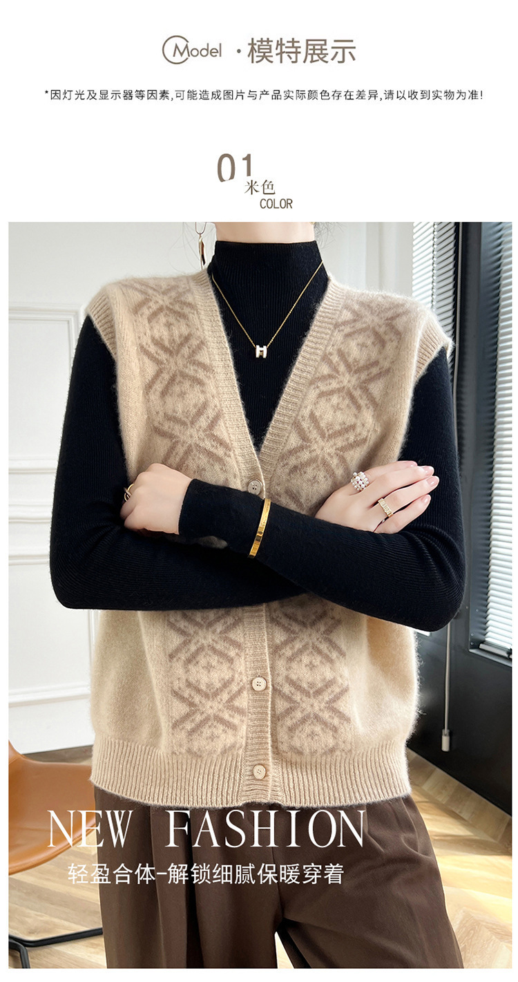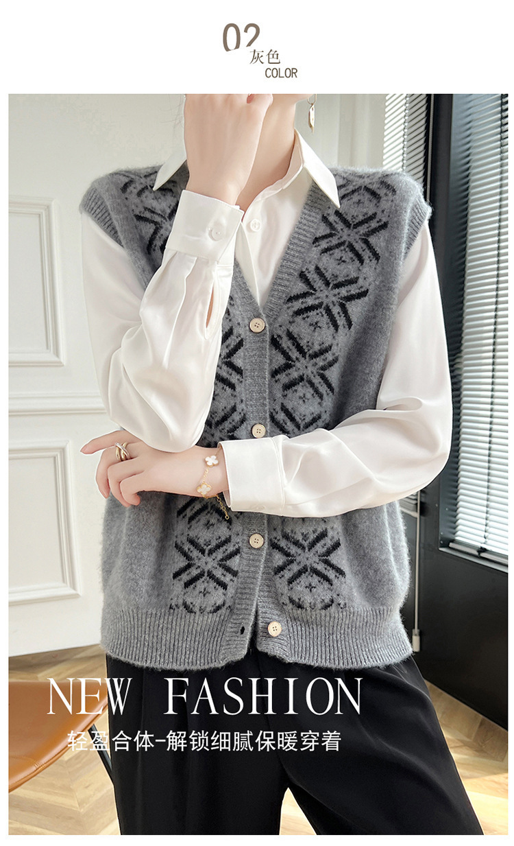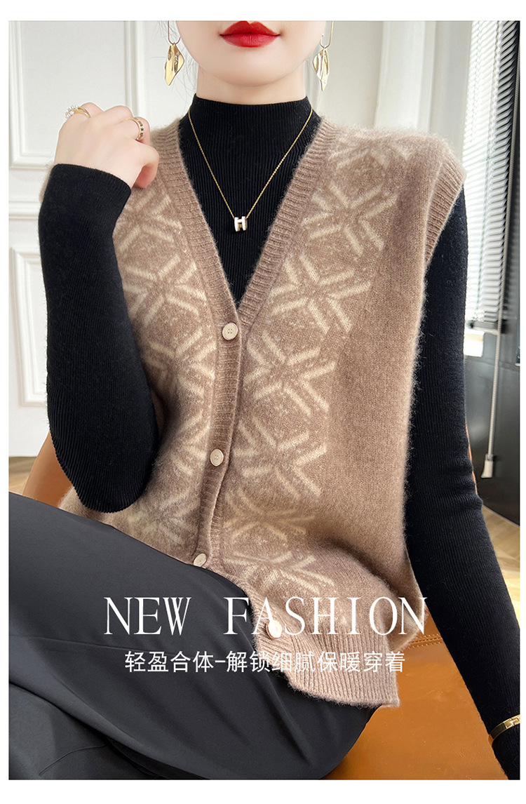 프랑스 레트로 울 조끼 여성 24 가을 겨울 자카드 두꺼운 니트 웨이스트 코트 소프트 왁스 민소매 조끼 탑
