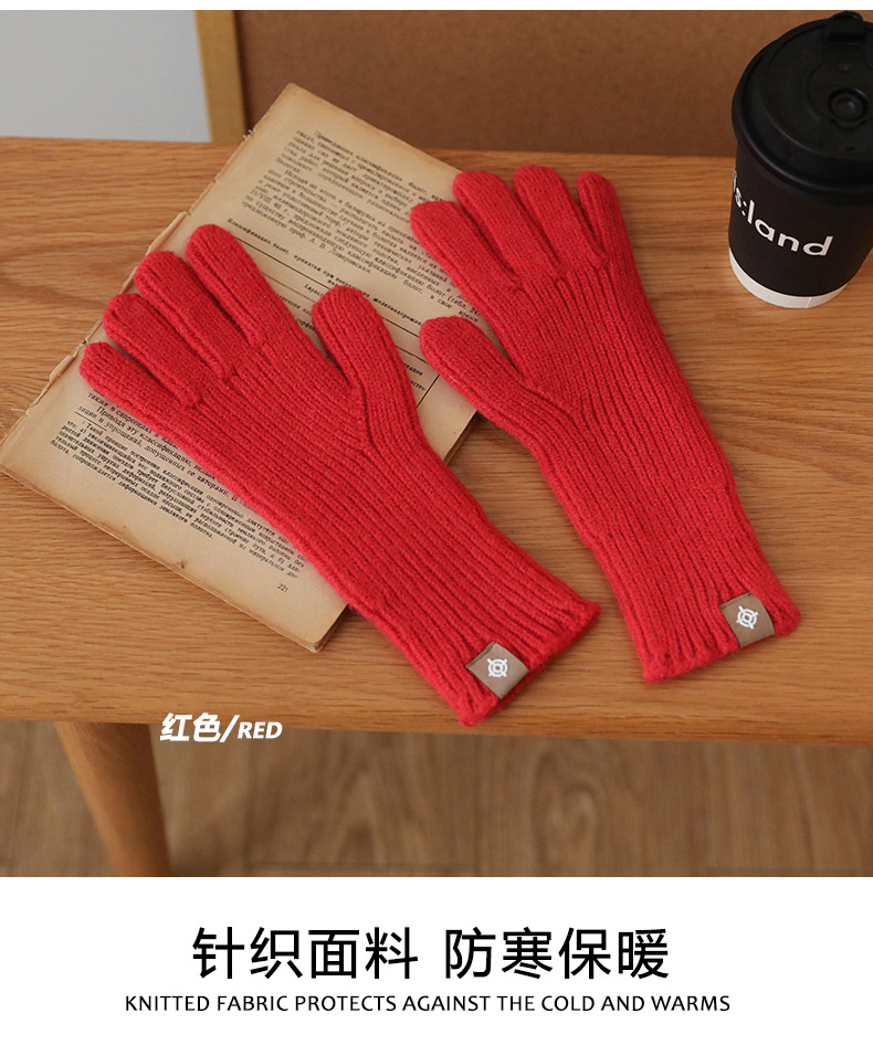 솔리드 컬러 핑거 장갑 2023 겨울 두꺼운 터치 스크린 플레이 휴대 전화 라이드 방풍 따뜻한 니트 울 남성과 여성