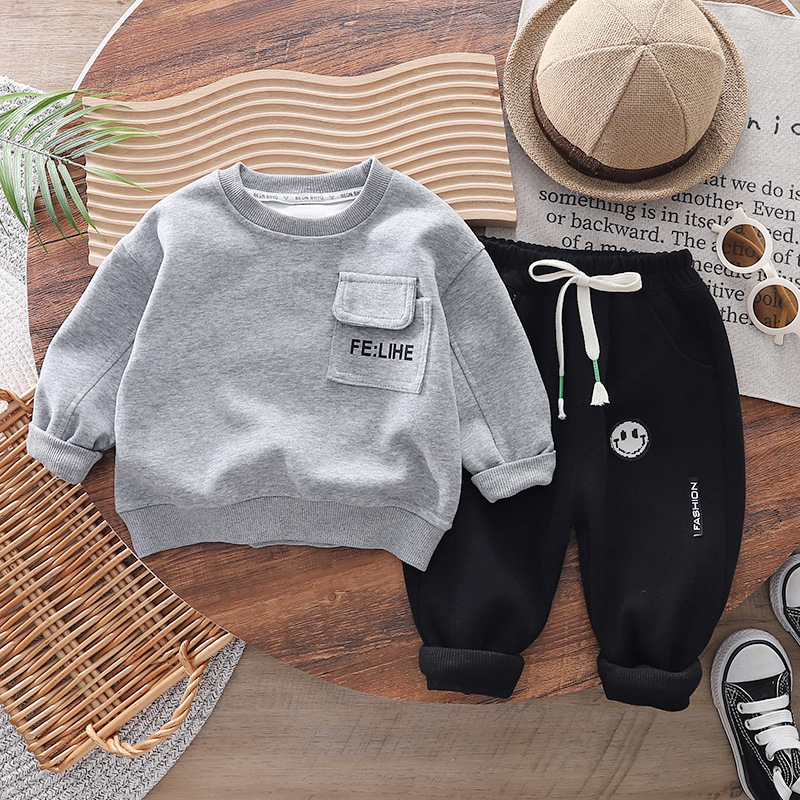 새로운 어린이 가을 새로운 스포츠 세트 단색 둥근 목 셔츠 어린이 봄 스웨터 바지 캐주얼 투피스 세트스토어 가기