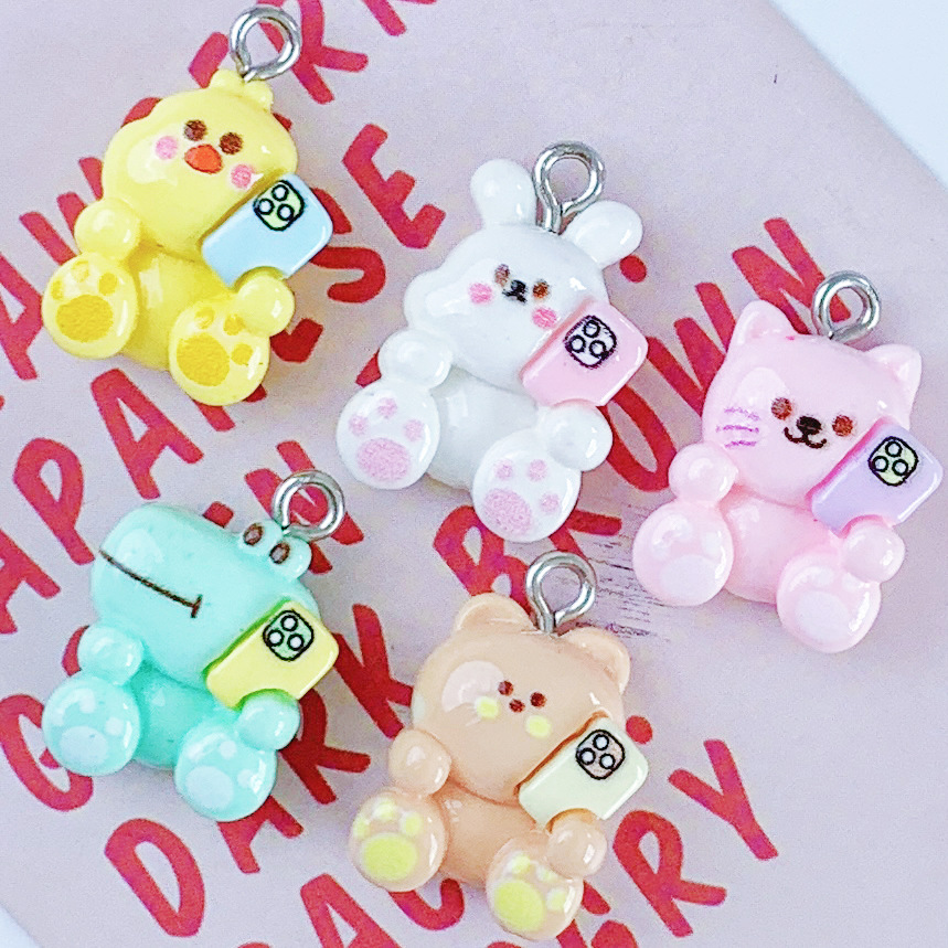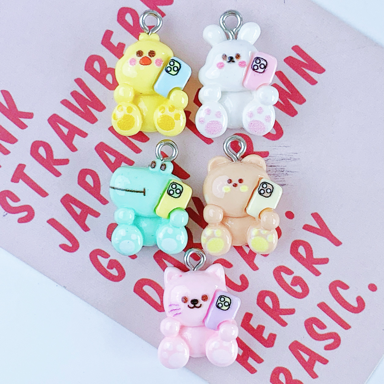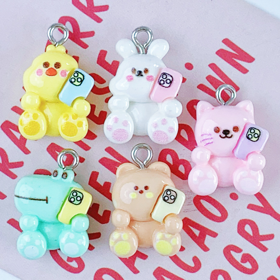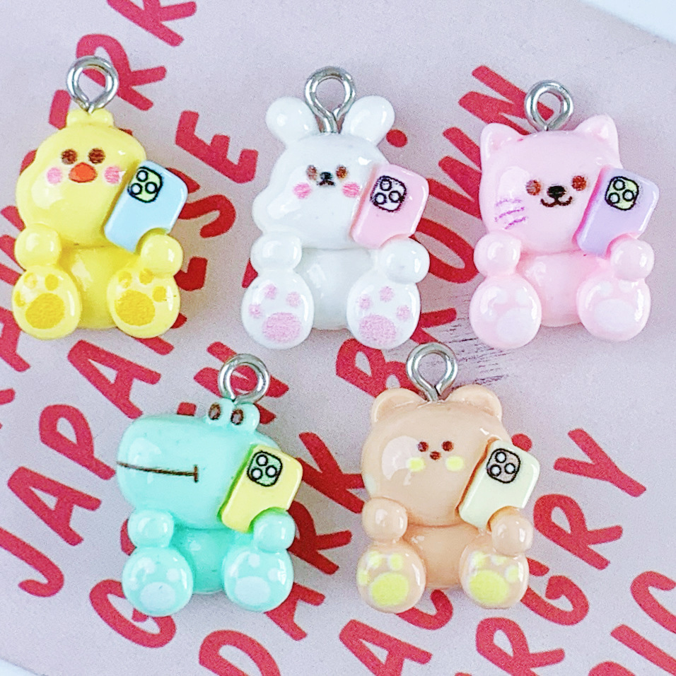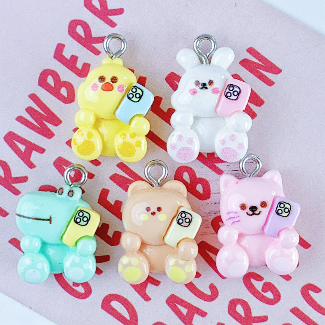 스몰 사이즈 전화 동물 반짝이 수지 액세서리 토끼 고양이 악어 곰 오리 DIY 보석 펜던트