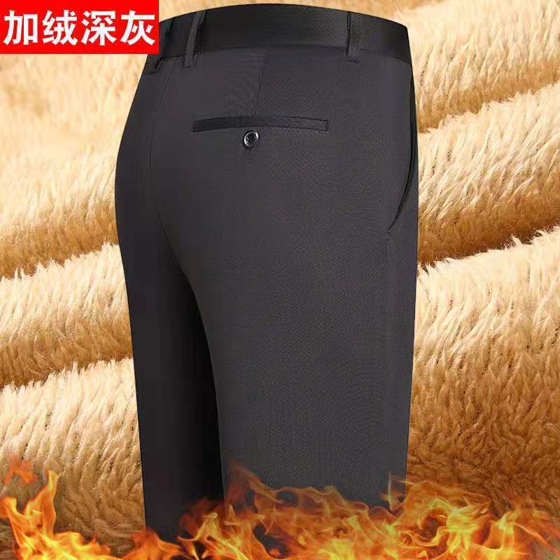 가을과 겨울 남자의 스트레치 캐주얼 바지 기모 바지 두꺼운 바지 플러스 사이즈 웨스턴 바지 뚱뚱한 남자 바지스토어 가기