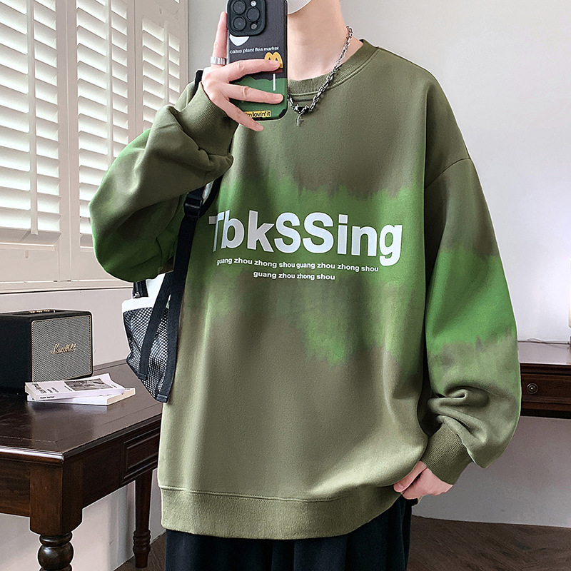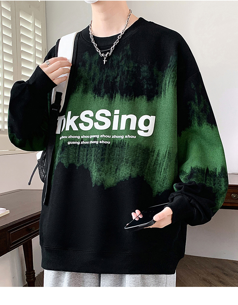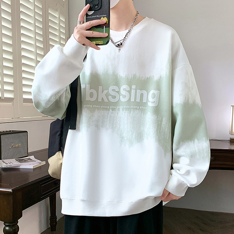 캐주얼 스웨트 셔츠 남성용 트렌디 브랜드 레터 인쇄 콘트라스트 컬러 와이드 재킷 소년 봄 가을 10 대를위한 올 매치 탑