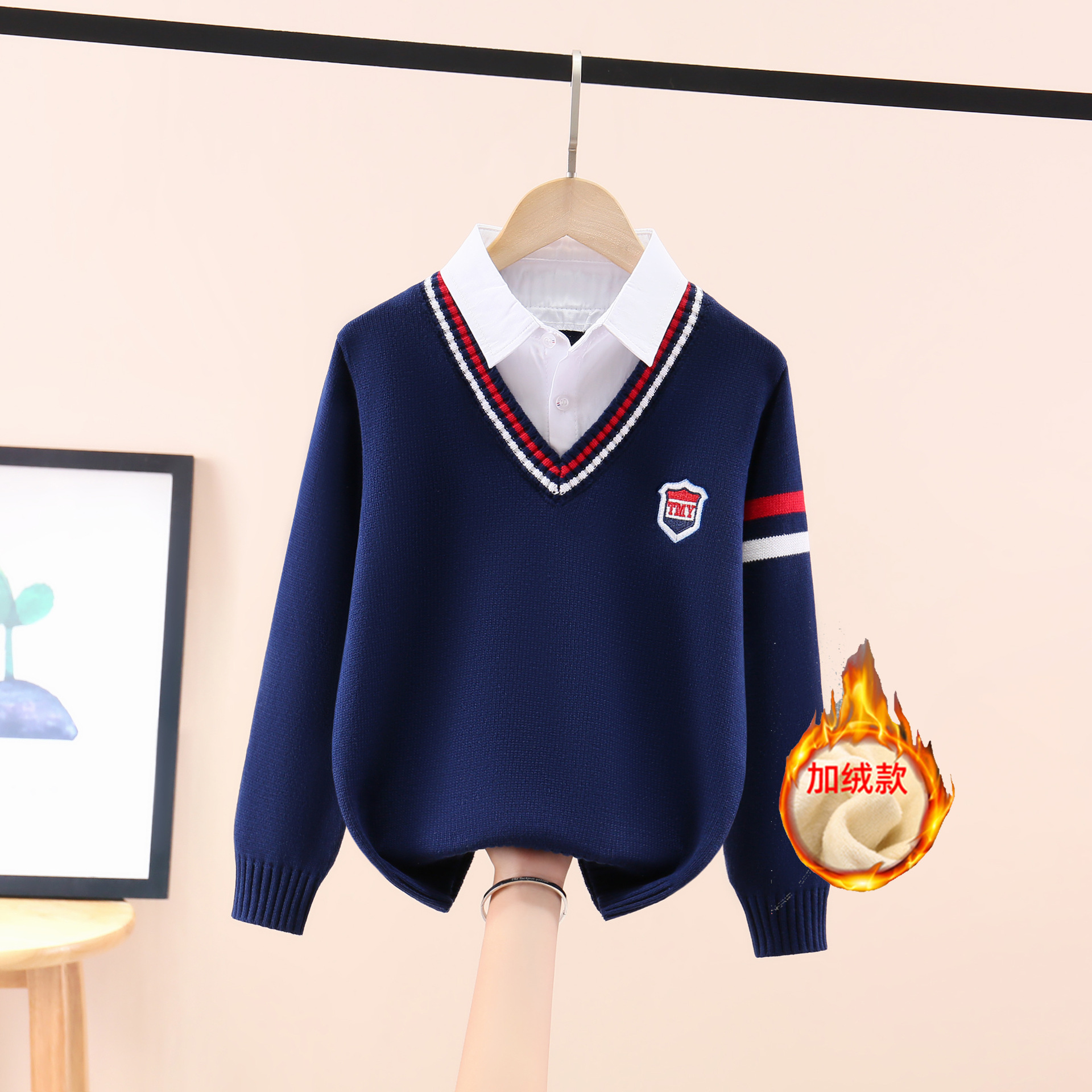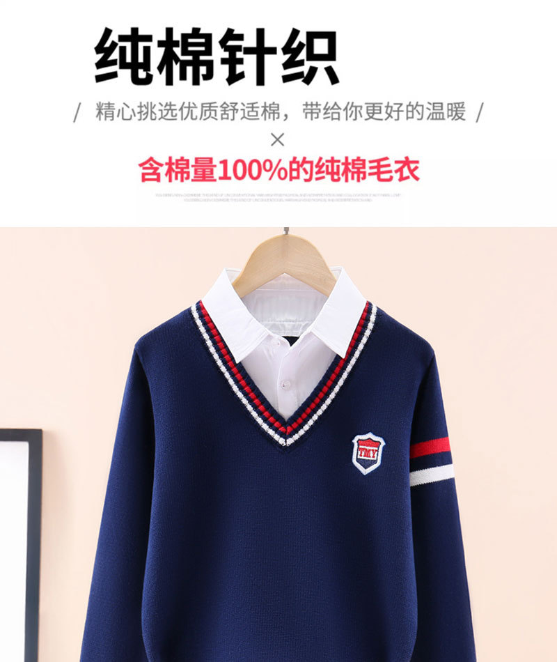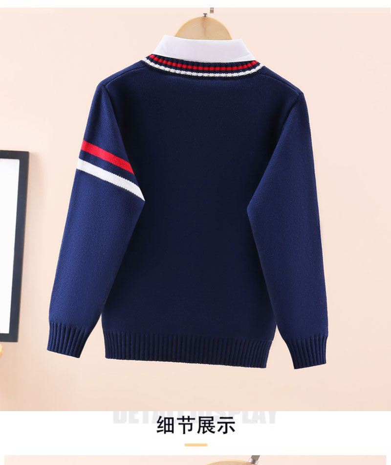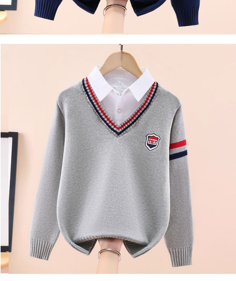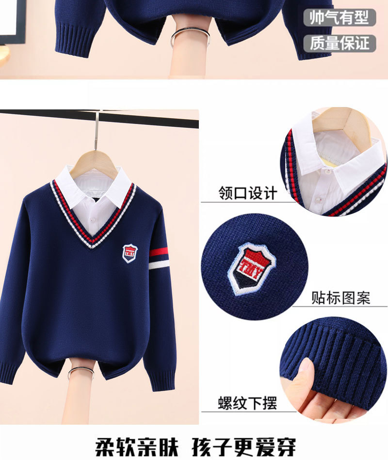 소년 스웨터 어린이 순면 니트 스웨터 봄과 가을 스웨터 가을과 겨울 기모 두꺼운 세트 외국식 중년 어린이 가짜 투피스