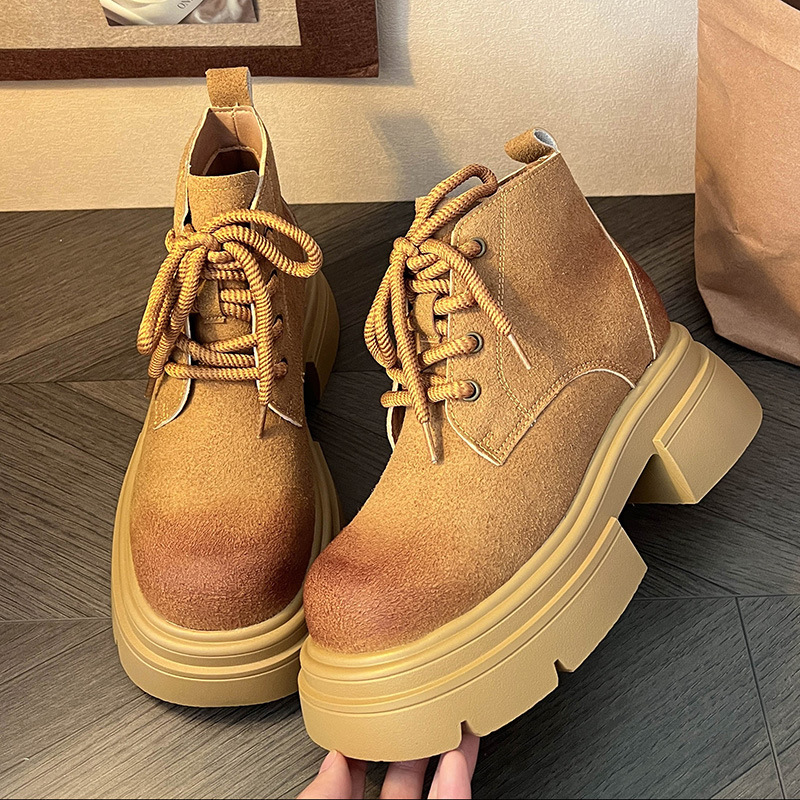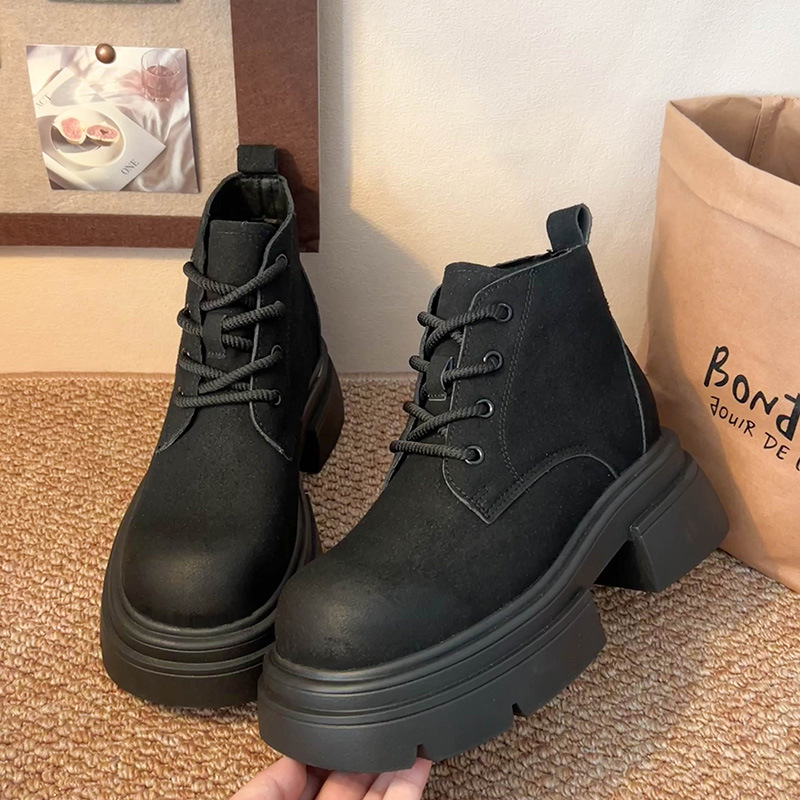 마틴 부츠 여성의 가을 2024 새로운 두꺼운 단독 힐 신발 짧은 부츠 여성 두꺼운 힐 블랙 여성 신발 영국 스타일 가죽 신발스토어 가기