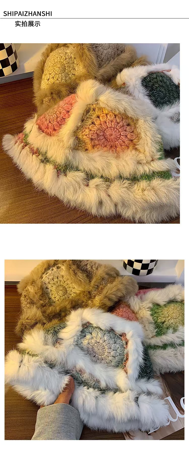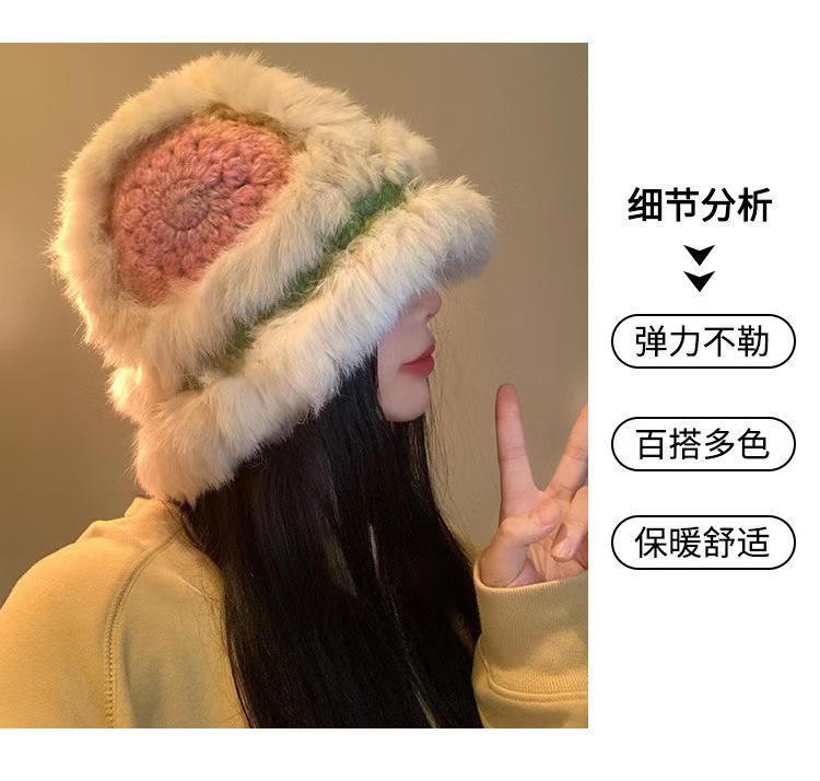 두꺼운 봉제 니트 모자 여성의 가을과 겨울 냉장 양모 모자 얼굴 작은 한국어 버전 큰 머리를위한 따뜻한 귀 보호스토어 가기