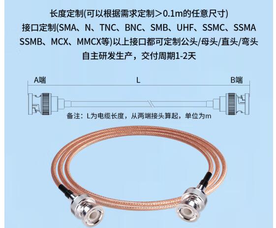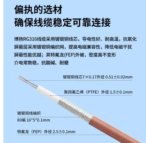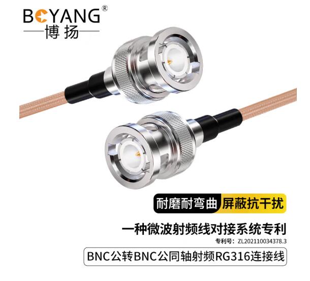 博扬 BNC公-BNC公射频连接线50欧 0.5米高频RG316超柔镀银屏蔽SFF50-1.5高温线(0-3G)BY-316-BNC-0.5*1 合格证*1