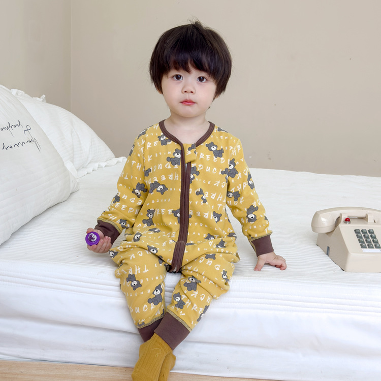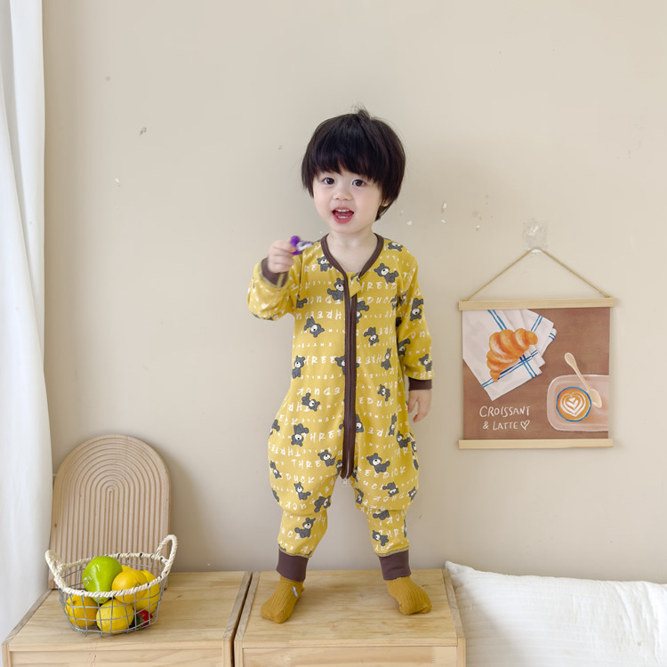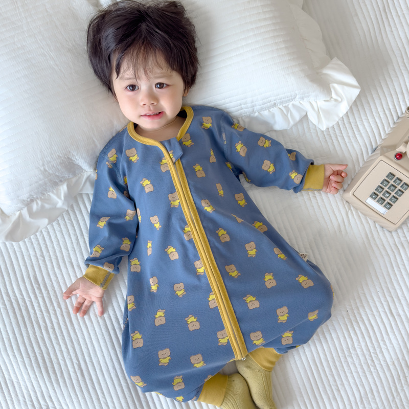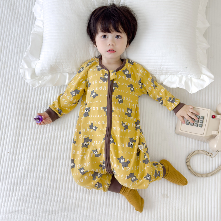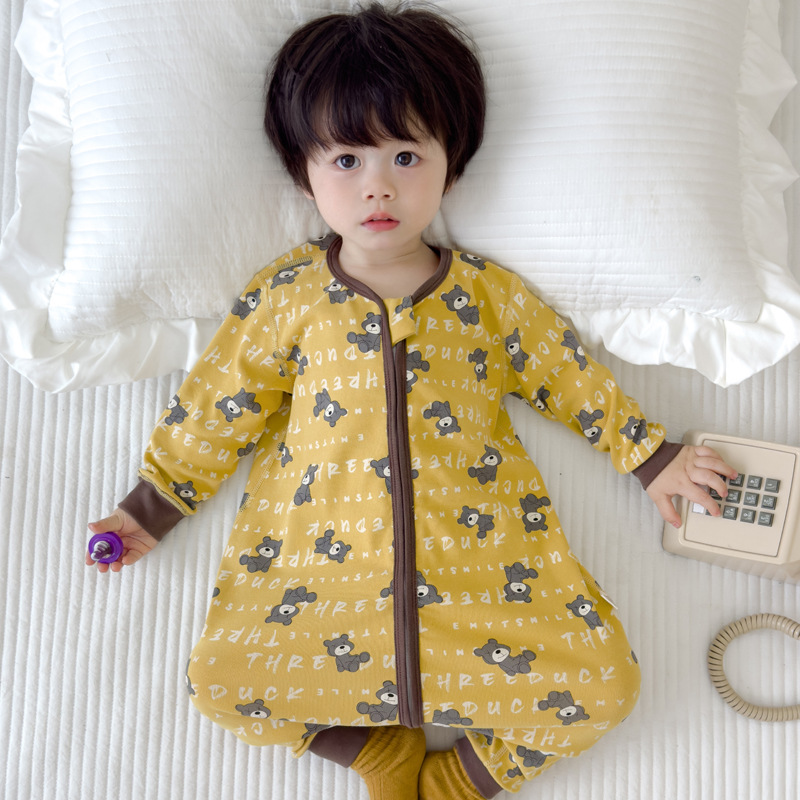 가을과 겨울 어린이 원피스 파자마 순면 뼈없는 쪼개다리 킥 방지 퀼트 아기 잠자는 가방 사계절 소년과 소녀의 집 옷