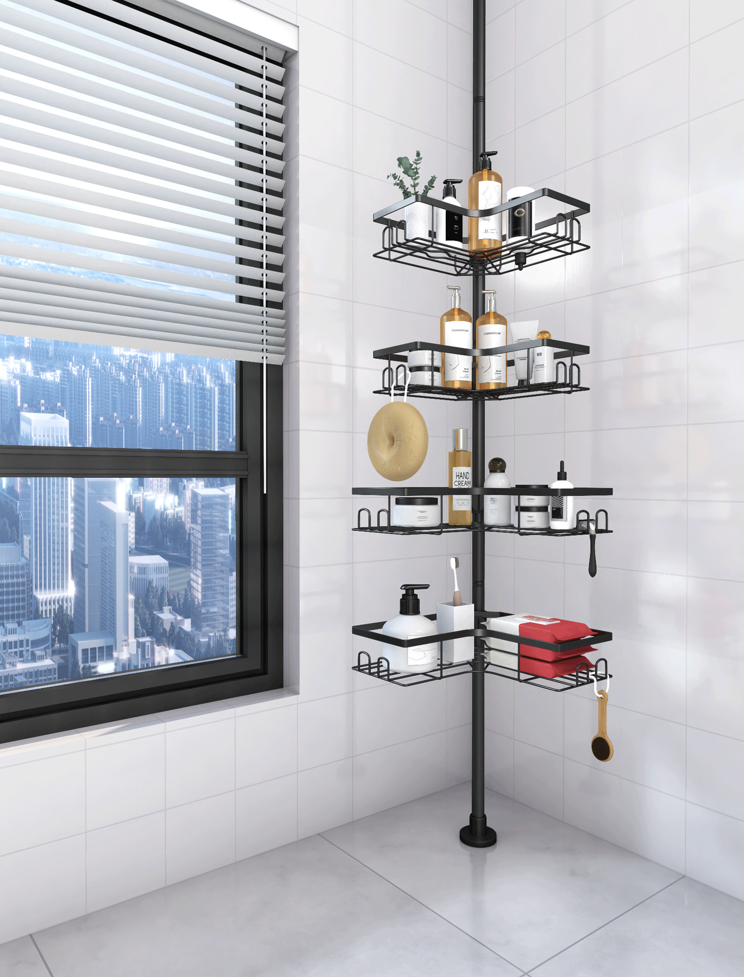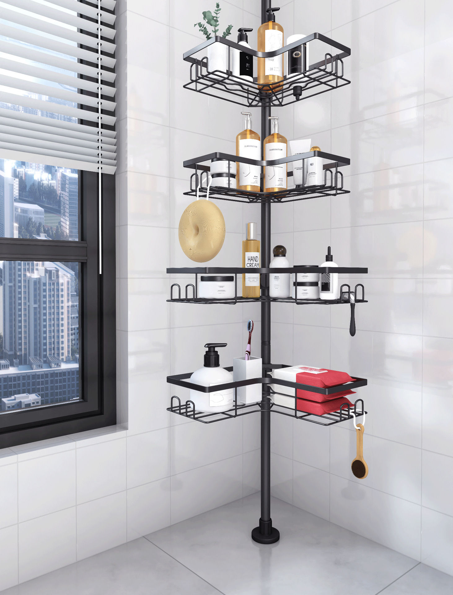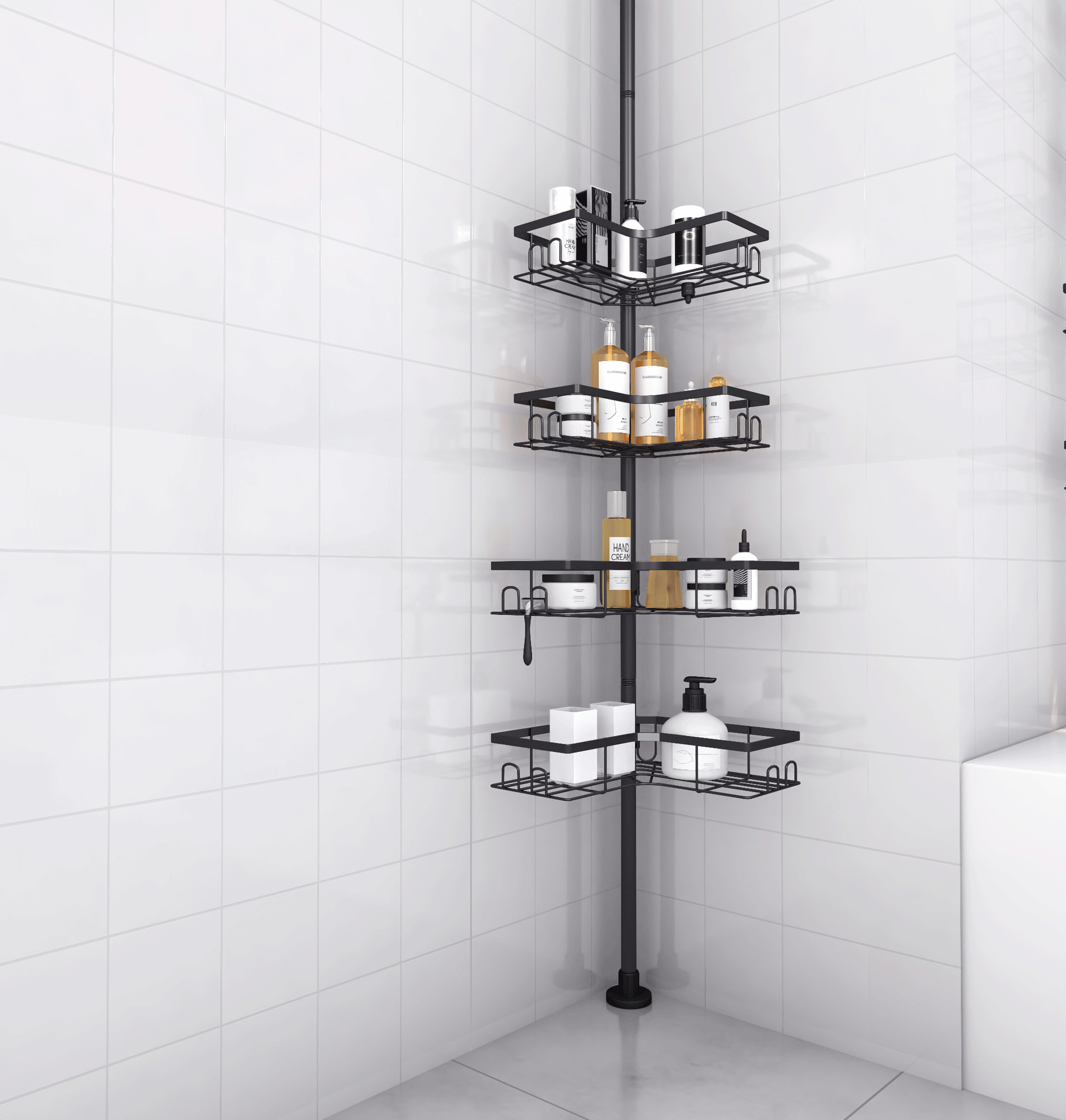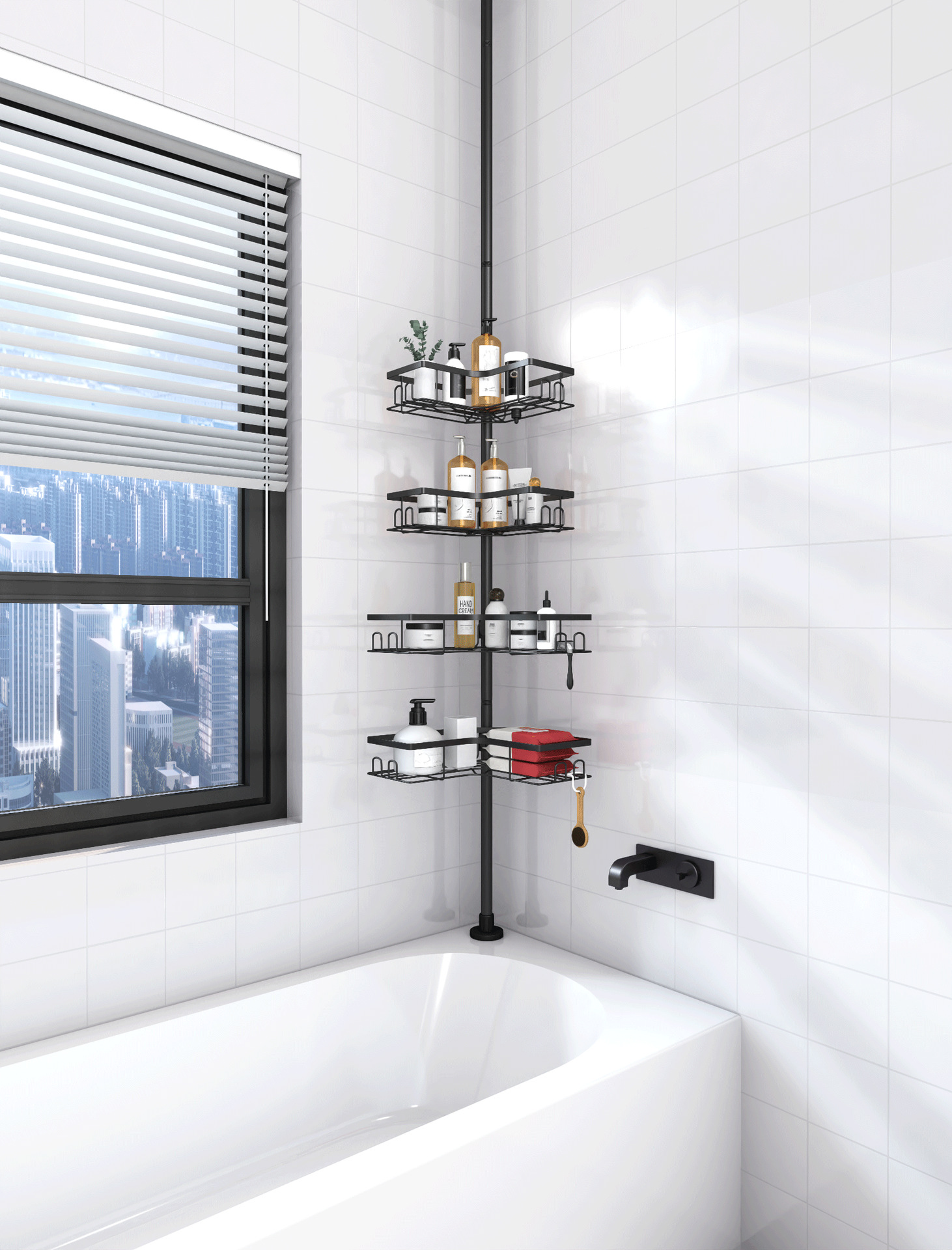욕실용 크로스보더 펀치프리 욕실 수납선반, 샤워젤을 보관할 수 있는 접이식 삼각대 천장형 수납선반스토어 가기