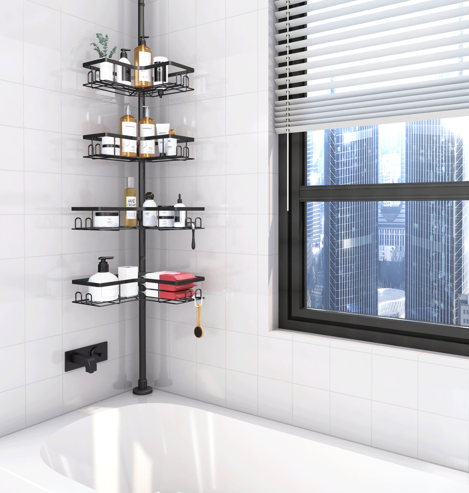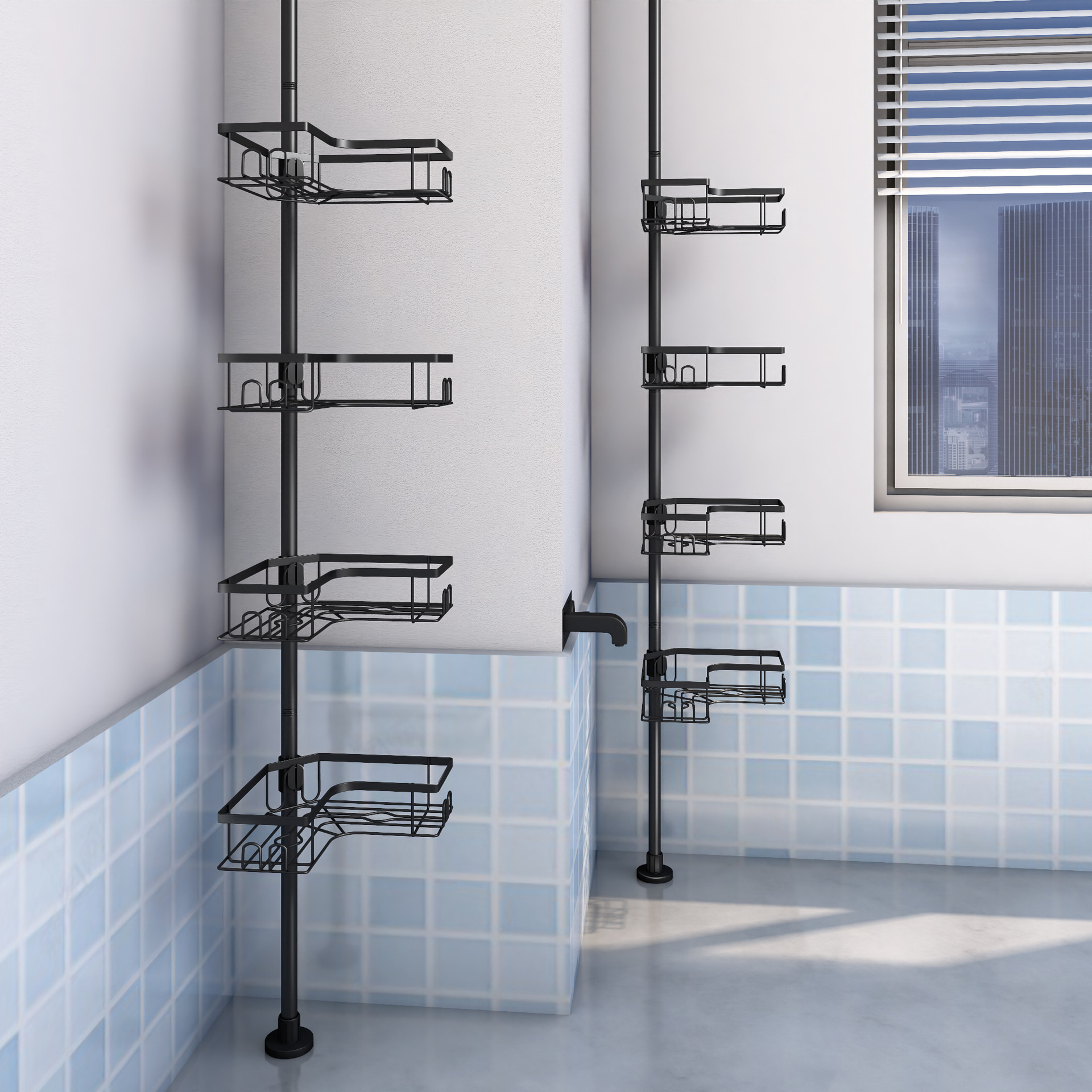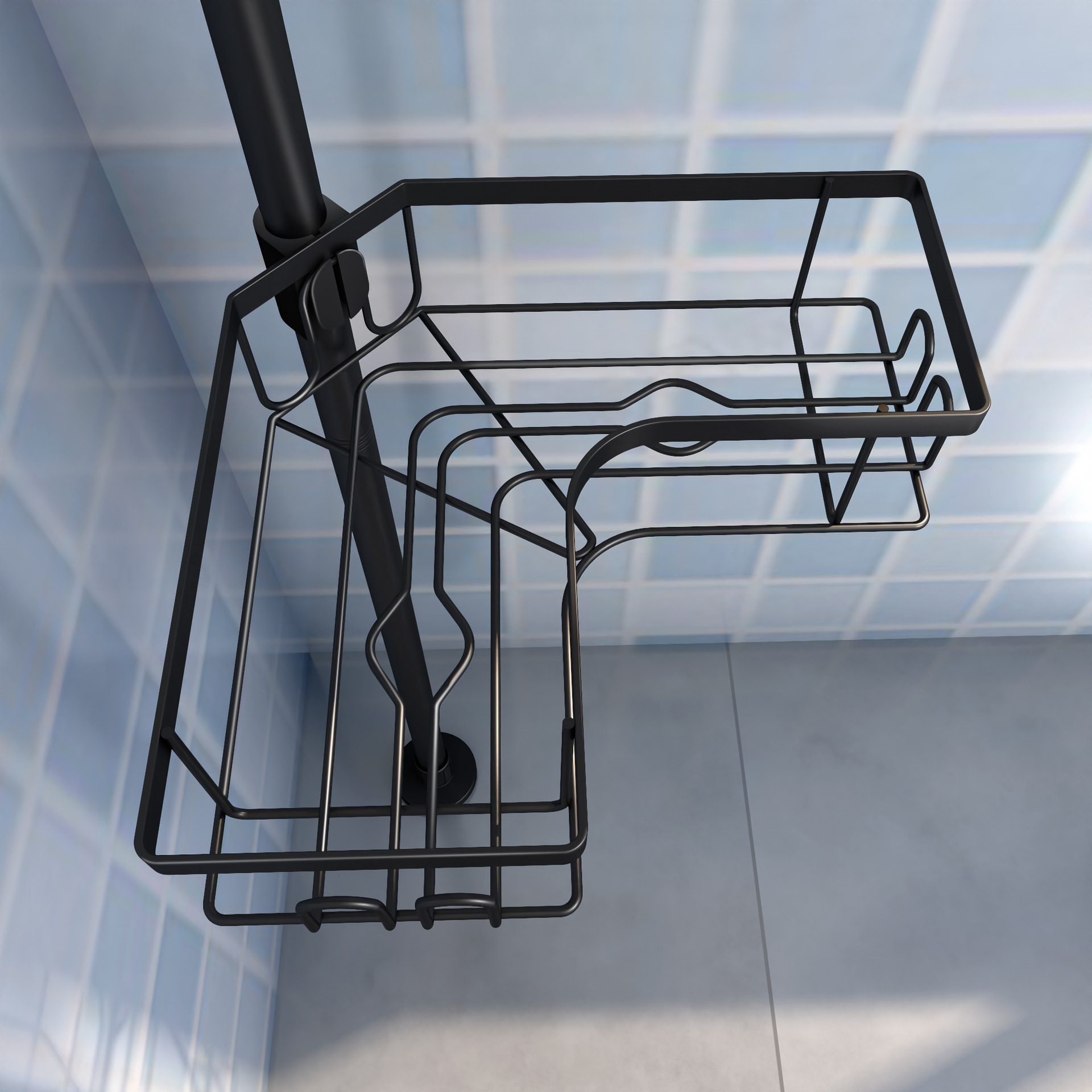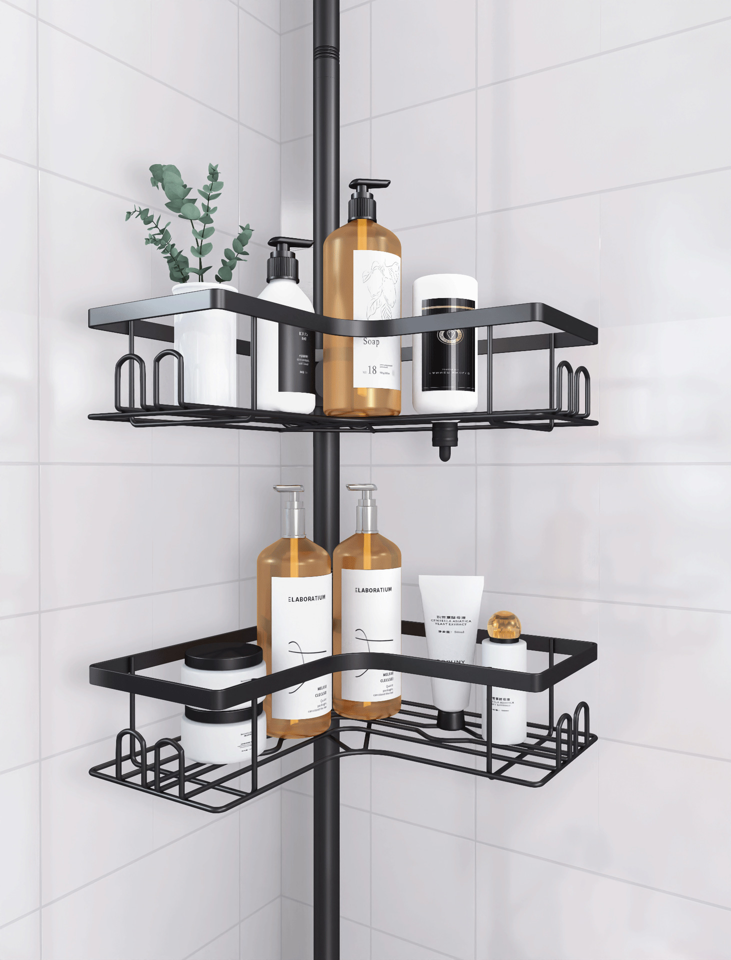 욕실용 크로스보더 펀치프리 욕실 수납선반, 샤워젤을 보관할 수 있는 접이식 삼각대 천장형 수납선반스토어 가기