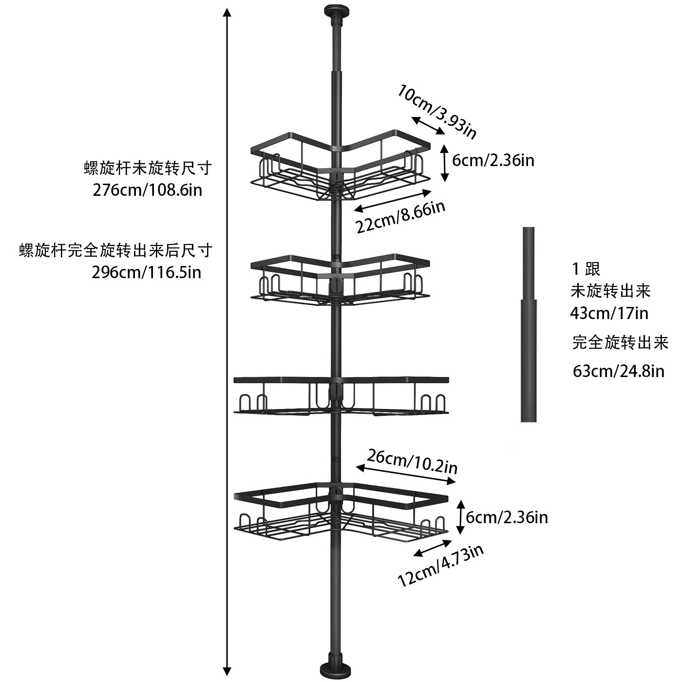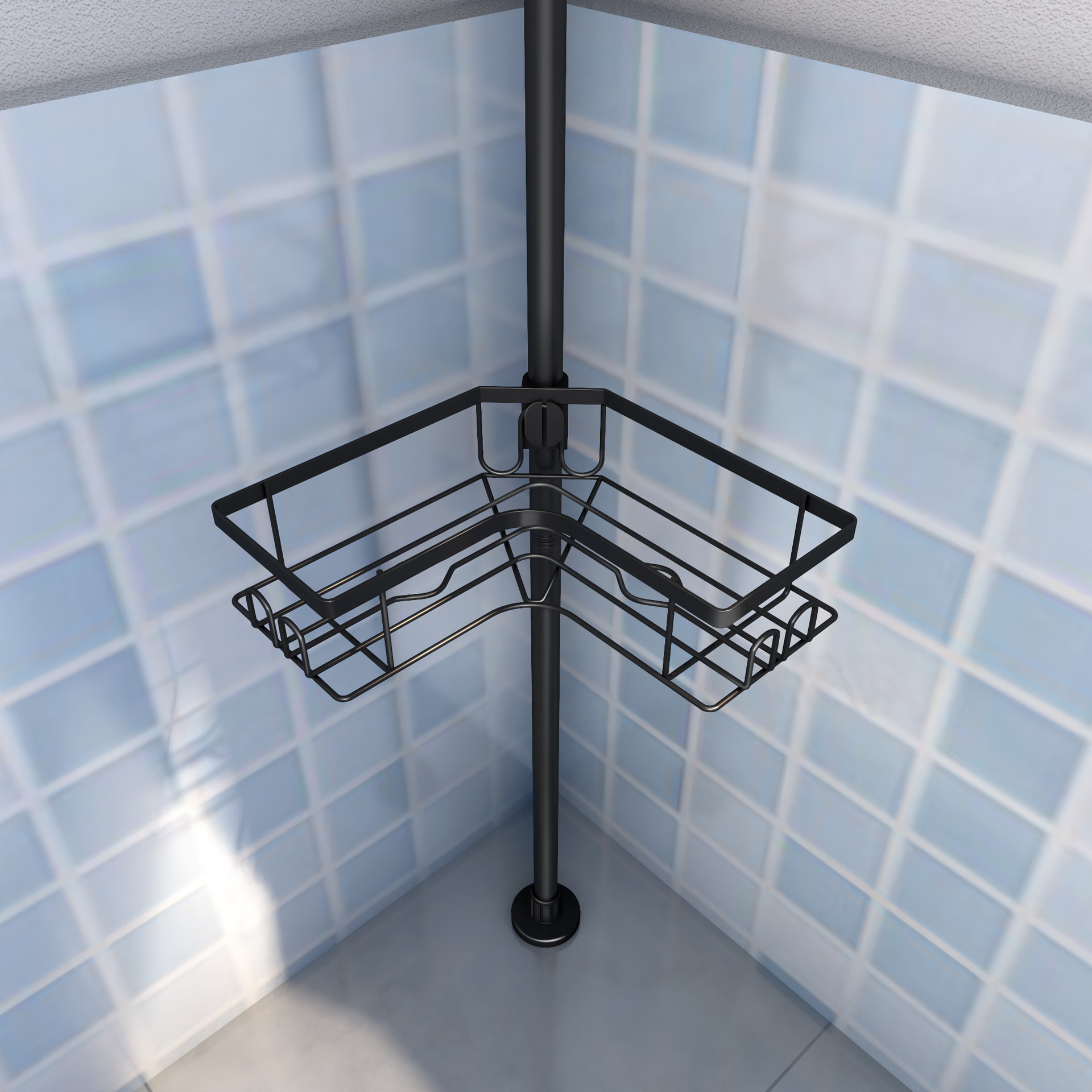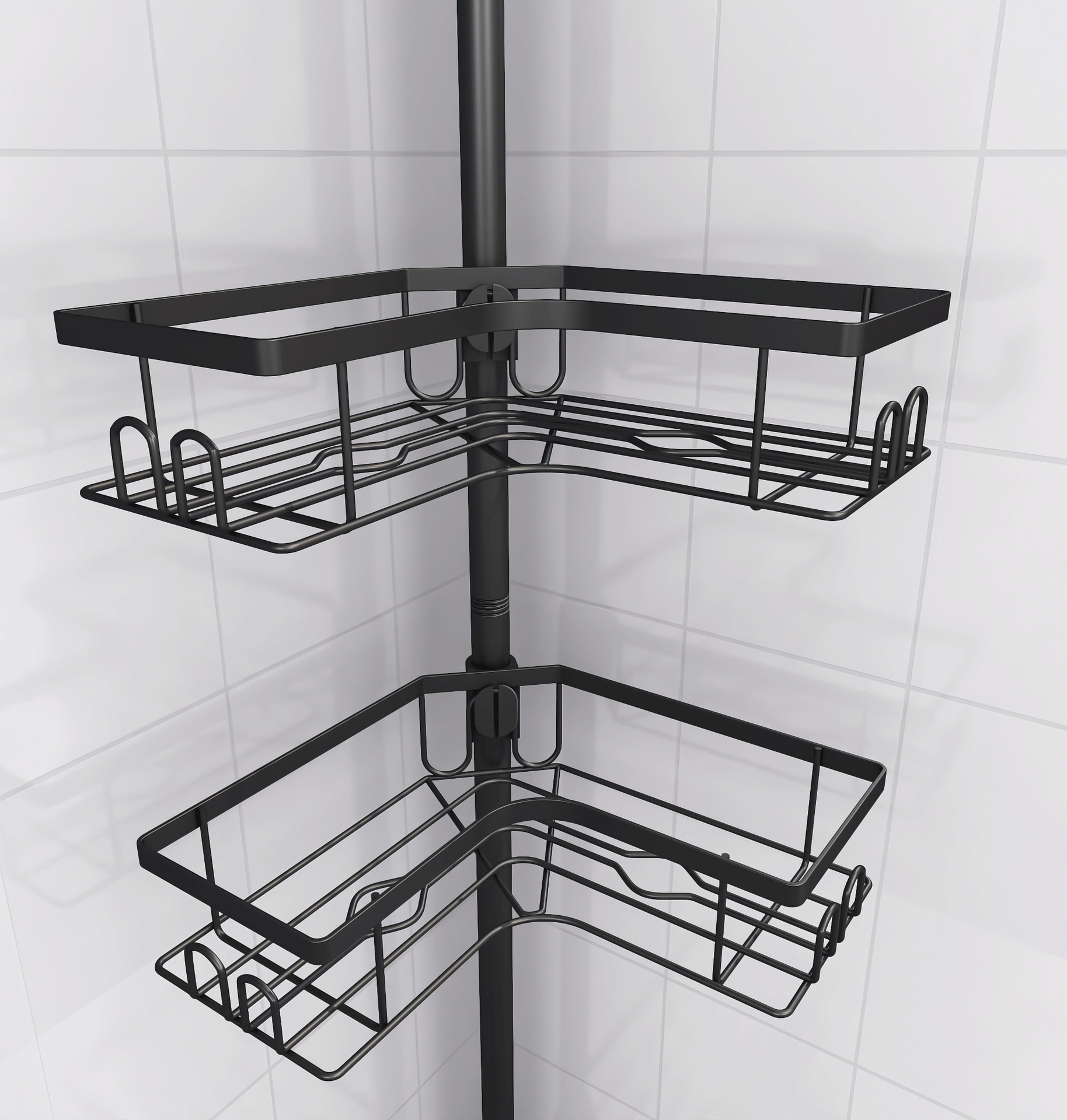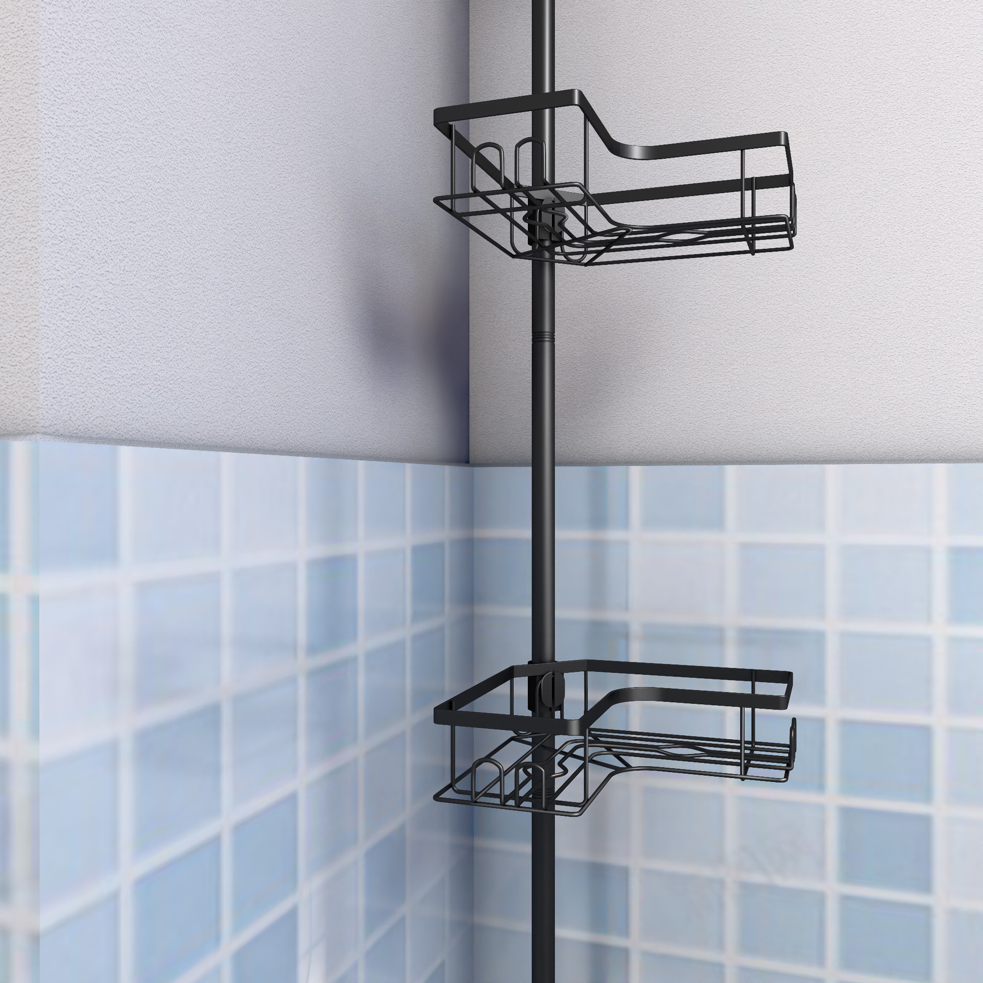 욕실용 크로스보더 펀치프리 욕실 수납선반, 샤워젤을 보관할 수 있는 접이식 삼각대 천장형 수납선반스토어 가기