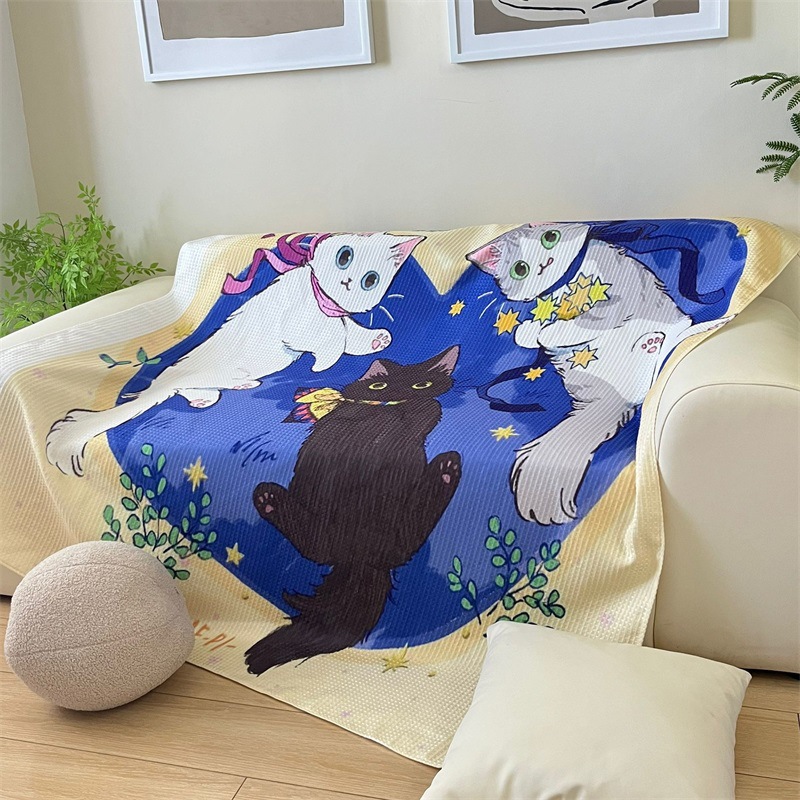 만화 chenille 레저 담요 소파 타월 가을과 겨울 커버 담요 장식 귀여운 고양이 담요 배경 천 태피스트리 침실스토어 가기