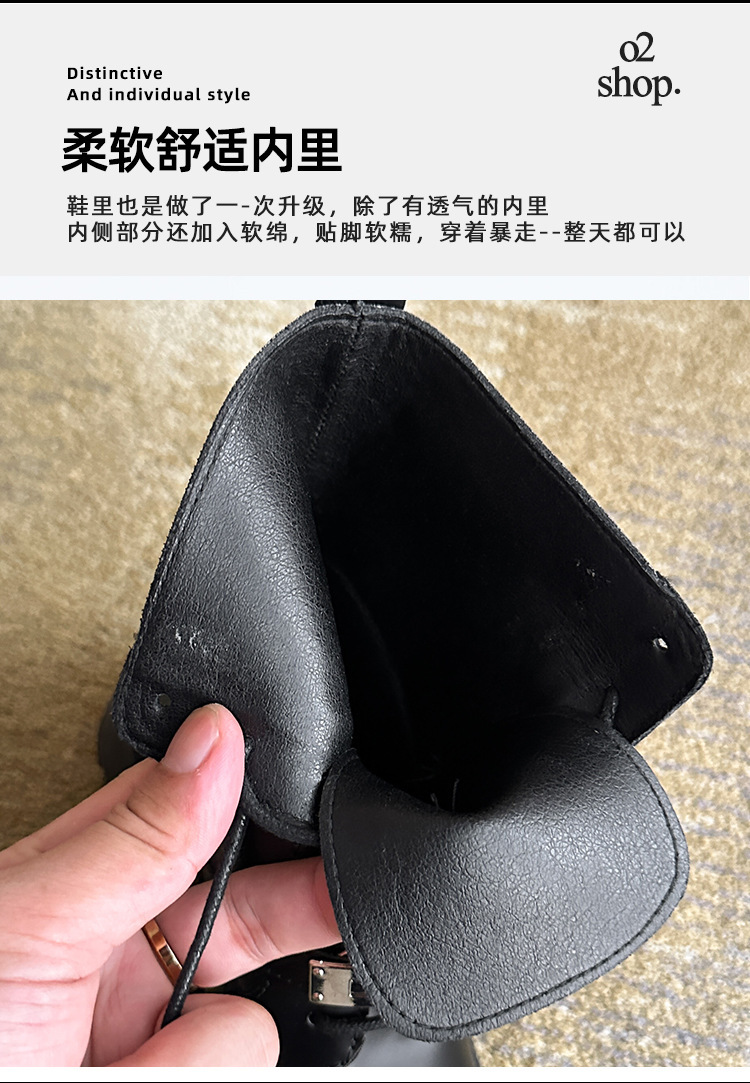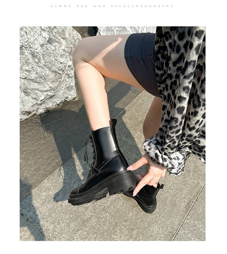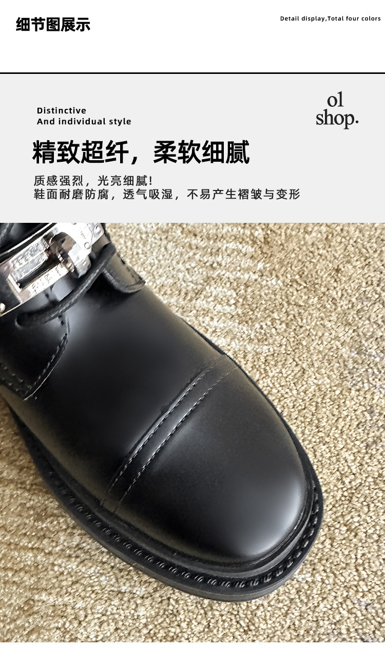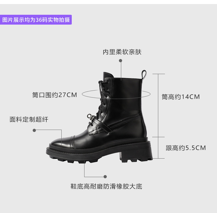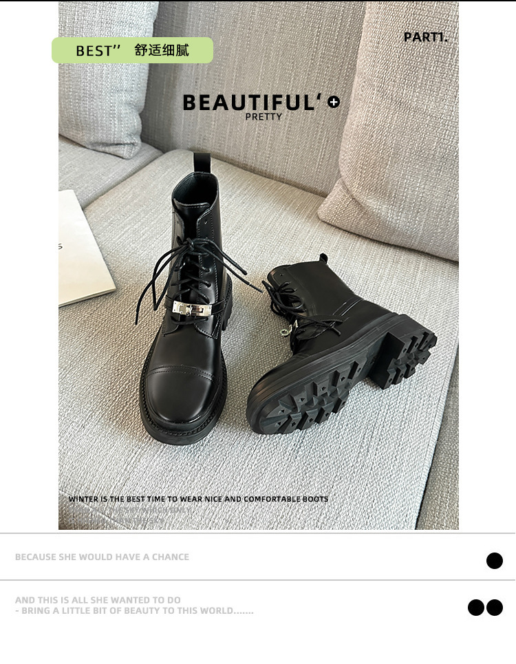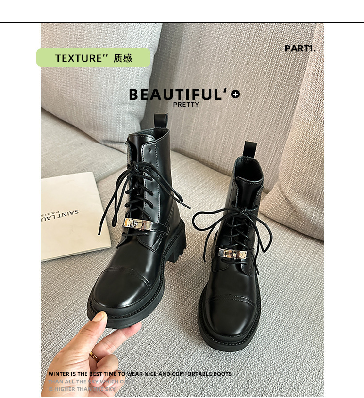 Niche Martins 부츠 여성 2024 새로운 도착 부츠 영국 스타일 레이스 업 라운드 헤드 두꺼운 하단 작은 실버 버클 두꺼운 힐 발목 부츠 여성