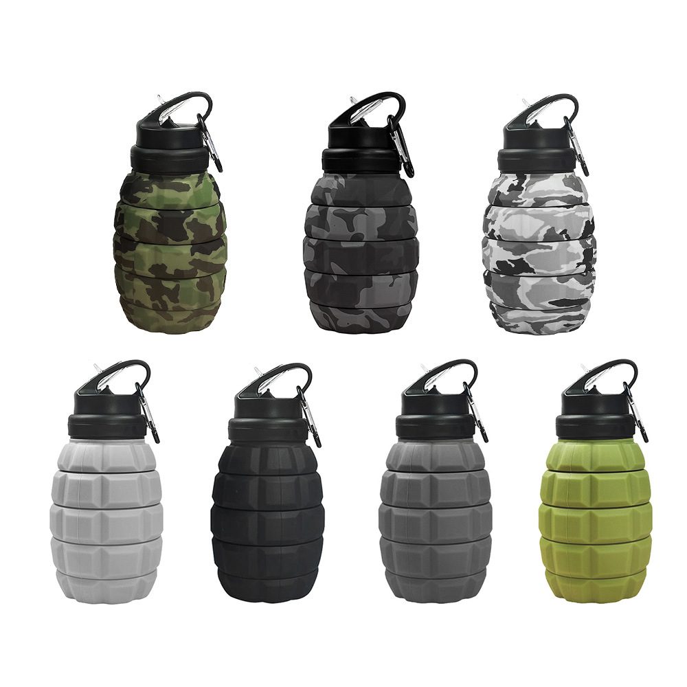 아마존 플라스틱 수류탄 물병 식품 등급 실리콘 승마 스포츠 물병 개폐식 위장 접이식 물병스토어 가기